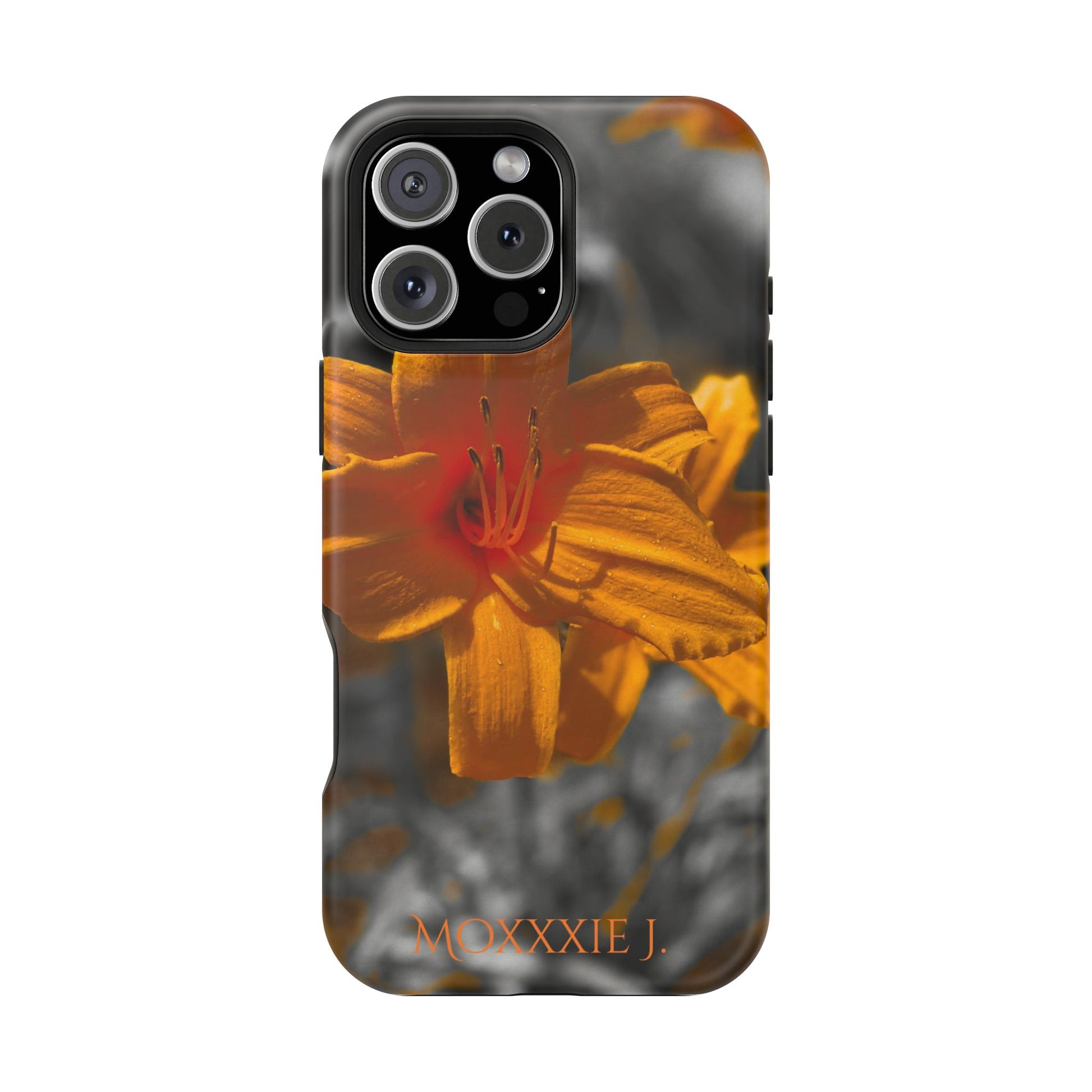 Protect your phone in style with this magnetic tough Phone Case featuring a beautiful orange flower photography design. The vibrant colors and durable polycarbonate material make it perfect for those looking for both protection and style. This Phone Case is ideal for those who want to add a touch of nature to their everyday life. Perfect for gifting during birthdays, Mother's Day, or as a special treat for yourself. Product features - Durable dual-layer polycarbonate and TPU construction - Vibrant 300+ DPI photo-realistic print quality - Available in glossy or matte finish options - MagSafe® Compatible with interior magnets - Impact-resistant and flexible for added protection Care instructions - Clean the case with soft, damp cotton or microfiber cloth. Avoid using chemicals.