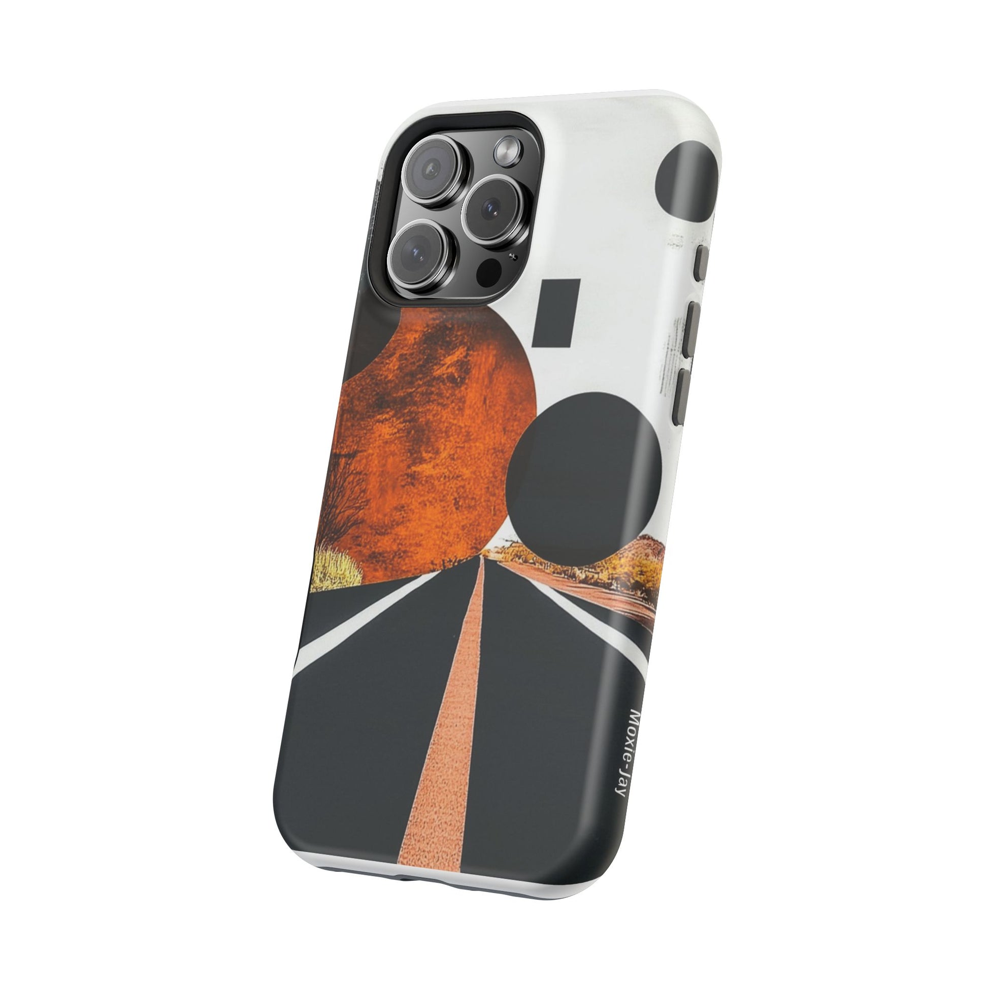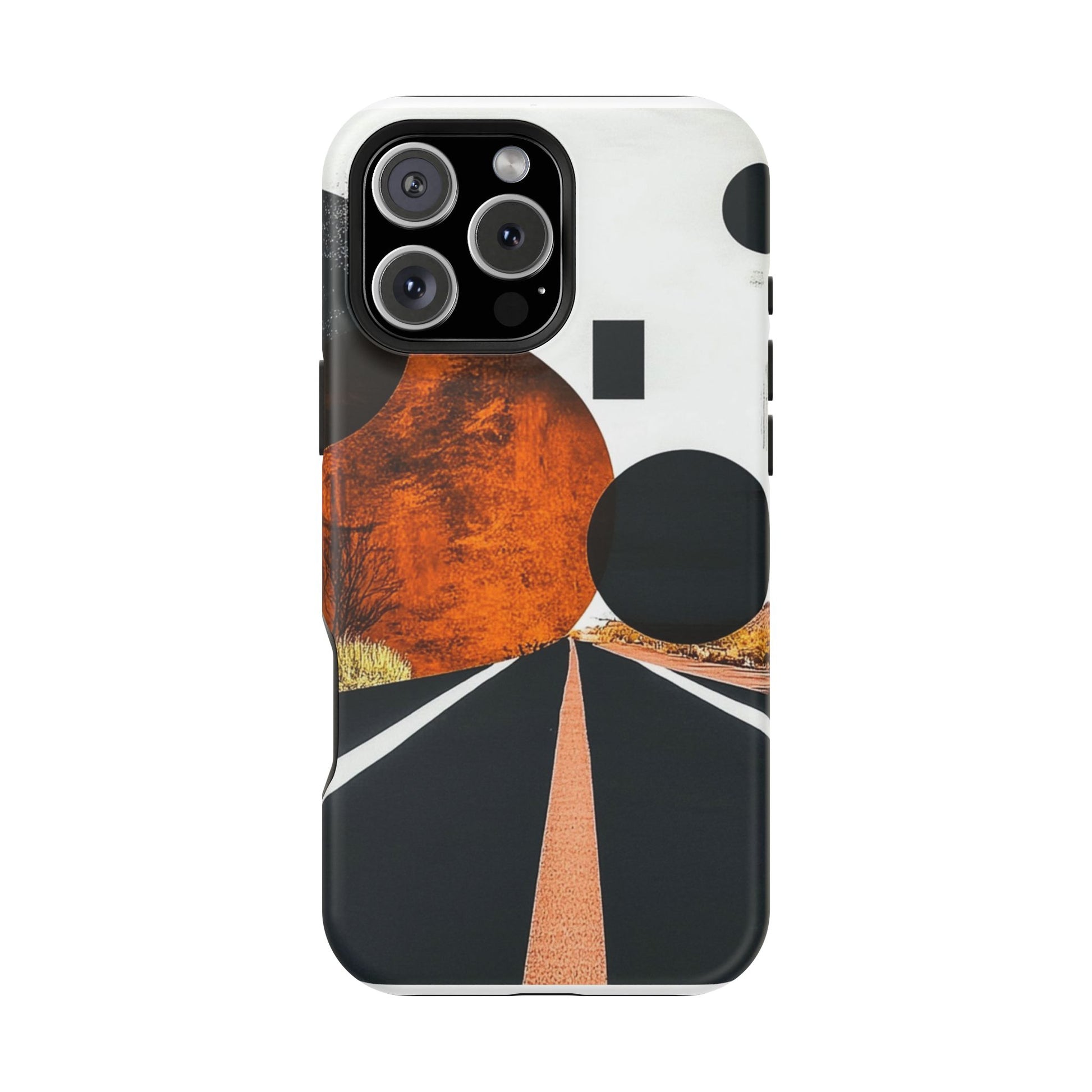 Artistic Phone Case featuring abstract Road Design by moxie jay. This durable dual-layer polycarbonate plastic case is both stylish and protective, with vibrant colors and a glossy or matte finish. Perfect for those who appreciate unique artistic designs and want to add a touch of creativity to their phone. Ideal for those who are looking for a phone case that stands out and is MagSafe® compatible, making it perfect for daily use and charging. Great for gifting on birthdays, holidays, or any special occasion.