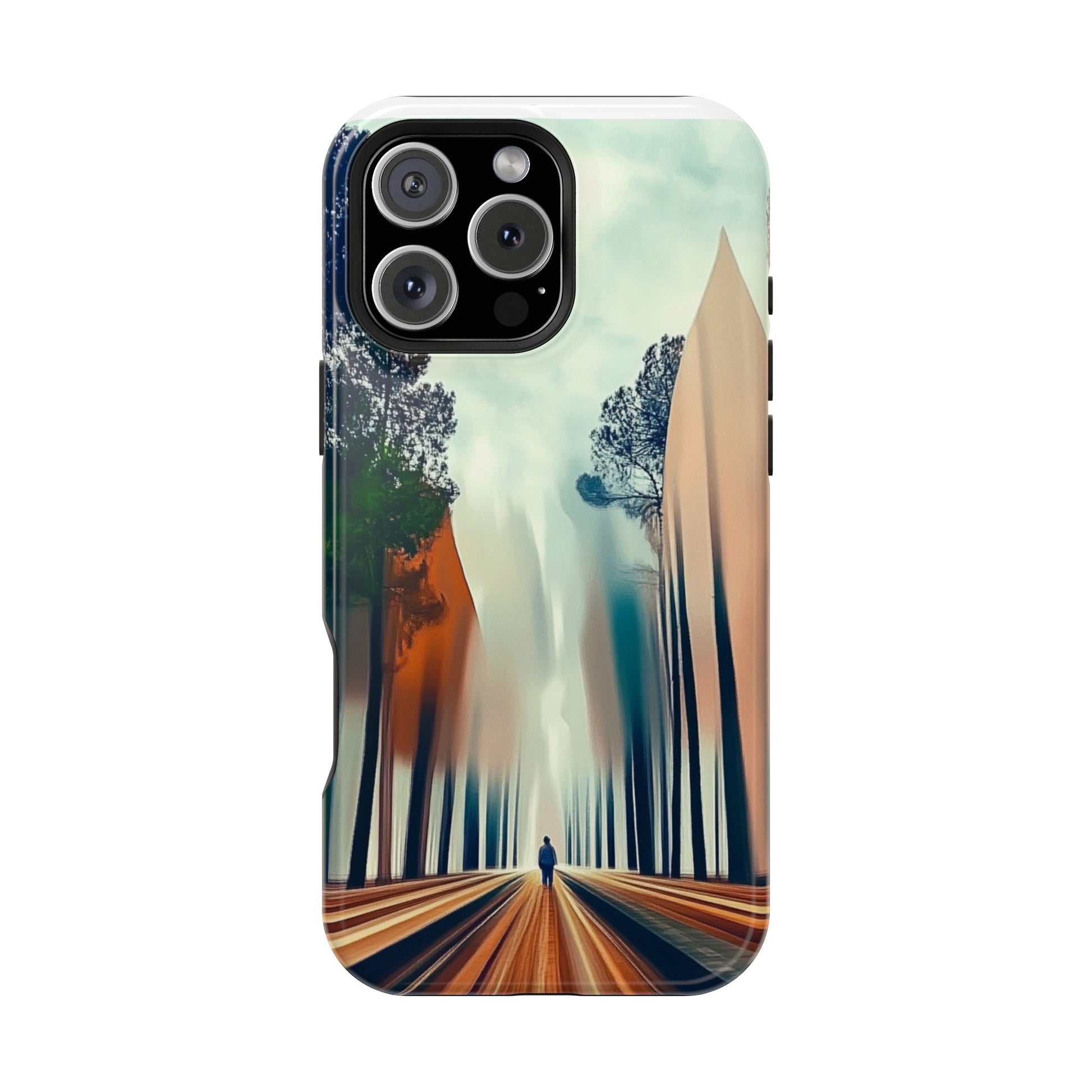 Protect your phone with this magnetic tough phone protector featuring an artsy art piece of a person walking through the redwoods by moxie-jay. The durable polycarbonate plastic and TPU liner keep your phone safe from scratches and bumps, while the vibrant colors and glossy or matte finish add style and personality to your device. MagSafe® compatibility allows for easy use with MagSafe® accessories, making this phone case both functional and stylish. Perfect for nature lovers and those who appreciate unique art, this phone case is ideal for everyday use or as a thoughtful gift for special occasions.