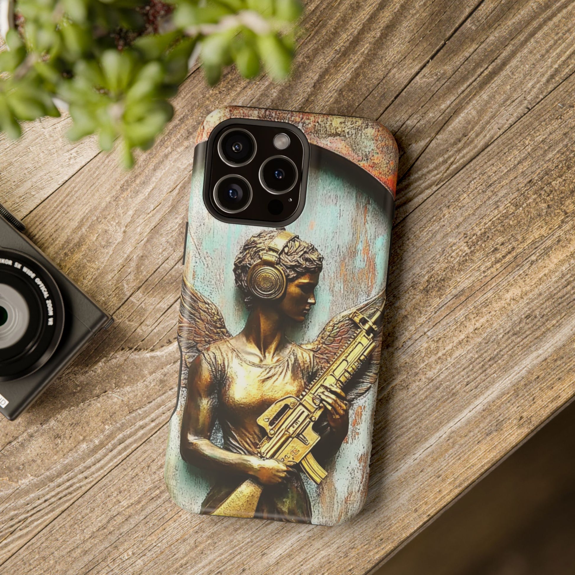 Magnetic Tough iPhone Charger Case - Angel with Dre Beats and AK-47 Art