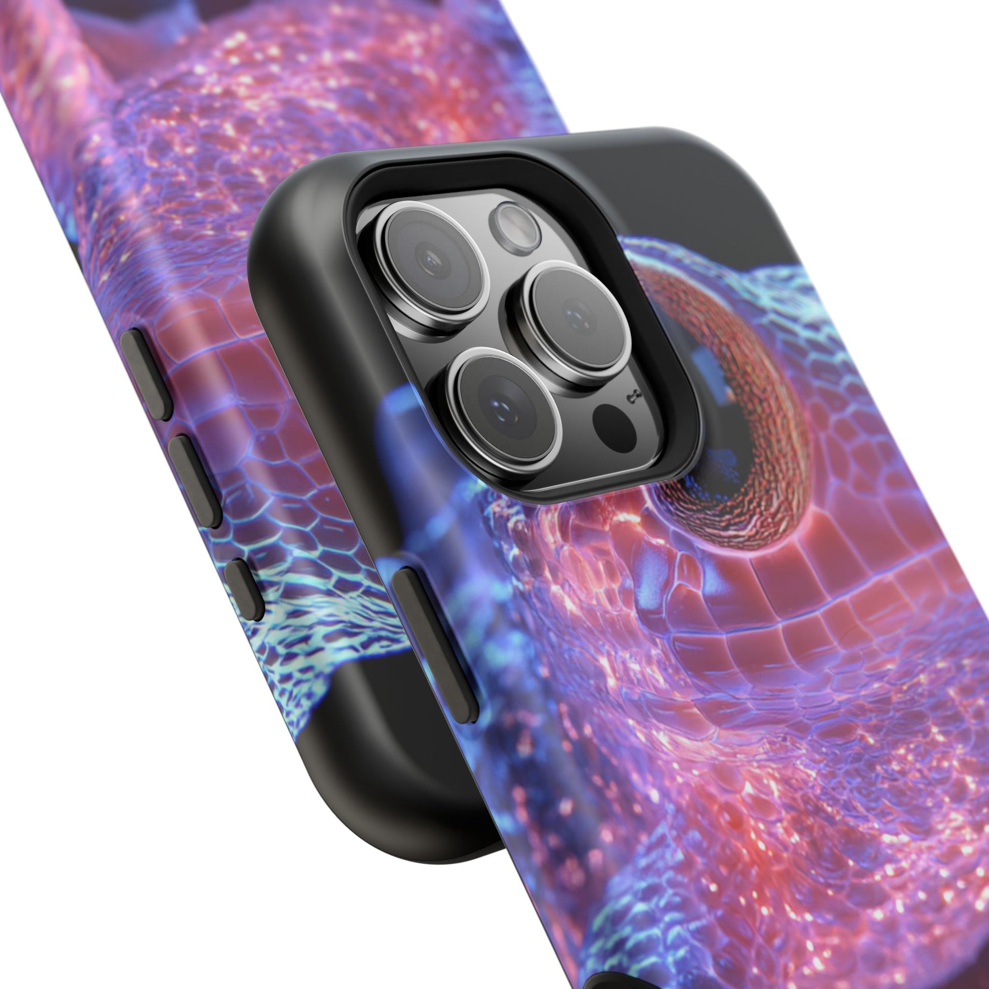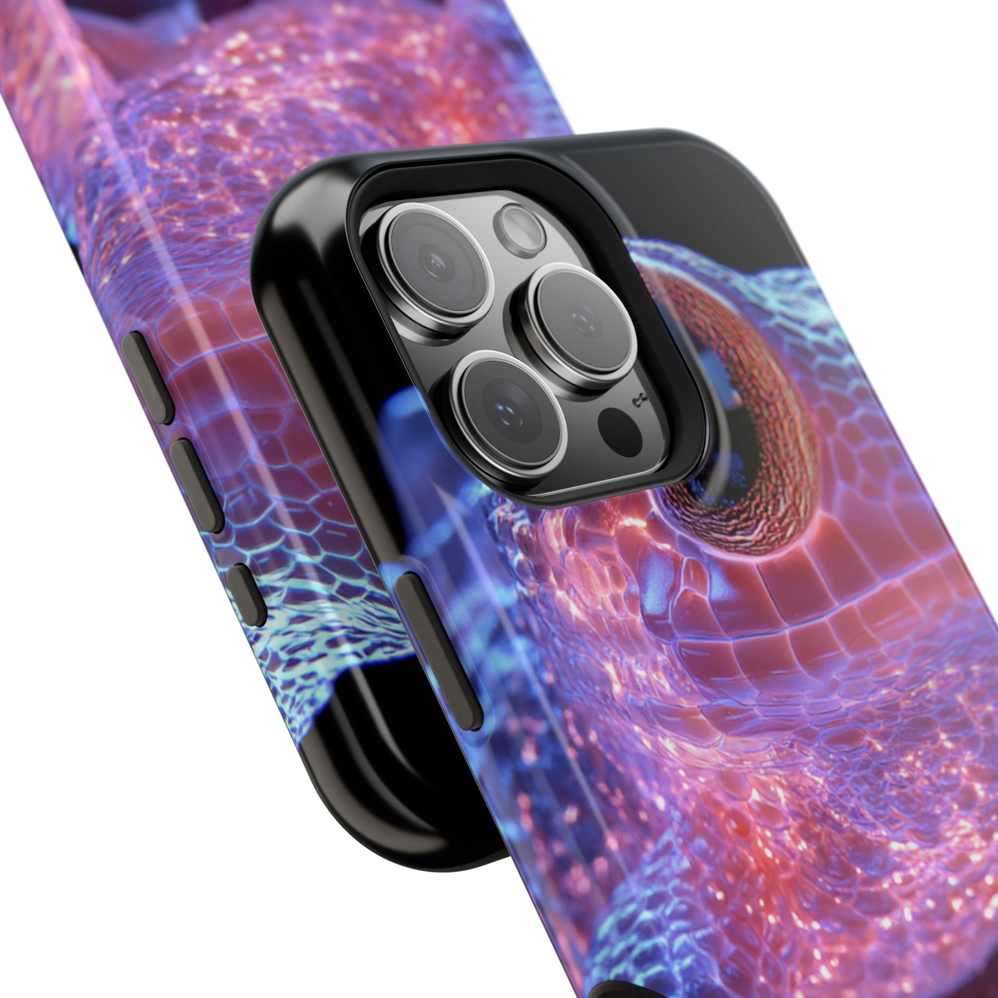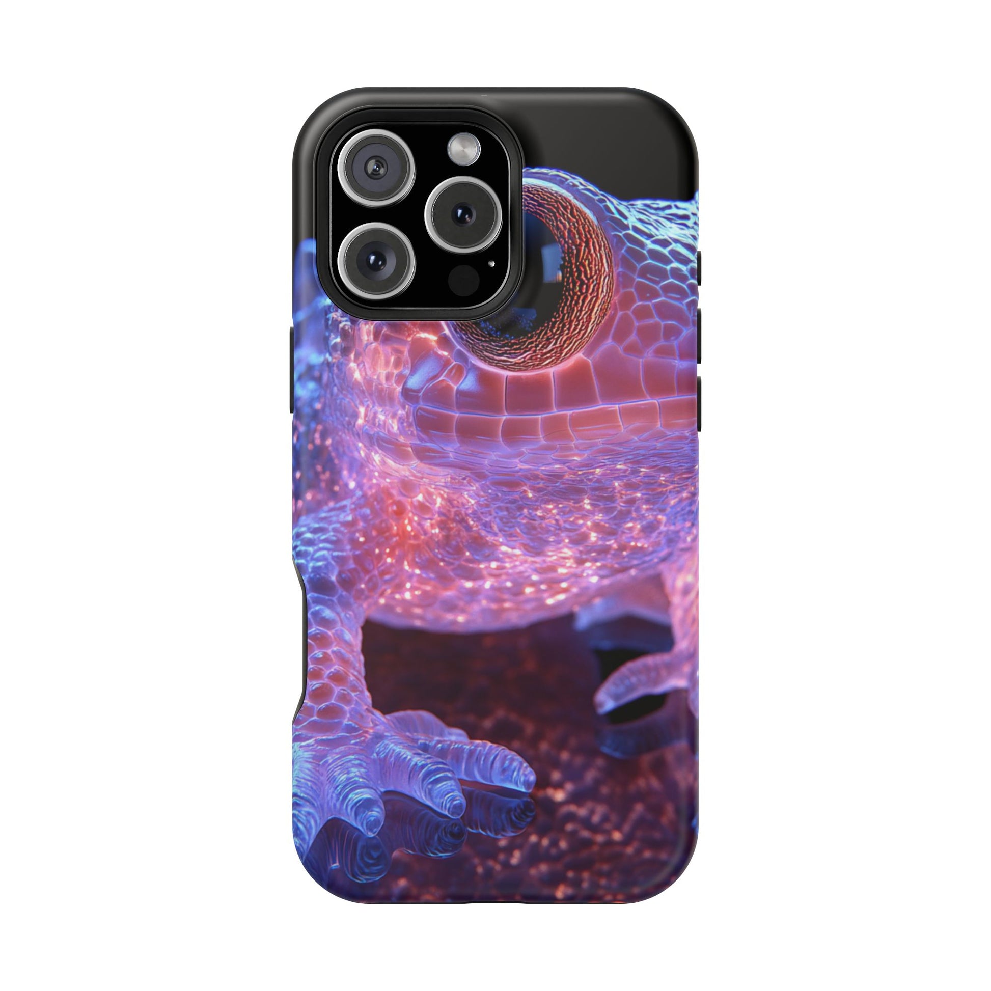 A luxury phone case with original art of an intergalactic frog by moxie-jay. This magnetic phone case is not only stylish but also provides wireless charging capabilities. Perfect for tech-savvy individuals who appreciate unique and eye-catching designs. Great for those who love the idea of a space-themed accessory. Ideal for gifting on birthdays, holidays, or any special occasion.
