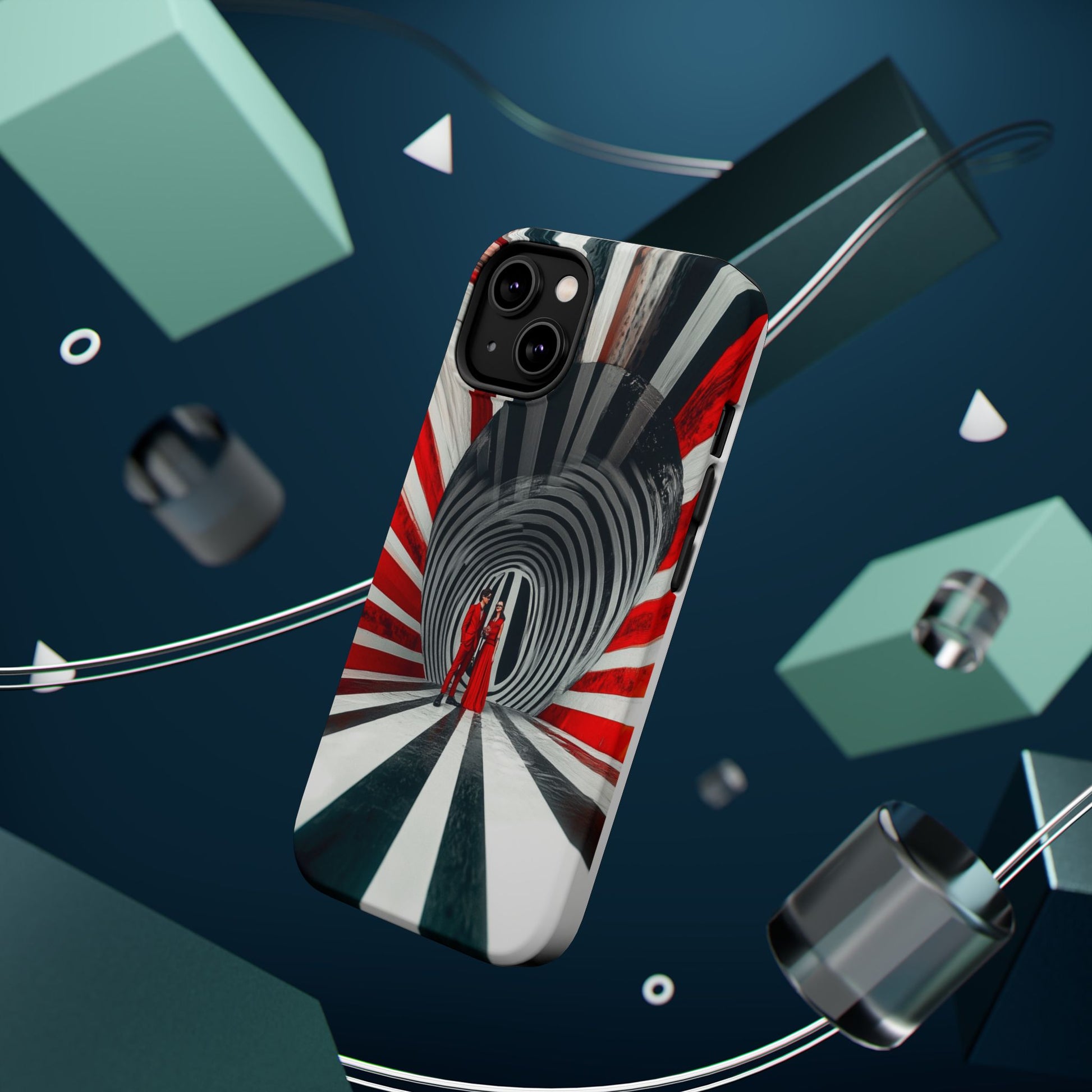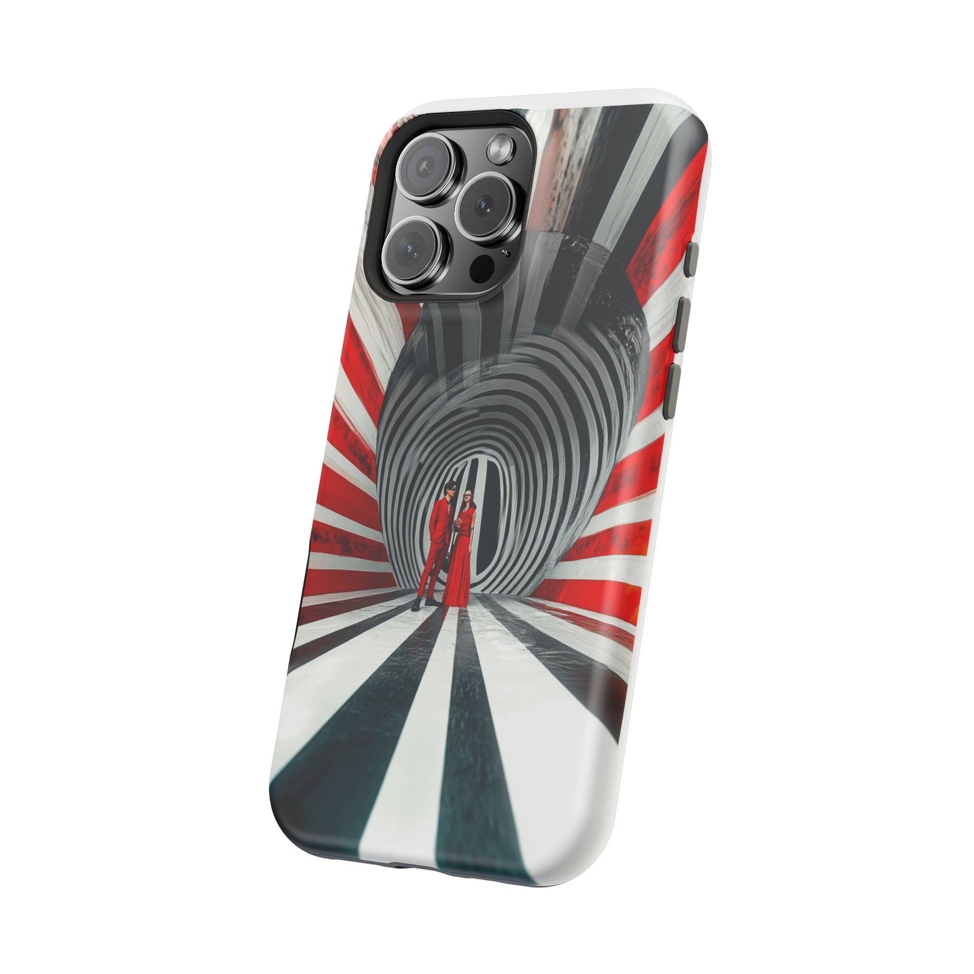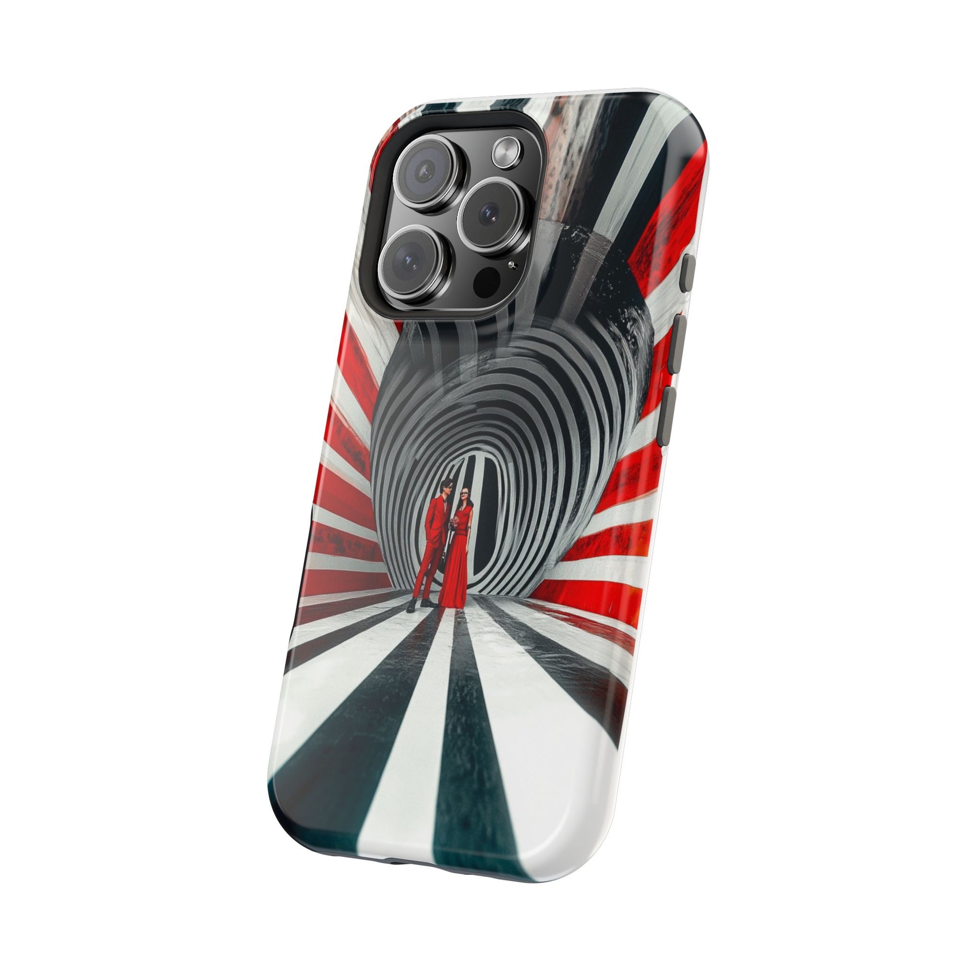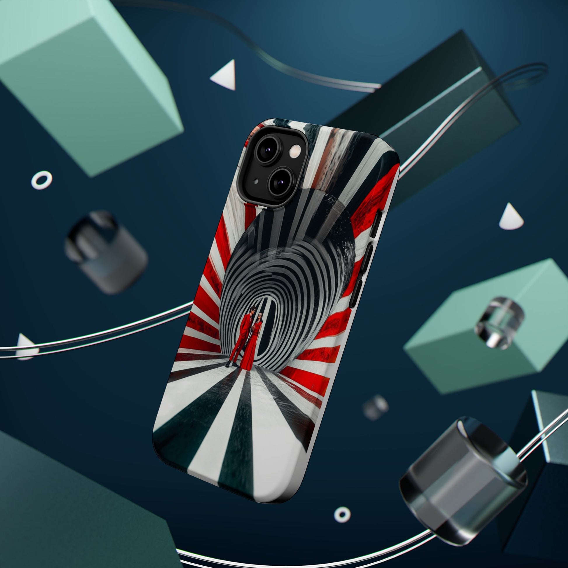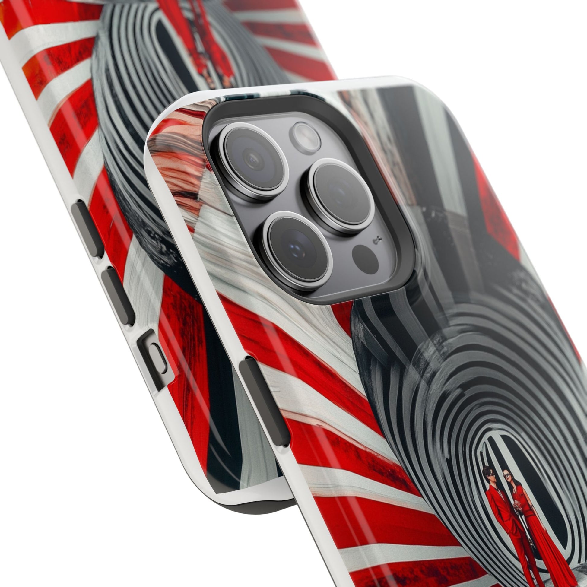 Tags: #MoxieJayArt #CosmicVortex #LuxuryiPhoneCase #WirelessCharging #MagSafeCompatible #ArtisticCase #WormholeDesign #BlackWhiteRed #DurableProtection #FashionTech #UniquePhoneCase #GiftIdea #StyleMeetsFunctionality #PremiumAccessory #LimitedEdition