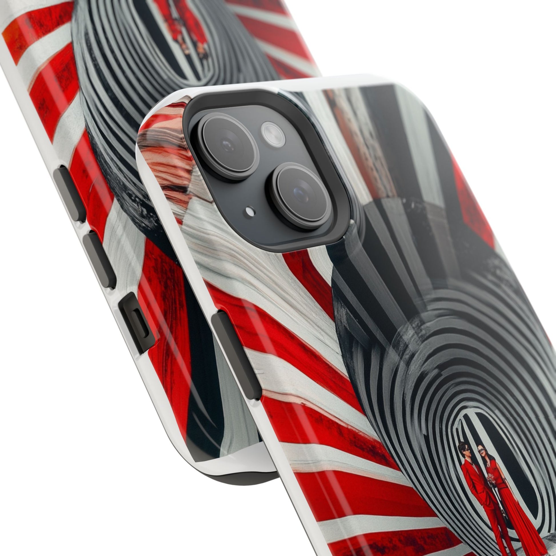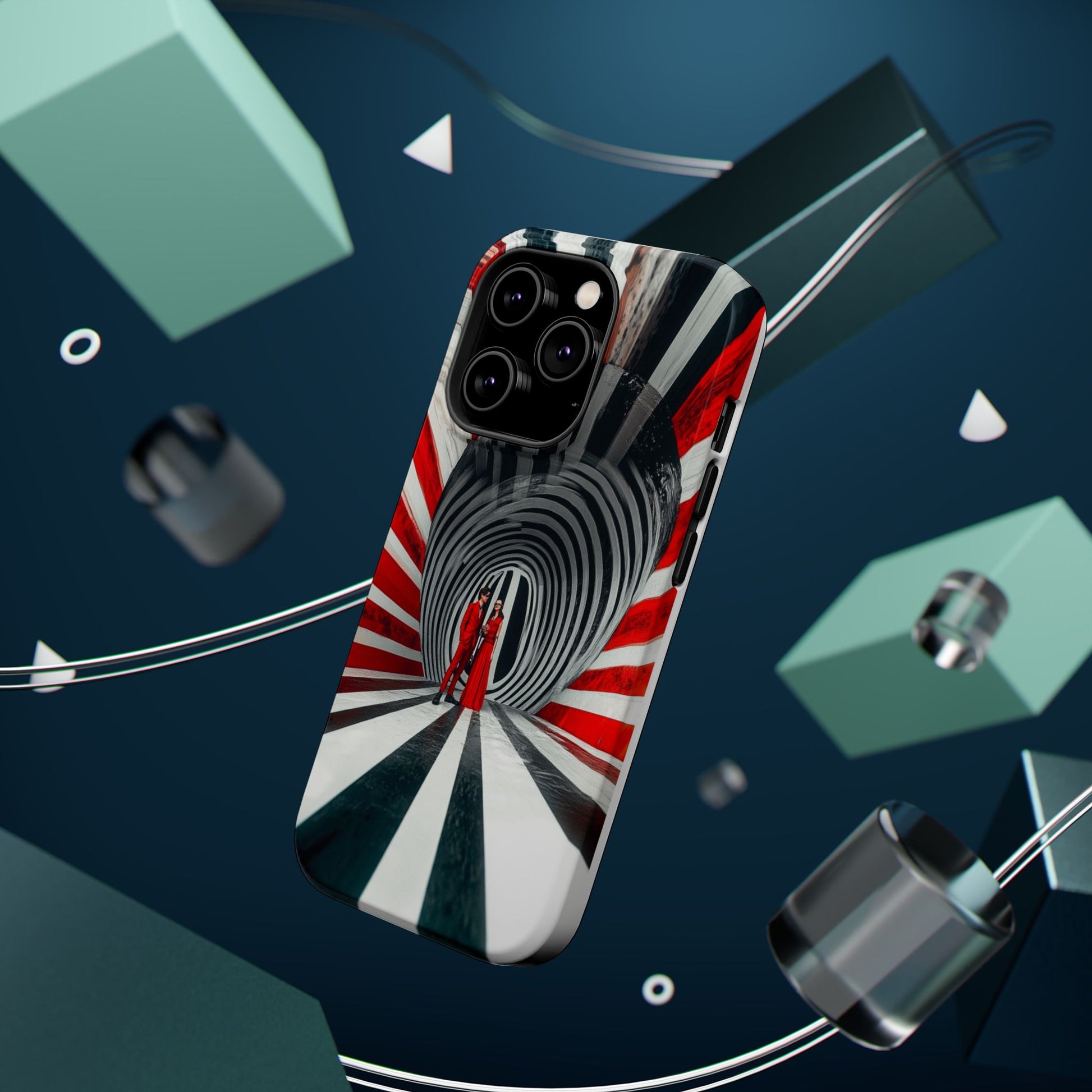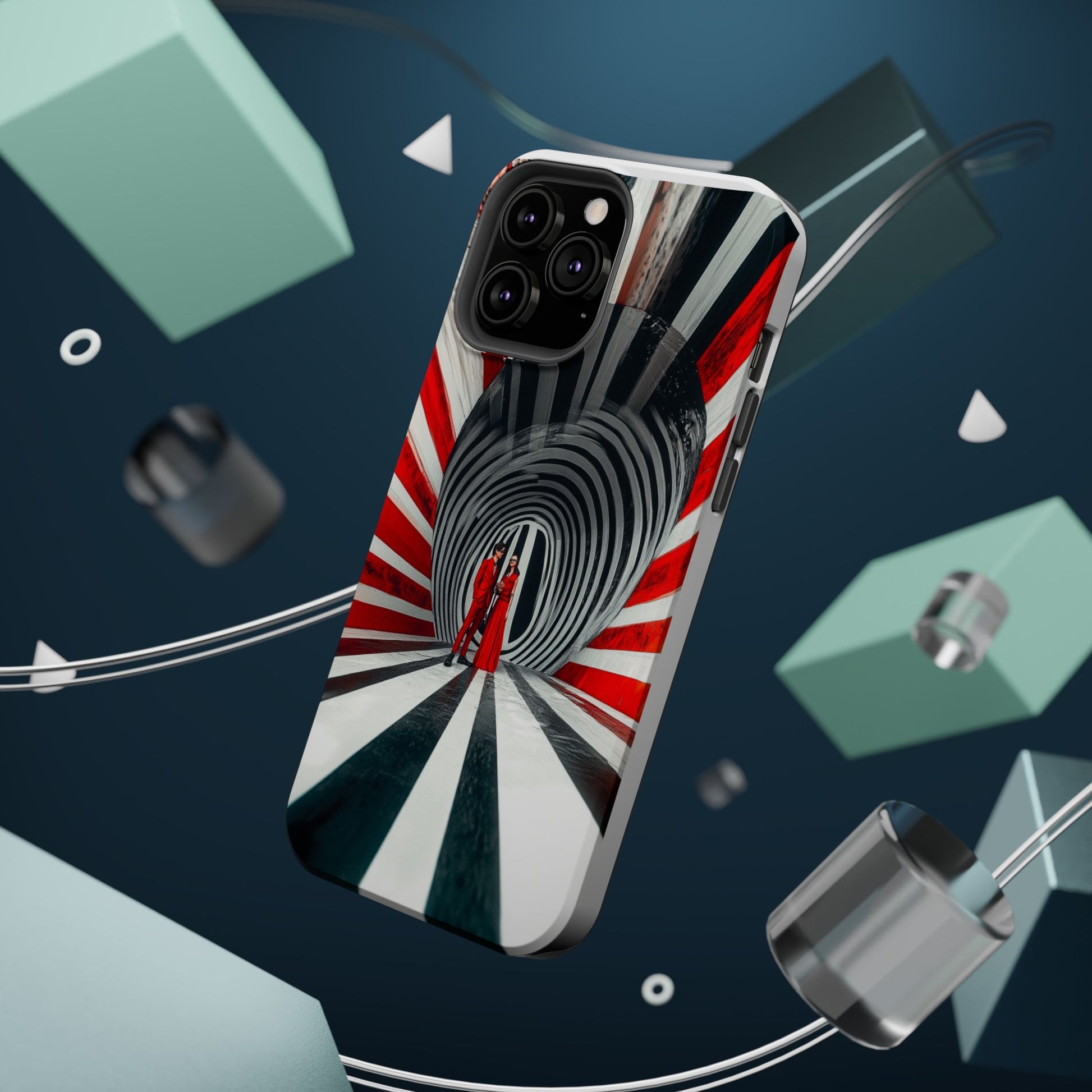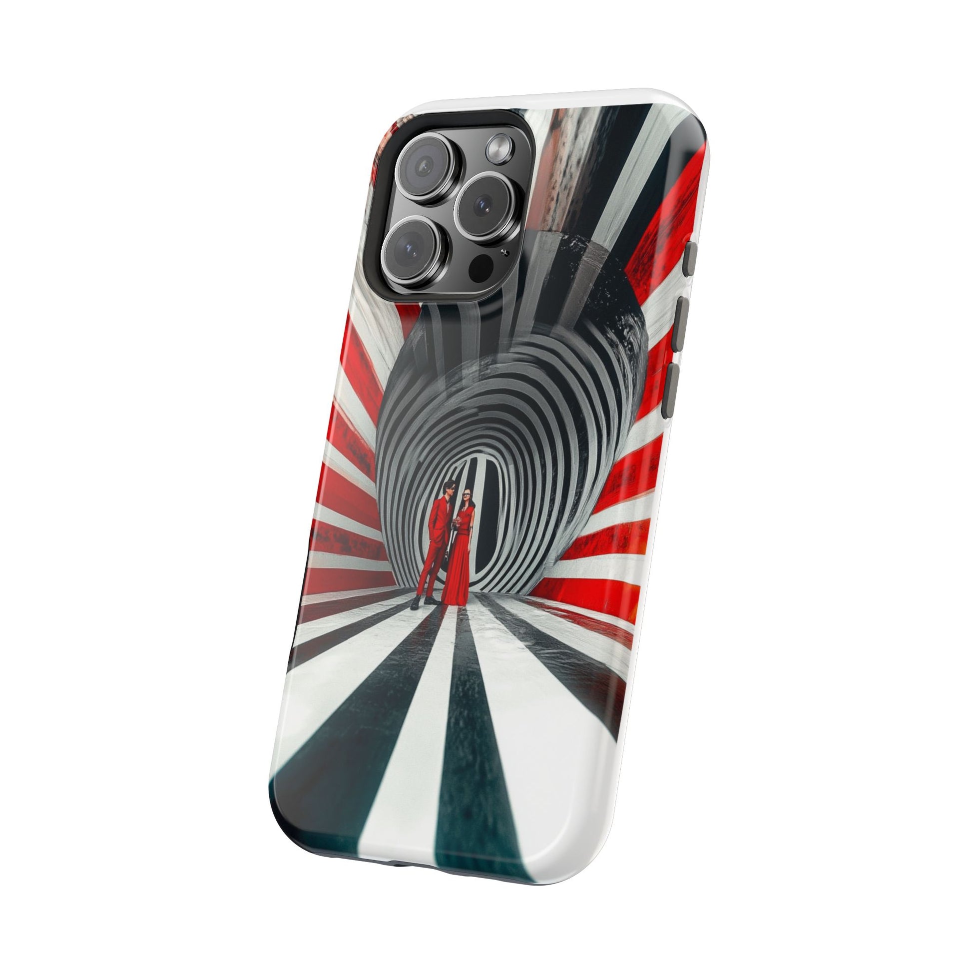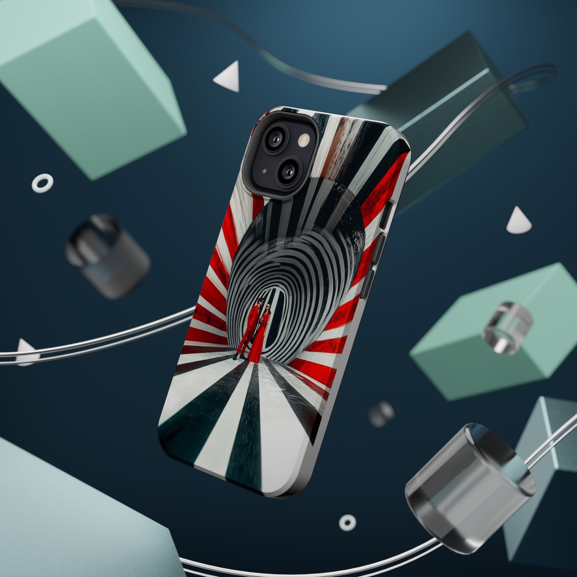 Tags: #MoxieJayArt #CosmicVortex #LuxuryiPhoneCase #WirelessCharging #MagSafeCompatible #ArtisticCase #WormholeDesign #BlackWhiteRed #DurableProtection #FashionTech #UniquePhoneCase #GiftIdea #StyleMeetsFunctionality #PremiumAccessory #LimitedEdition