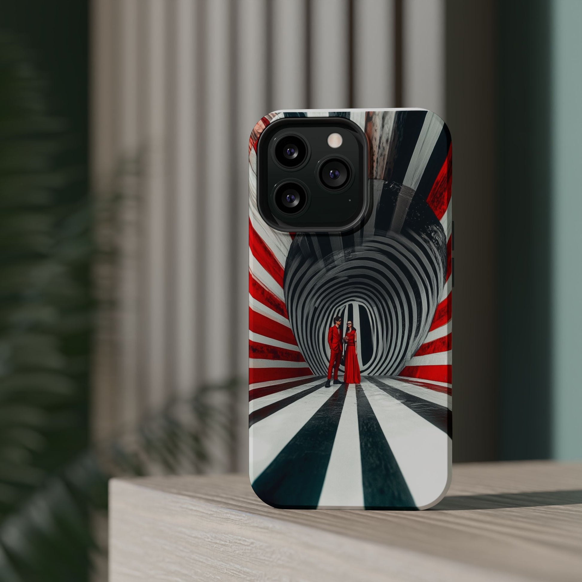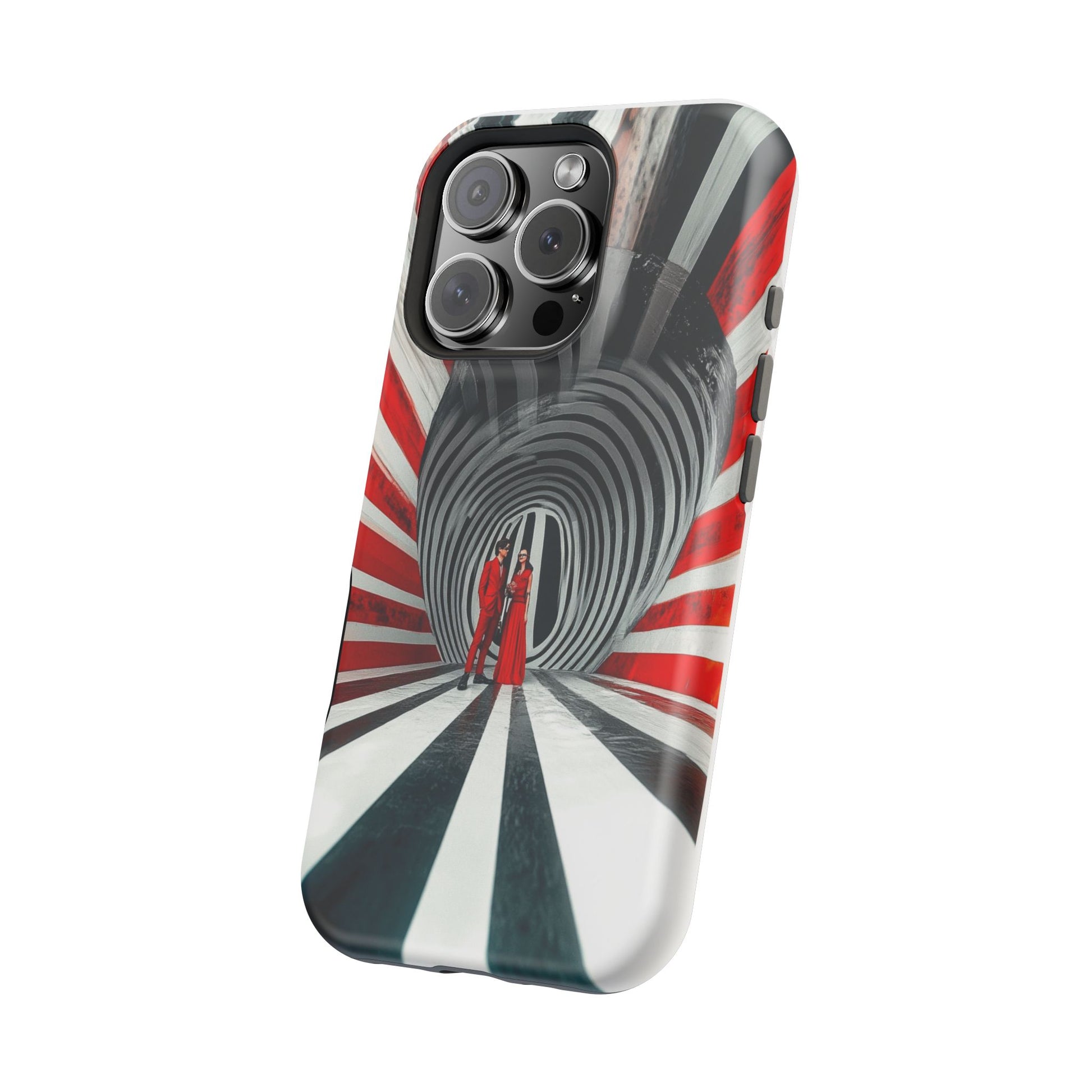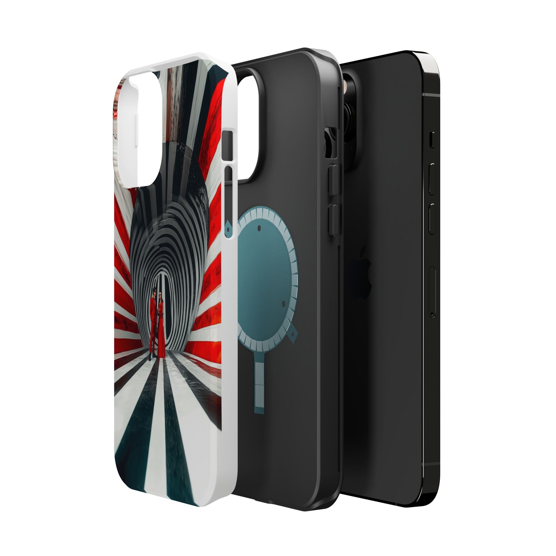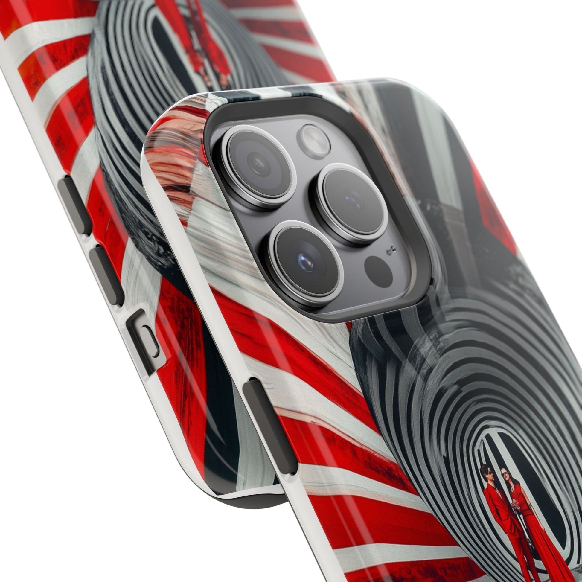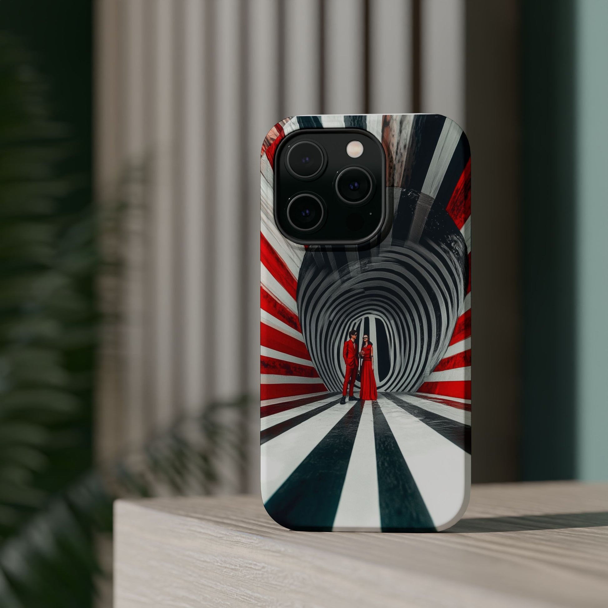 Tags: #MoxieJayArt #CosmicVortex #LuxuryiPhoneCase #WirelessCharging #MagSafeCompatible #ArtisticCase #WormholeDesign #BlackWhiteRed #DurableProtection #FashionTech #UniquePhoneCase #GiftIdea #StyleMeetsFunctionality #PremiumAccessory #LimitedEdition