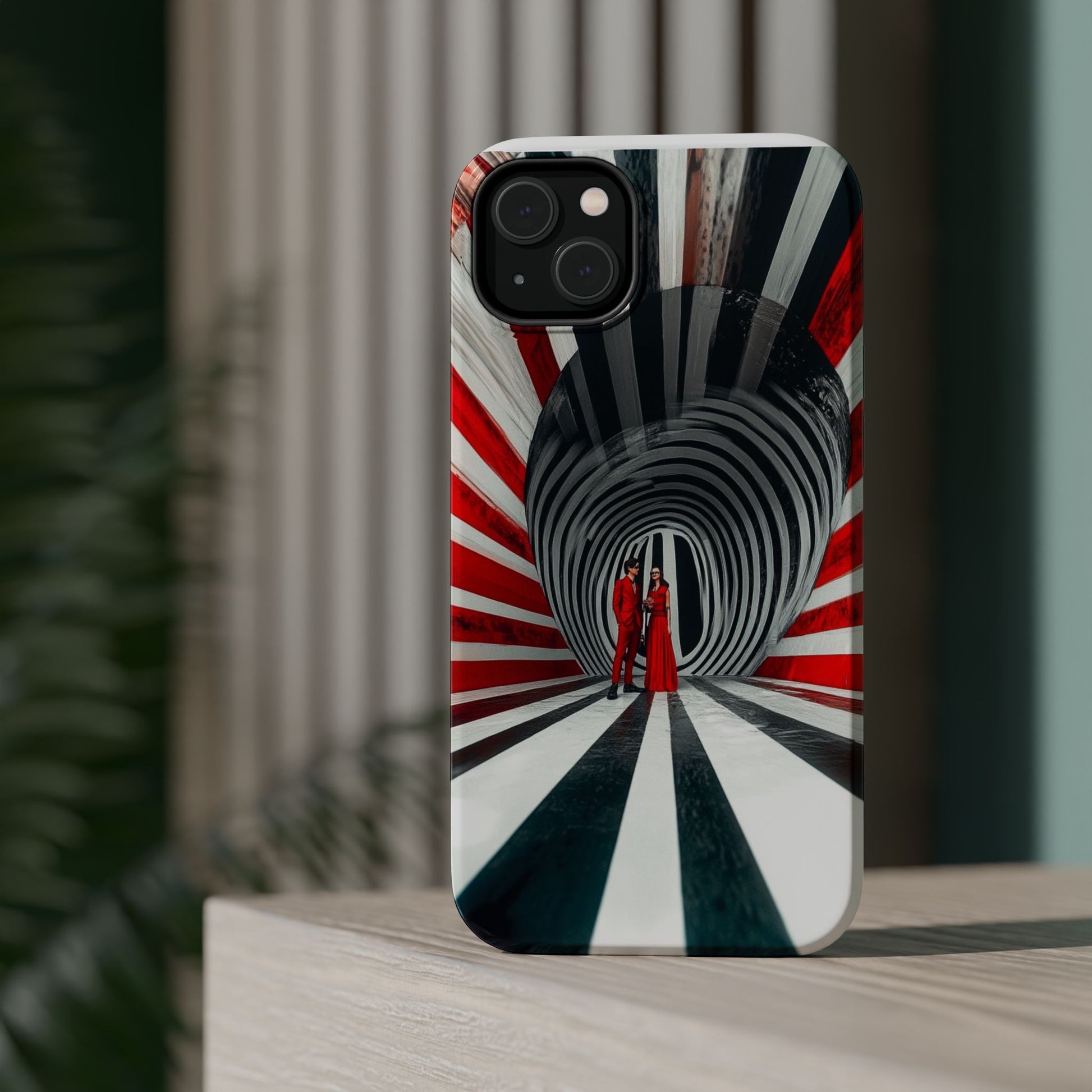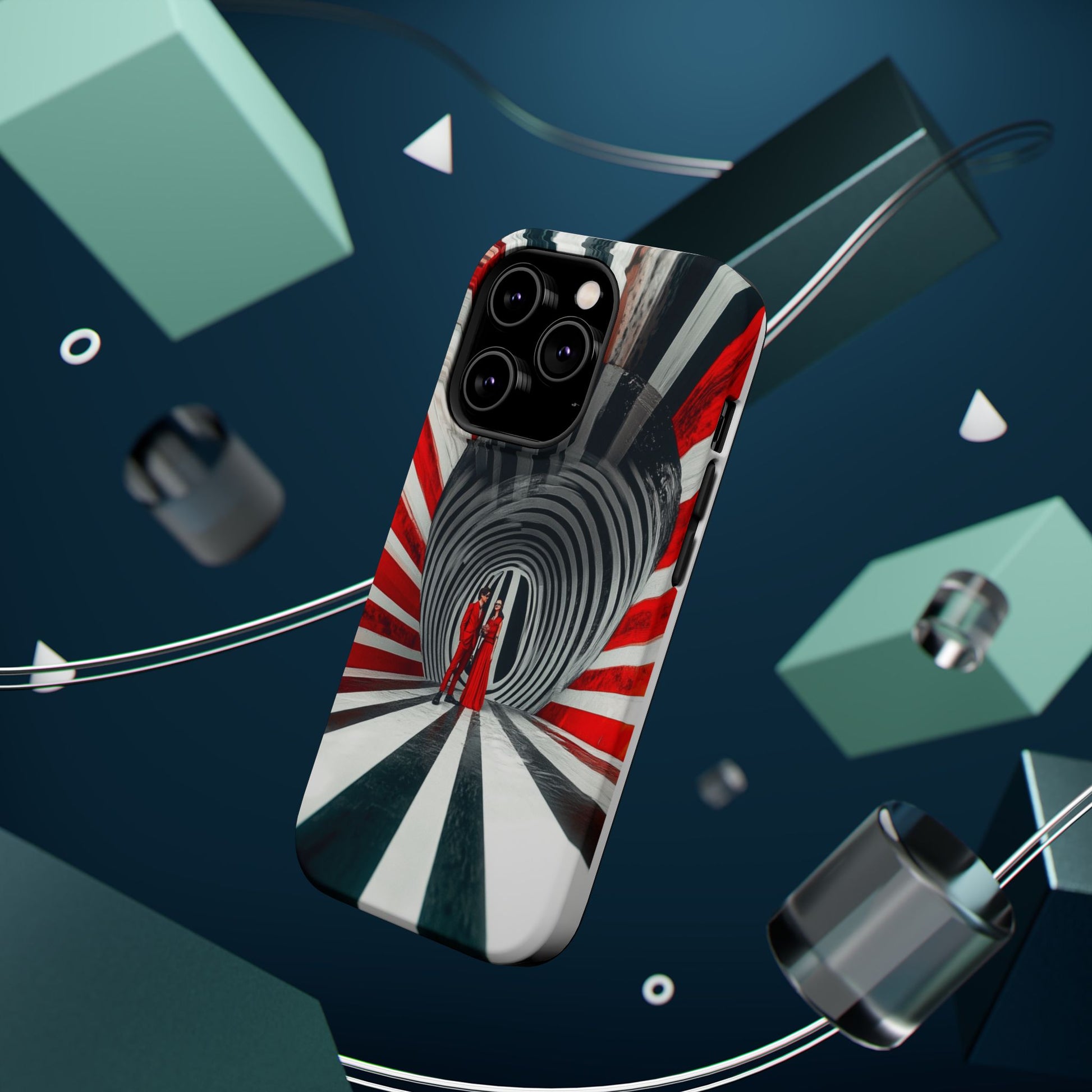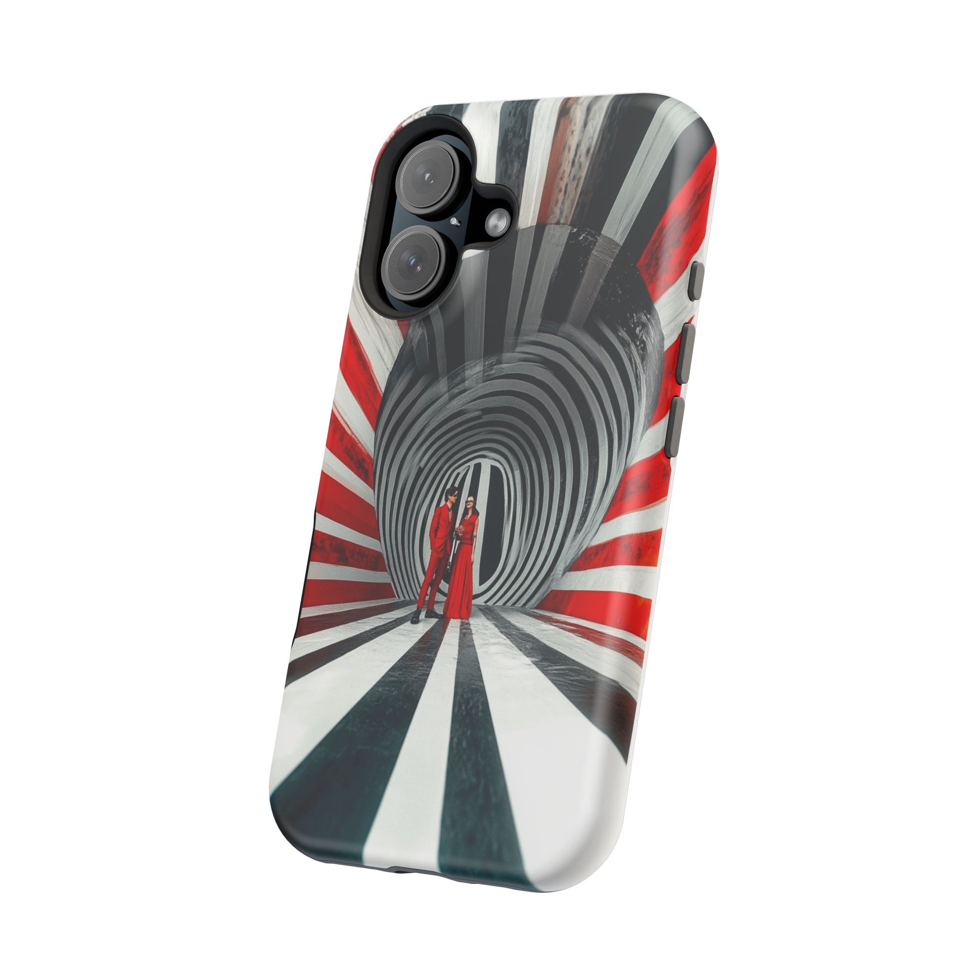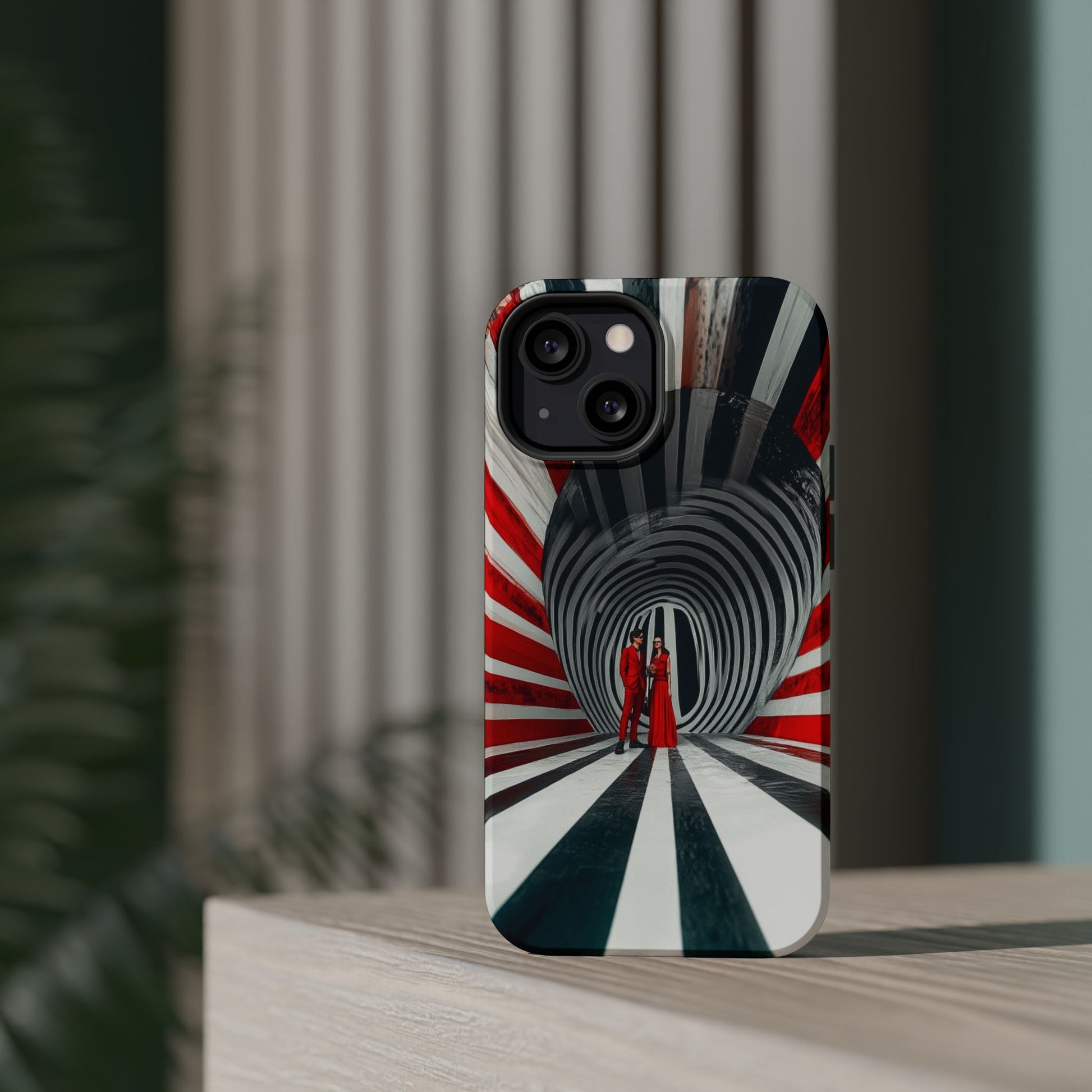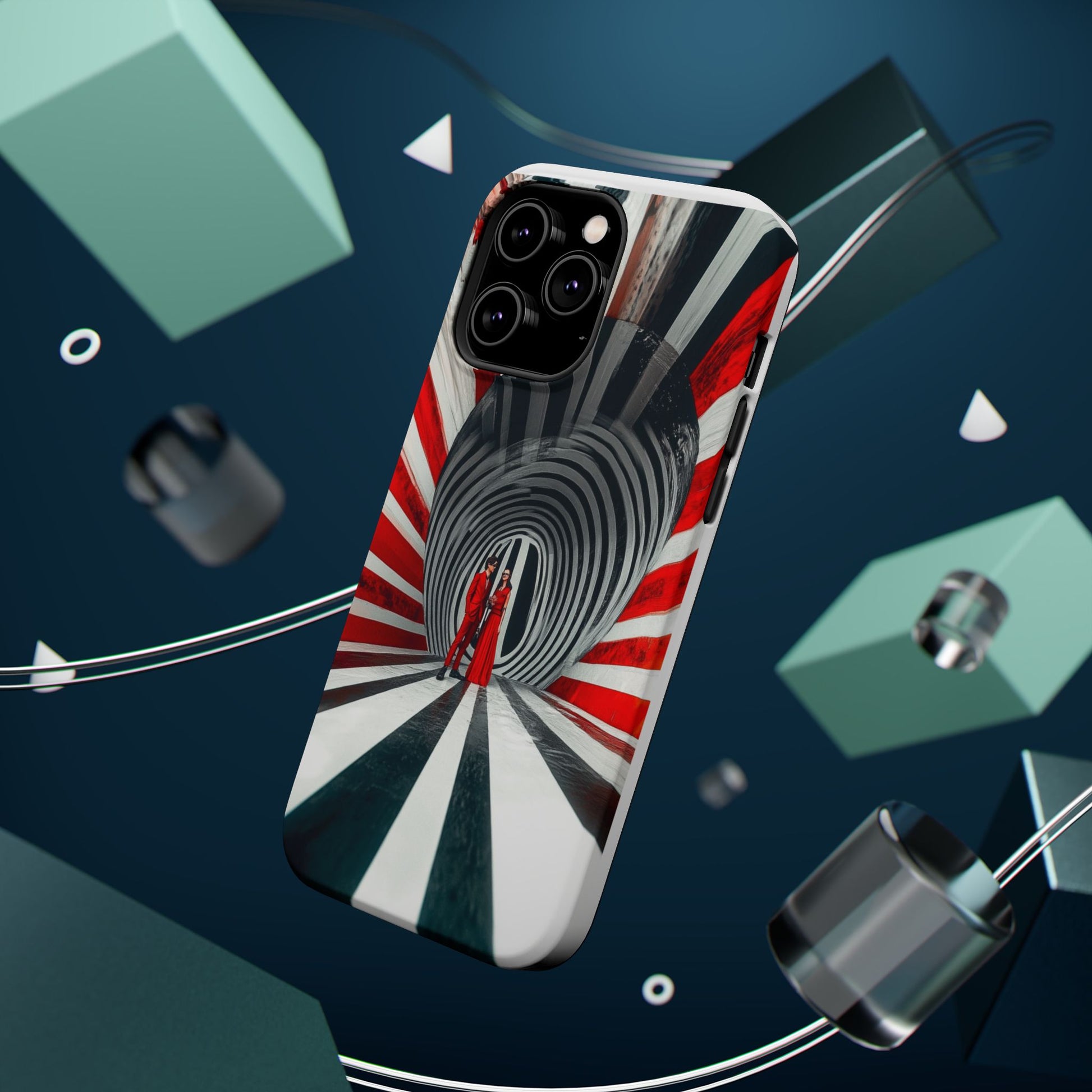 Tags: #MoxieJayArt #CosmicVortex #LuxuryiPhoneCase #WirelessCharging #MagSafeCompatible #ArtisticCase #WormholeDesign #BlackWhiteRed #DurableProtection #FashionTech #UniquePhoneCase #GiftIdea #StyleMeetsFunctionality #PremiumAccessory #LimitedEdition