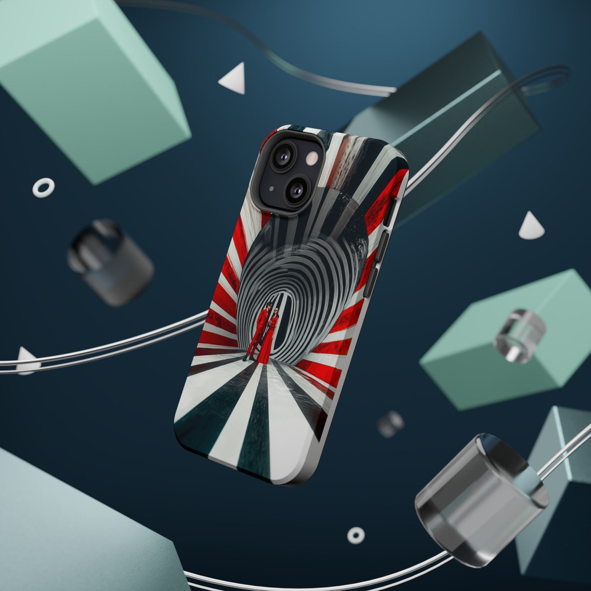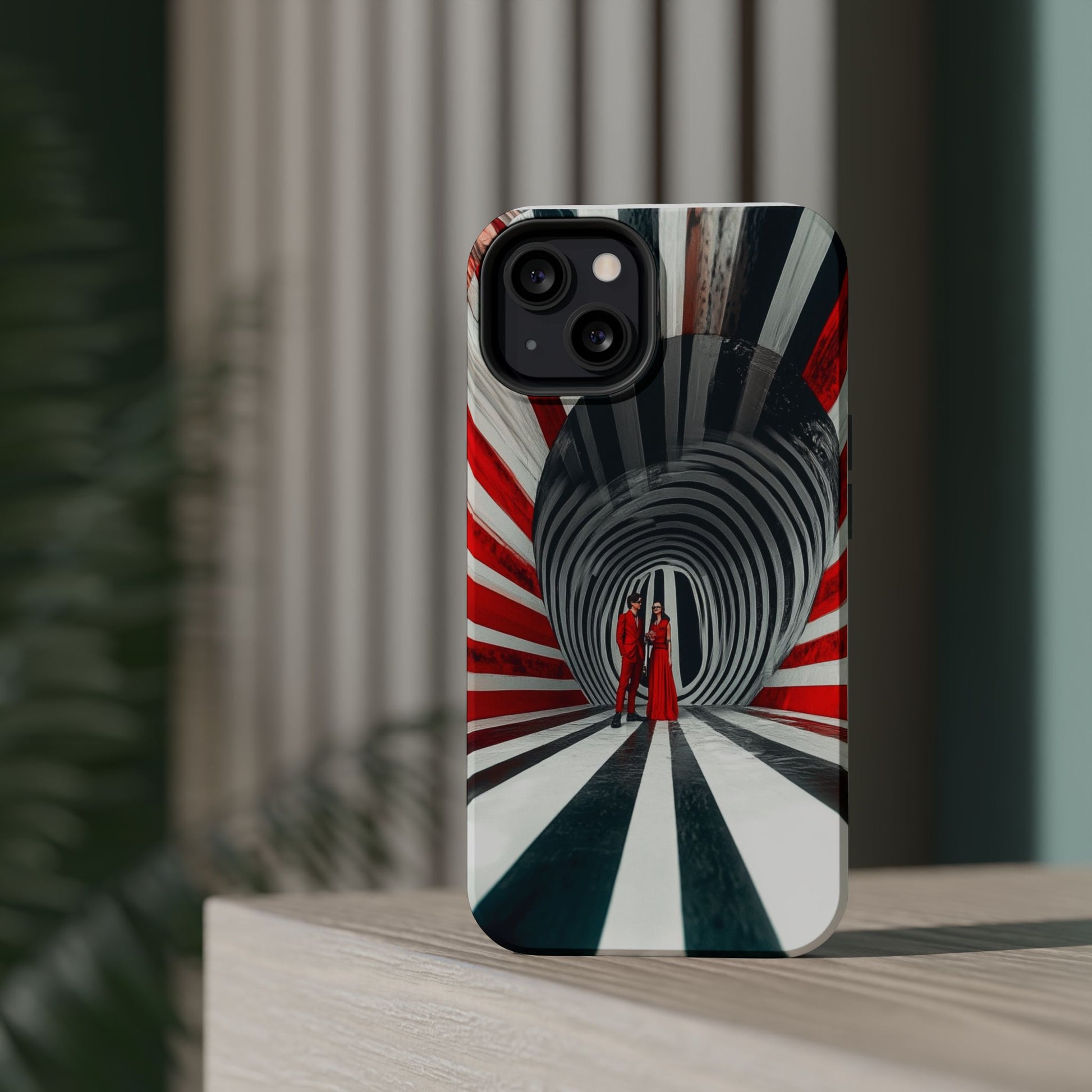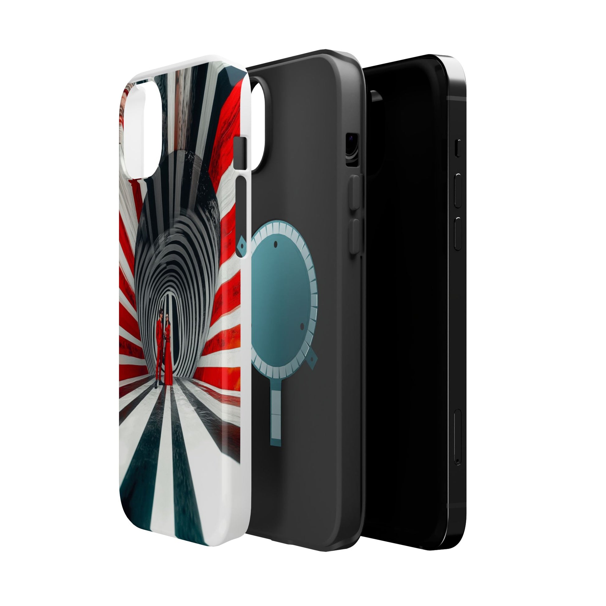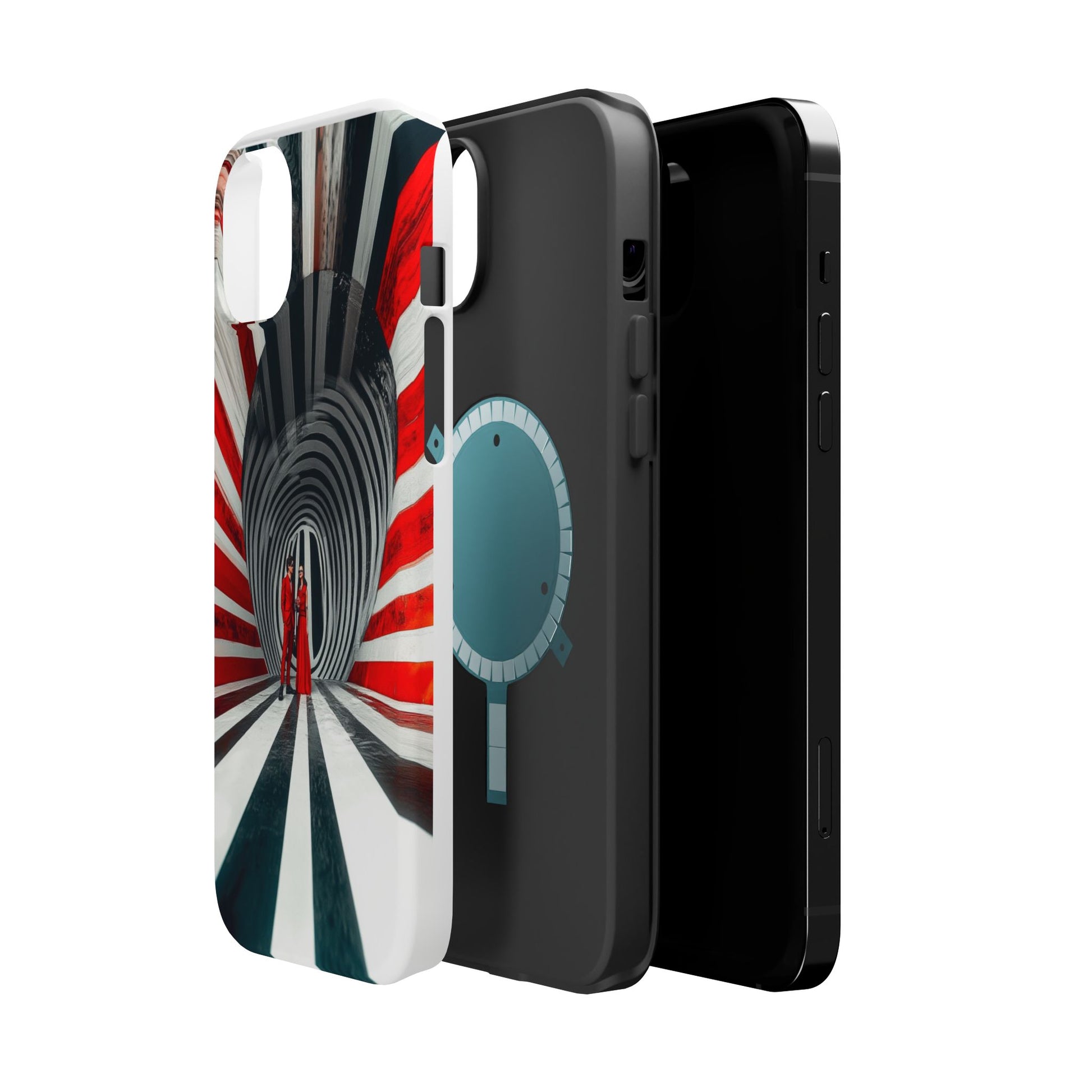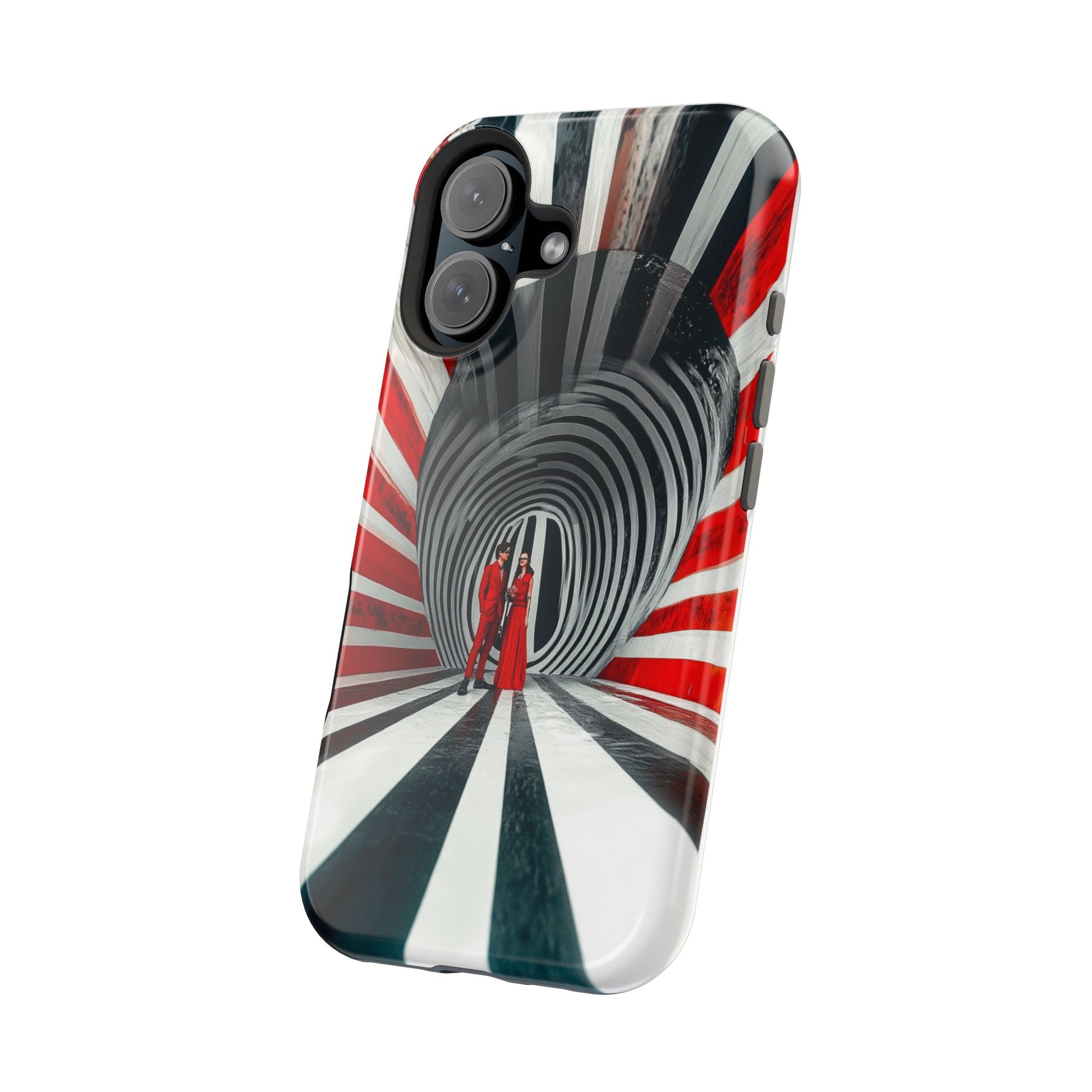 Tags: #MoxieJayArt #CosmicVortex #LuxuryiPhoneCase #WirelessCharging #MagSafeCompatible #ArtisticCase #WormholeDesign #BlackWhiteRed #DurableProtection #FashionTech #UniquePhoneCase #GiftIdea #StyleMeetsFunctionality #PremiumAccessory #LimitedEdition