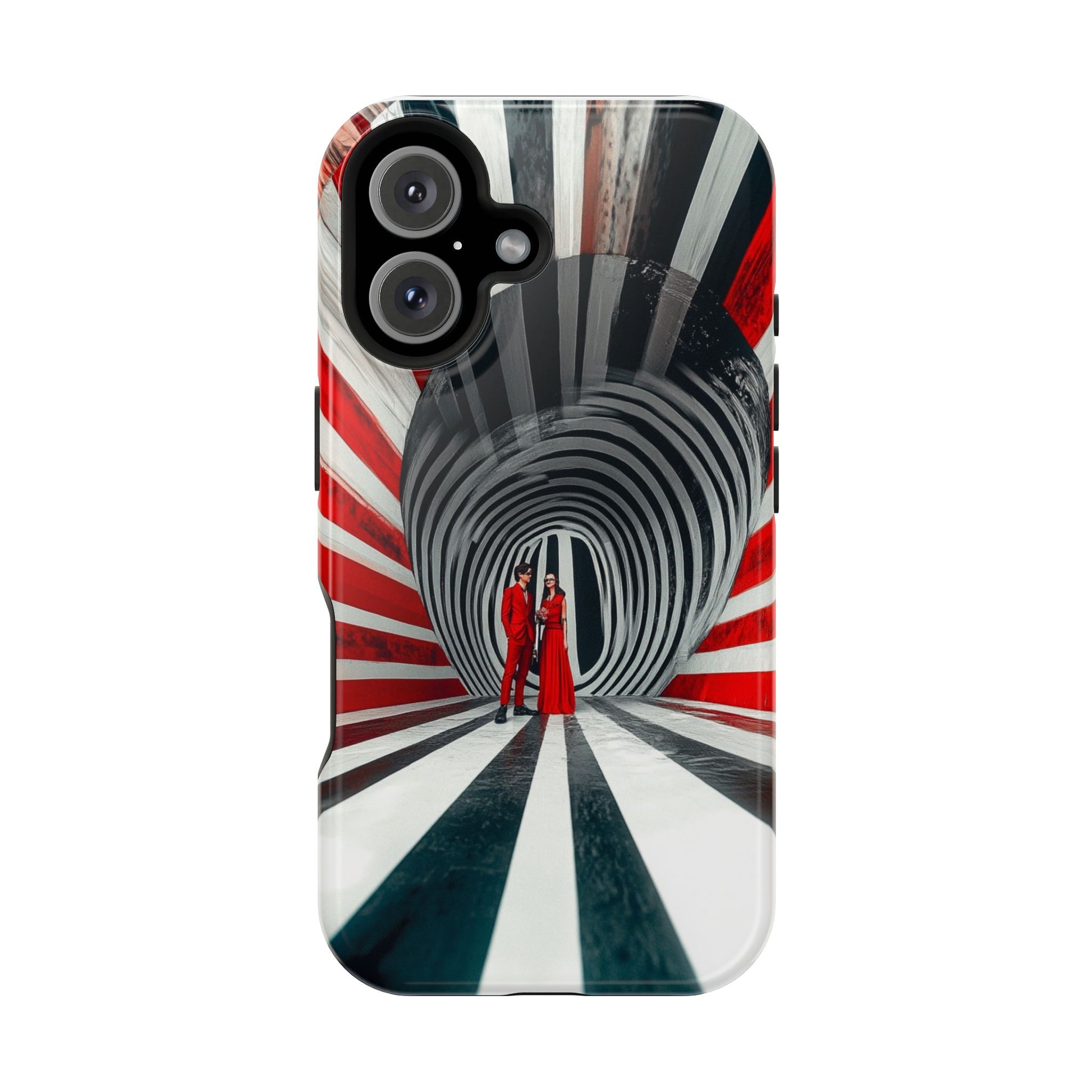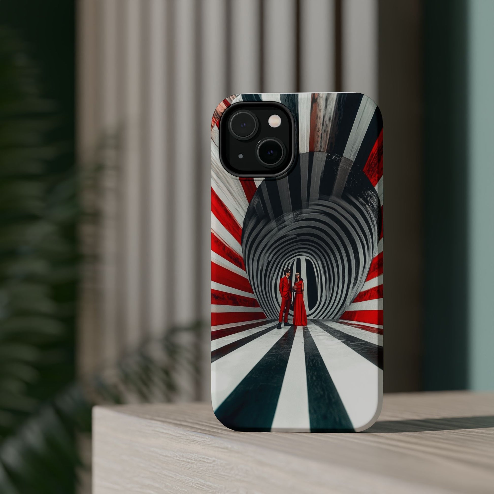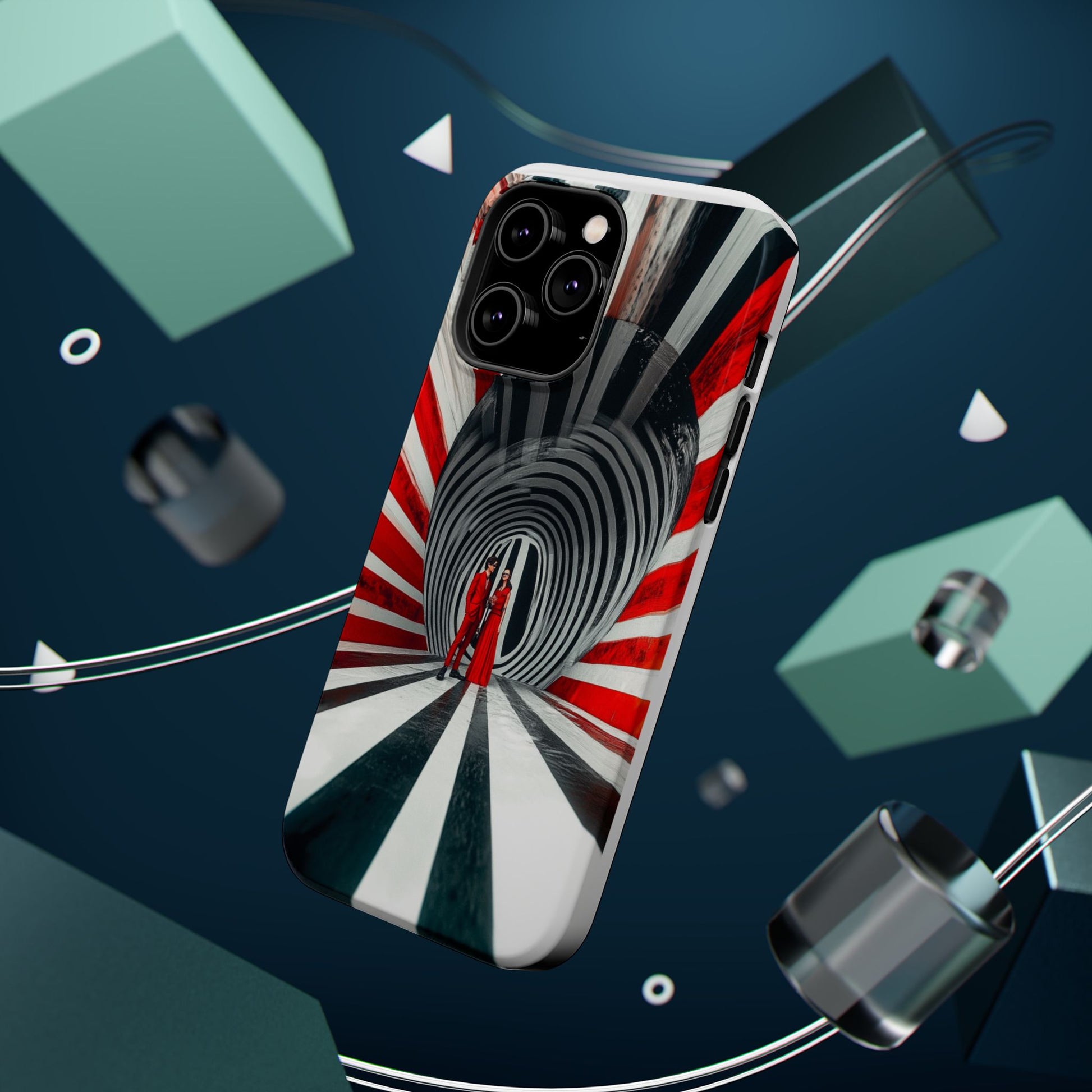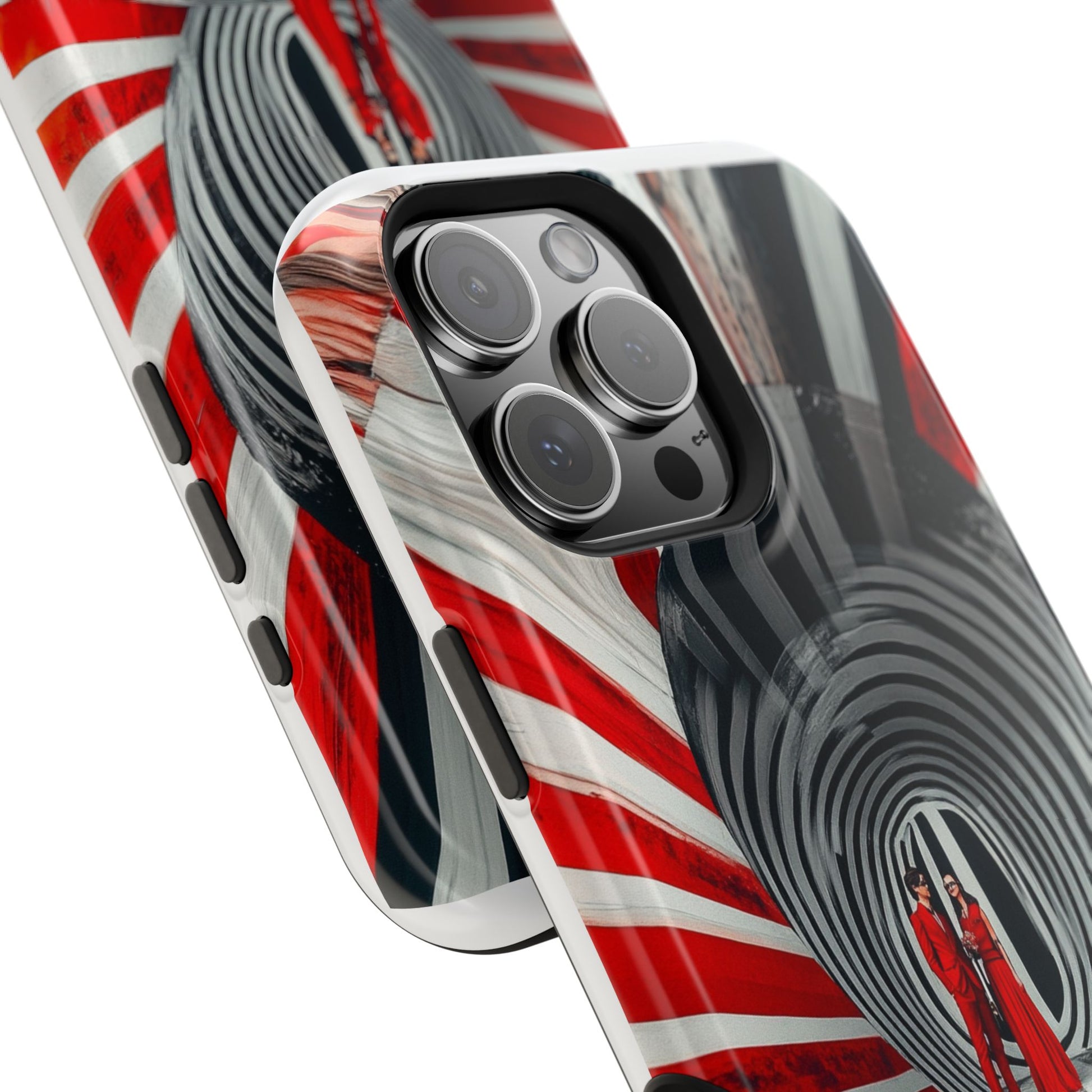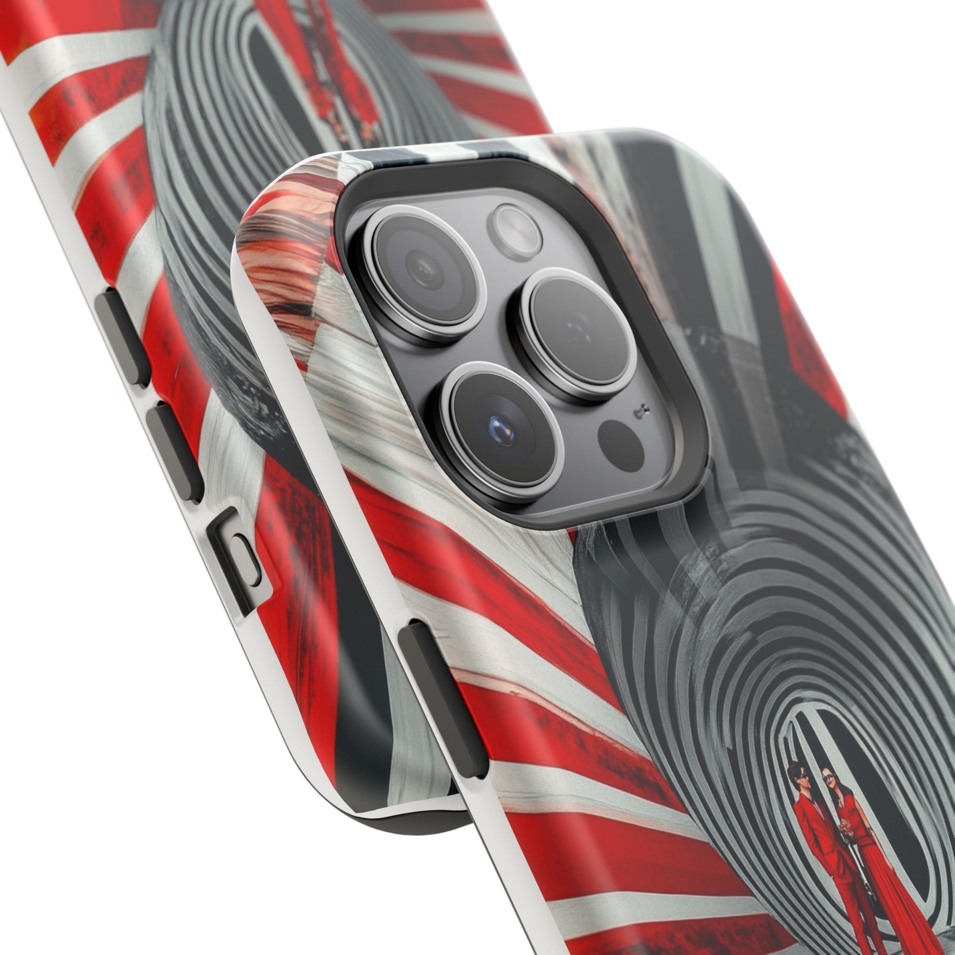 Tags: #MoxieJayArt #CosmicVortex #LuxuryiPhoneCase #WirelessCharging #MagSafeCompatible #ArtisticCase #WormholeDesign #BlackWhiteRed #DurableProtection #FashionTech #UniquePhoneCase #GiftIdea #StyleMeetsFunctionality #PremiumAccessory #LimitedEdition
