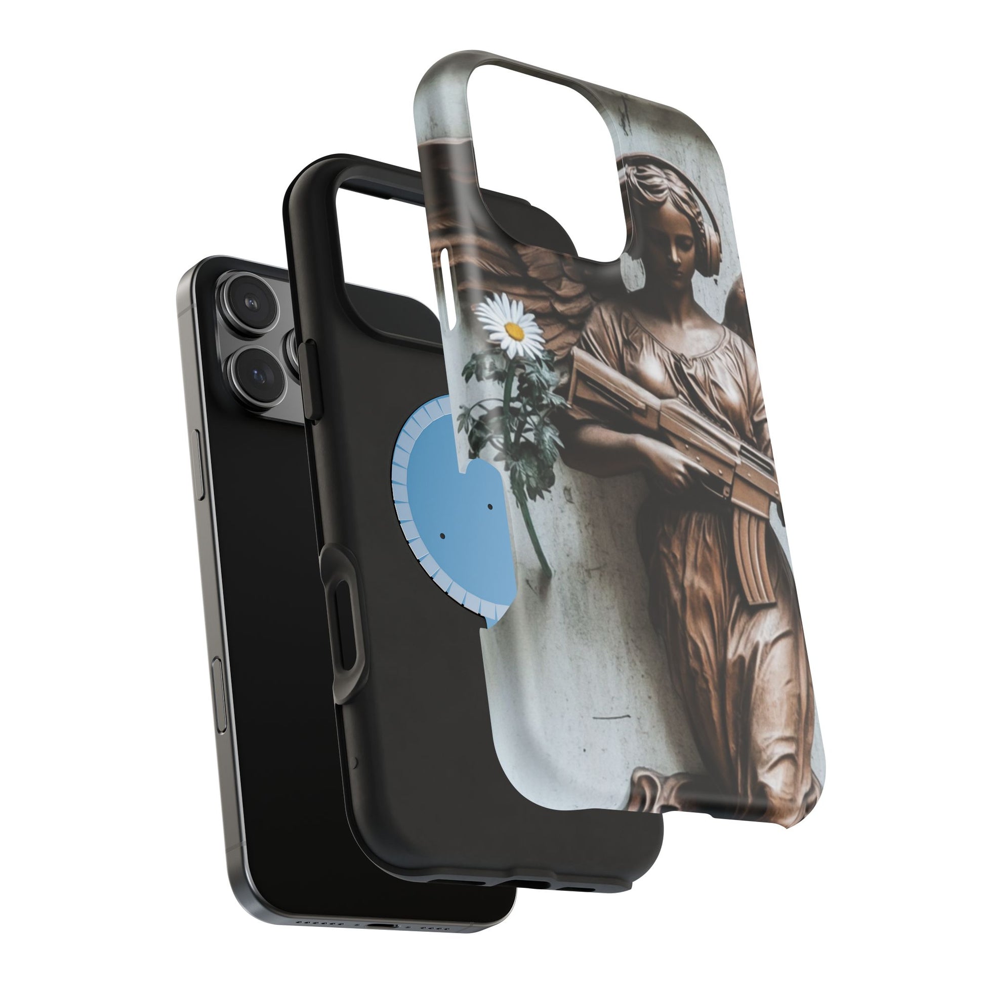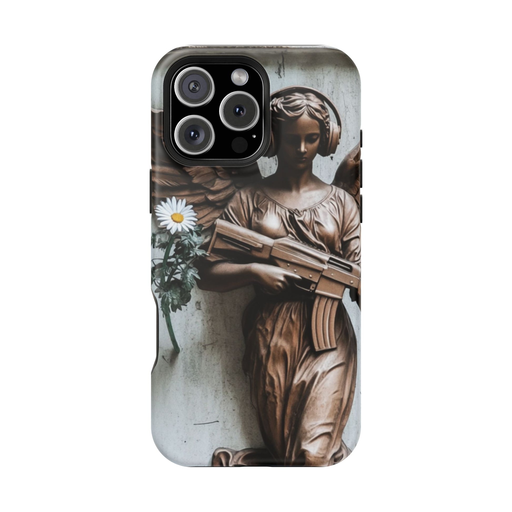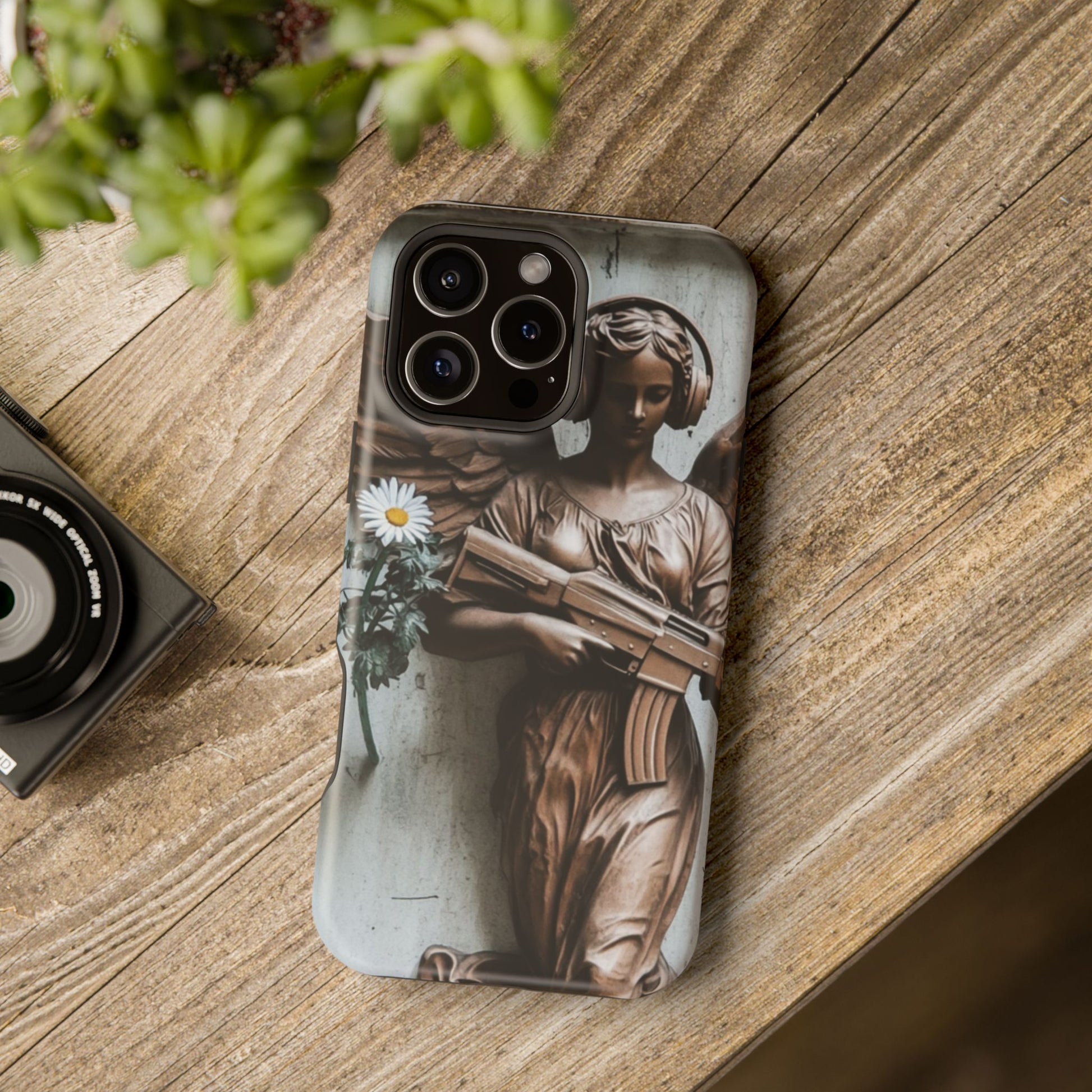 Phone Case - Angel Statue with Assault Rifle and Daisy Flower Design