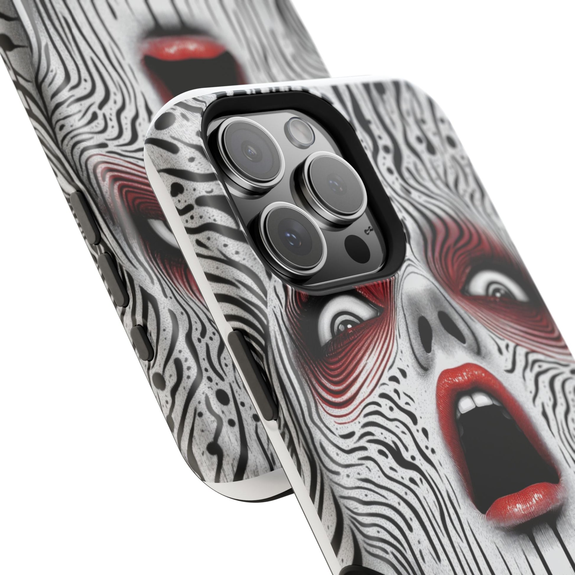 Embrace the rebellious spirit of the '80s with our "Punk Meltdown" case, featuring a provocative artwork by Moxie Jay. This luxurious case showcases a striking image of a melting woman's face in vibrant '80s punk style, perfectly capturing the era's raw energy and artistic defiance.A luxurious Magnetic wireless charging Tough iPhone Case featuring a art piece by moxie-jay of a hand scratching a bright red record. This durable polycarbonate case offers extra protection against scratches and minor bumps, with vibrant colors and glossy or matte surface options. The interior magnets make it MagSafe® Compatible for easy charging with MagSafe® accessories.Product features:
