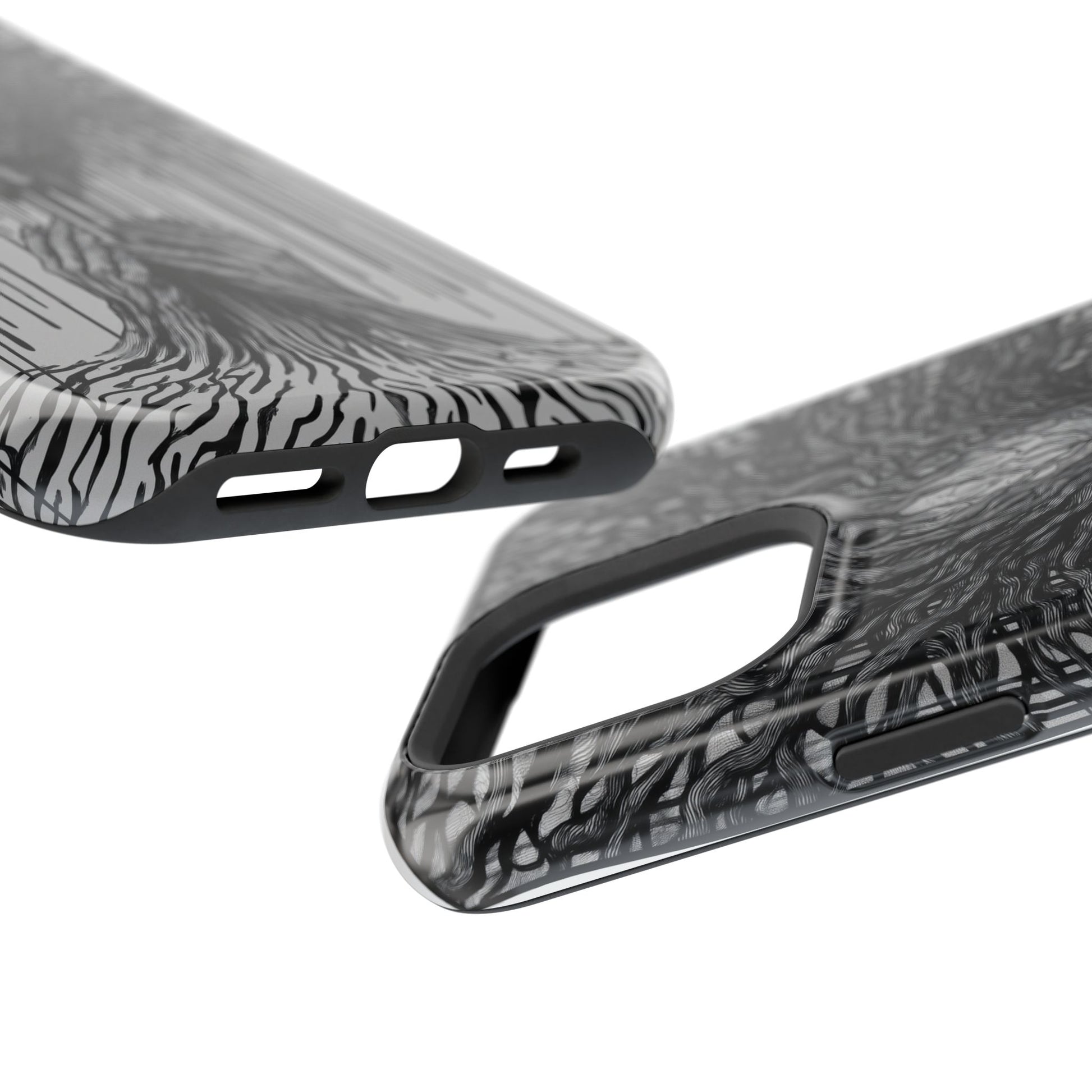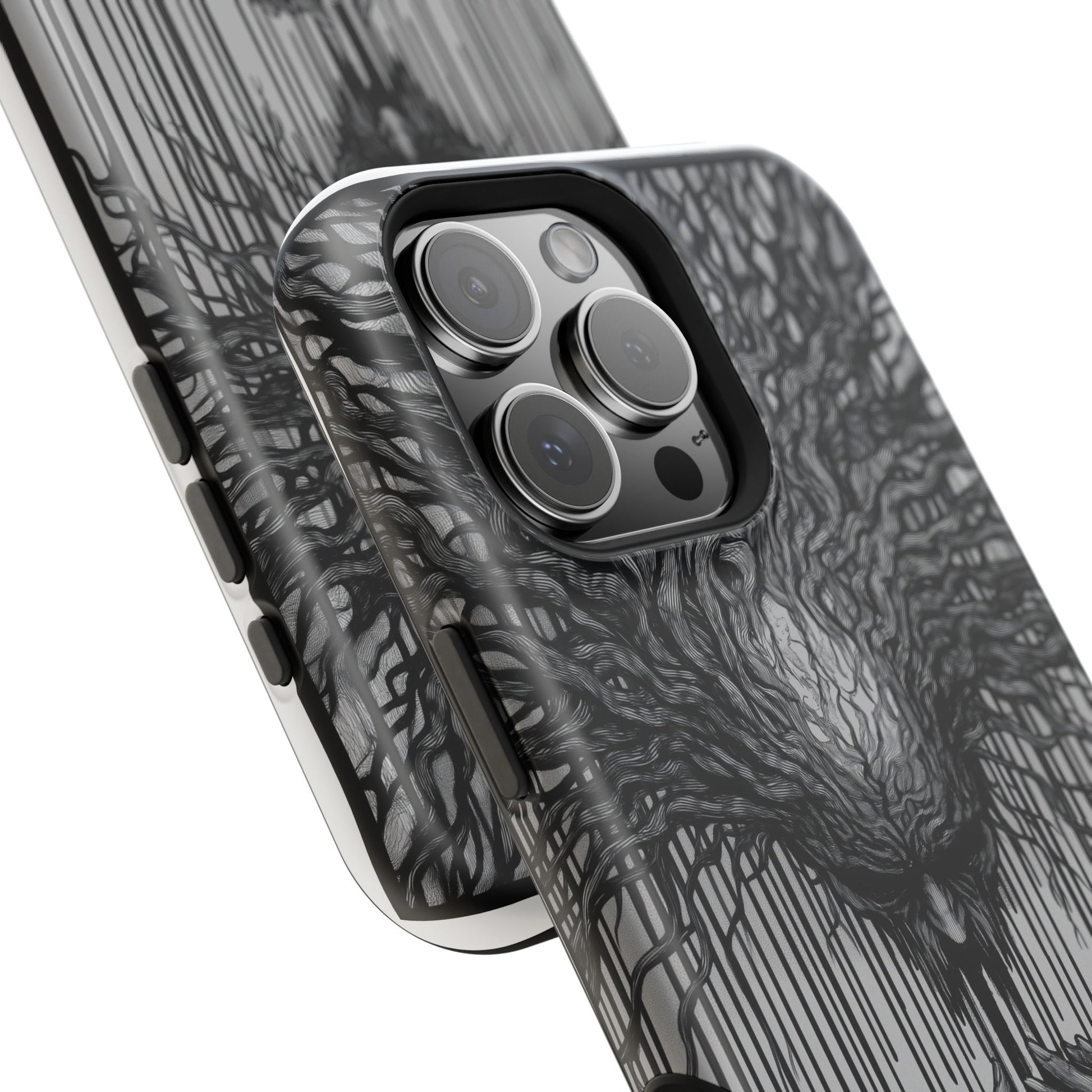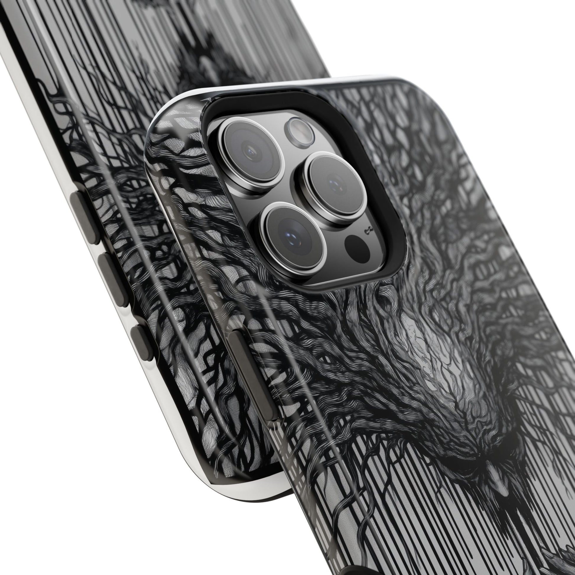 Luxury phone case with original art of a black and white drawing of a demonic figure. Perfect for those who appreciate unique and edgy designs. Ideal for anyone looking to add some personality to their phone while keeping it protected. Relevant for Halloween, gothic enthusiasts, and art lovers.