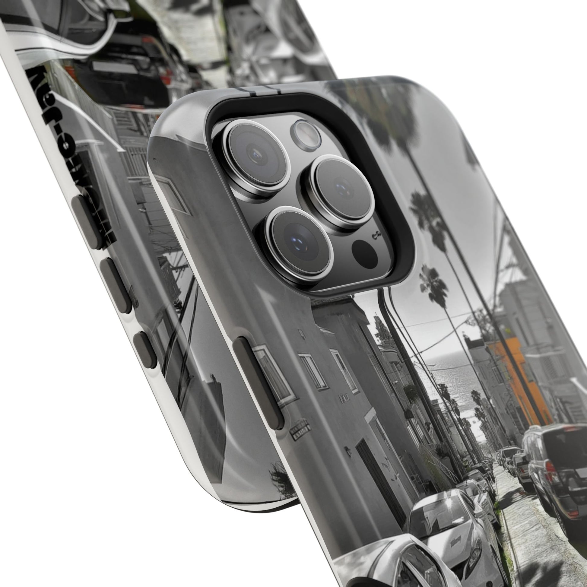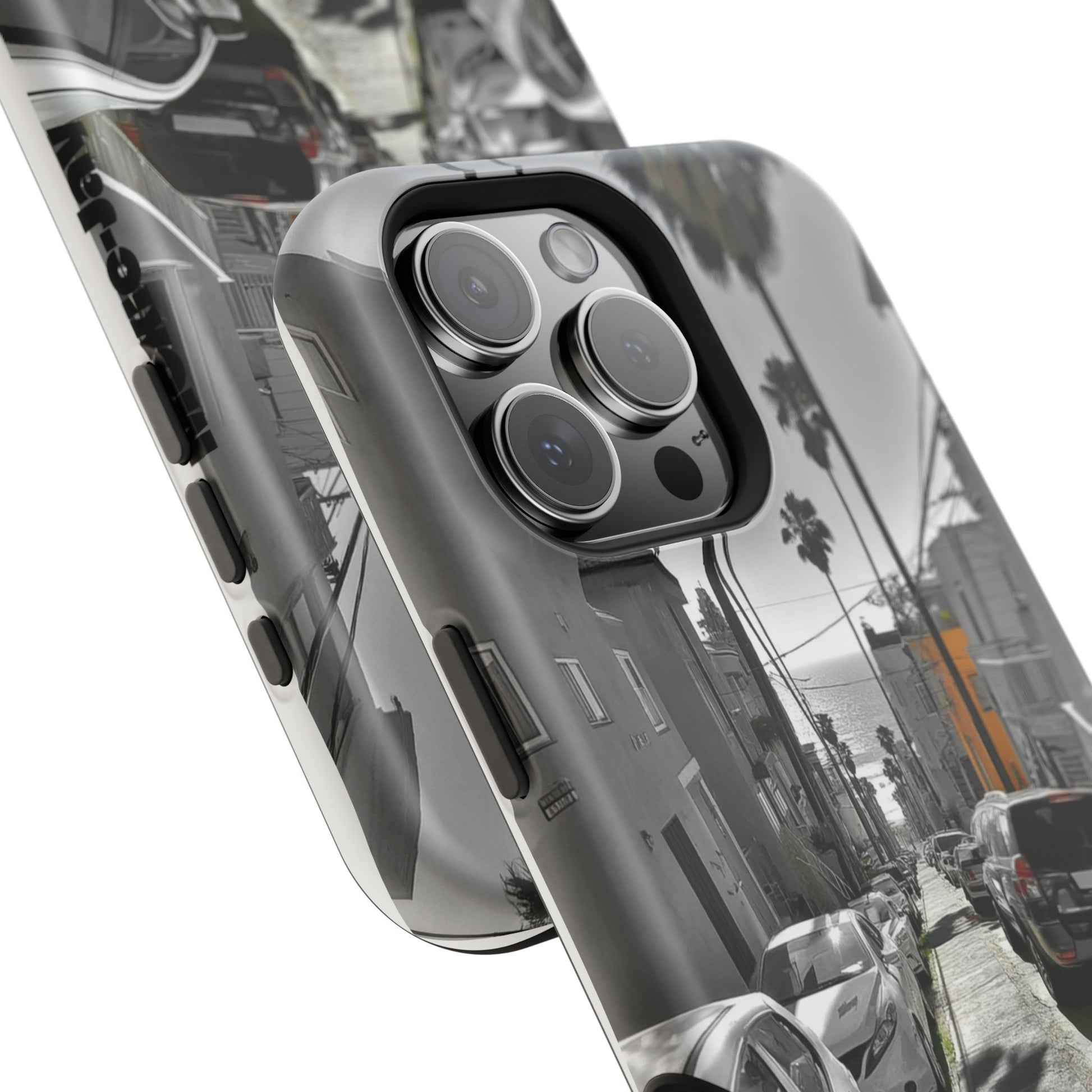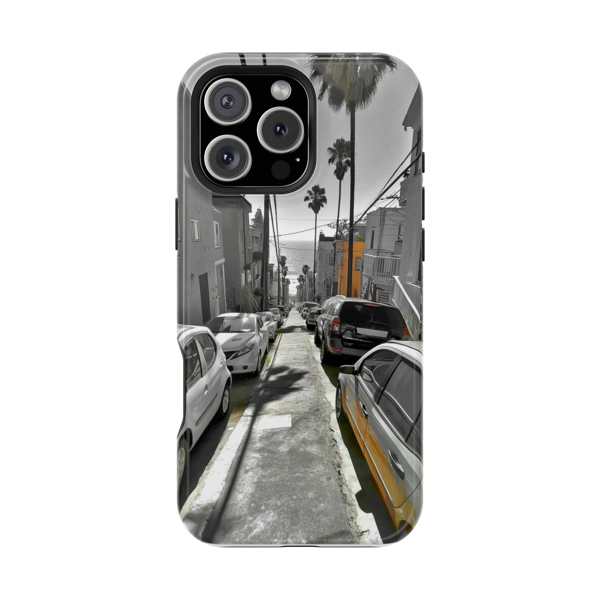 Immerse your iPhone in coastal beauty with our "Ocean Avenue" case, featuring a captivating photograph by Moxie Jay. This luxurious case showcases a striking image of a street leading directly to the beautiful ocean, blending urban charm with seaside serenity. This durable polycarbonate case offers extra protection against scratches and minor bumps, with vibrant colors and glossy or matte surface options. The interior magnets make it MagSafe® Compatible for easy charging with MagSafe® accessories.Product features: