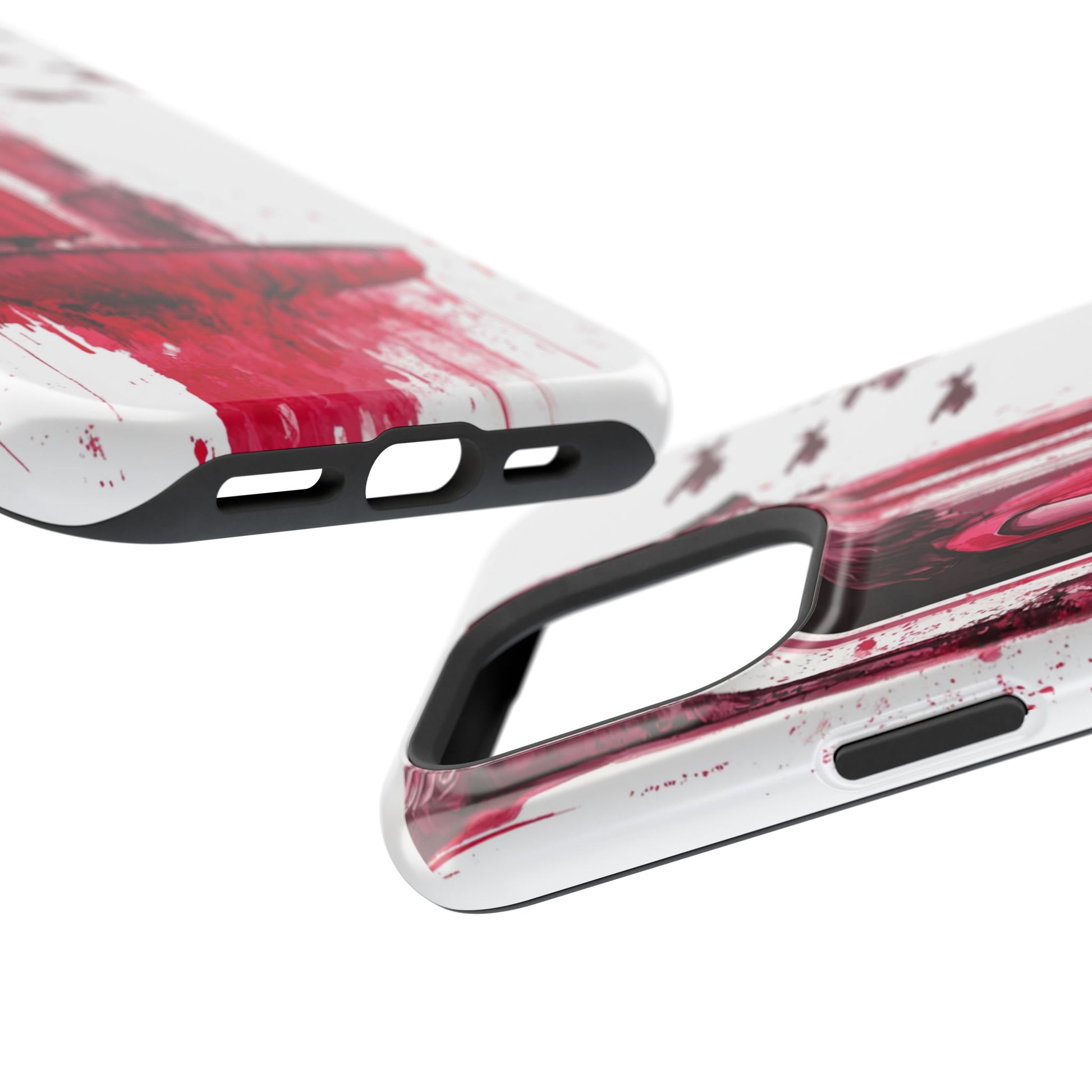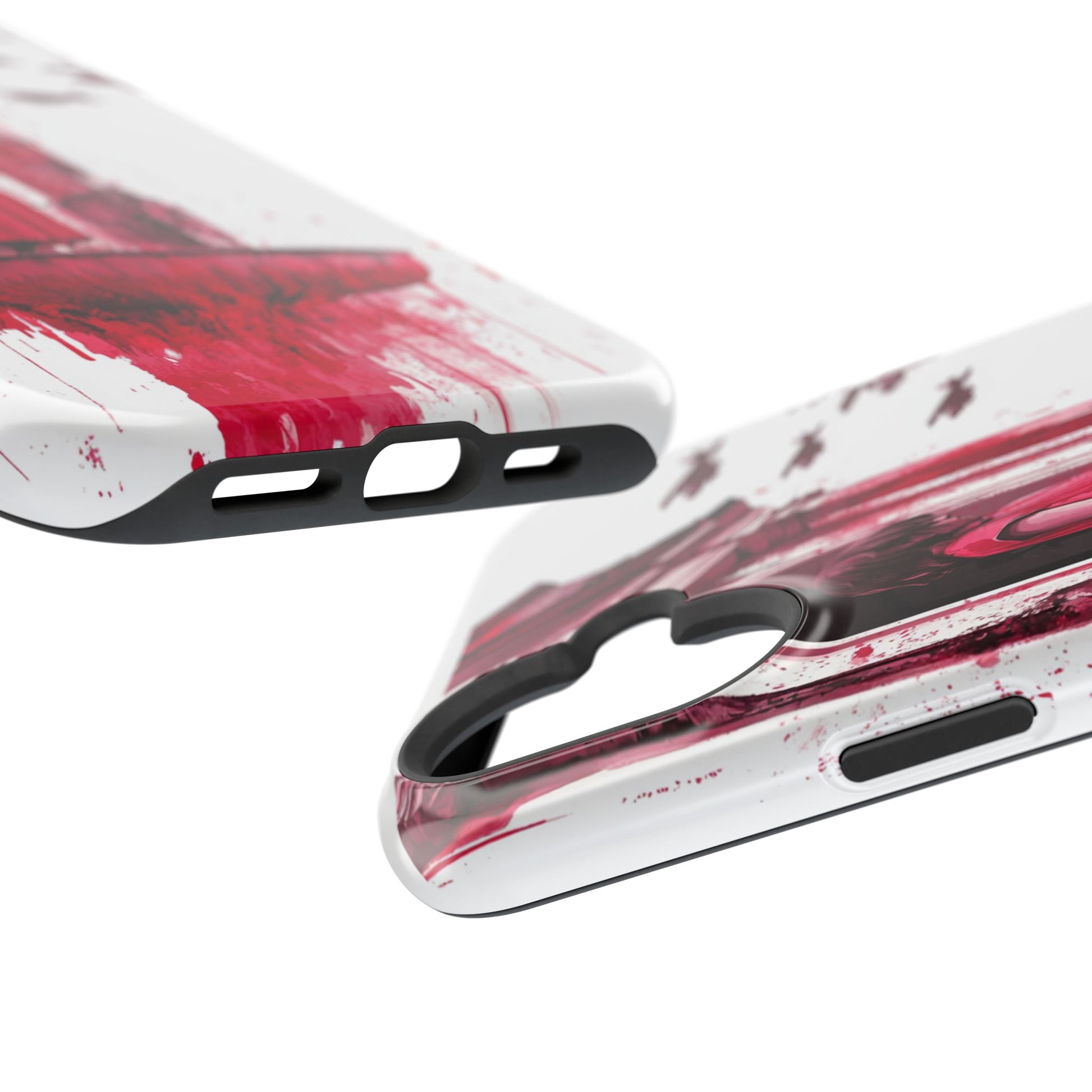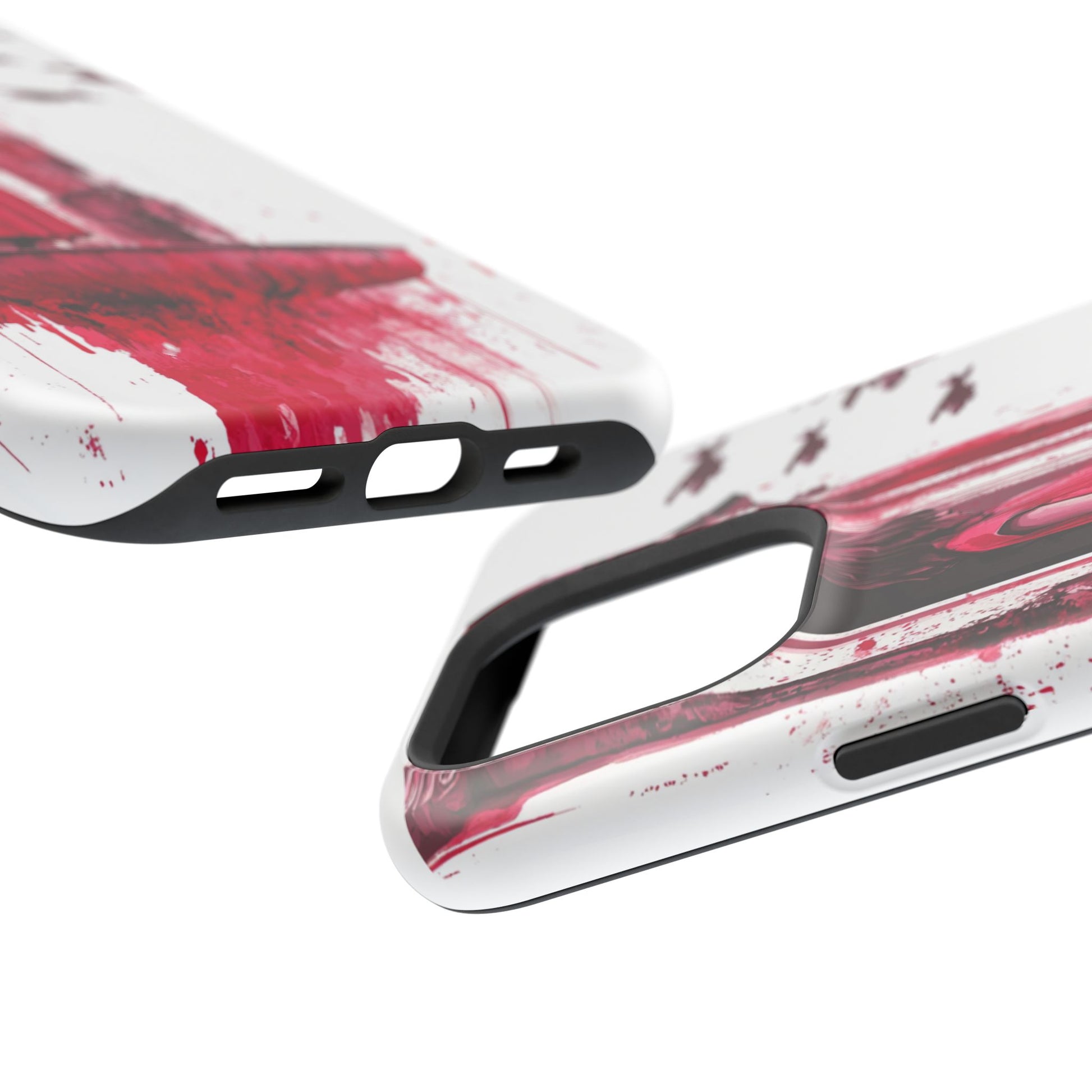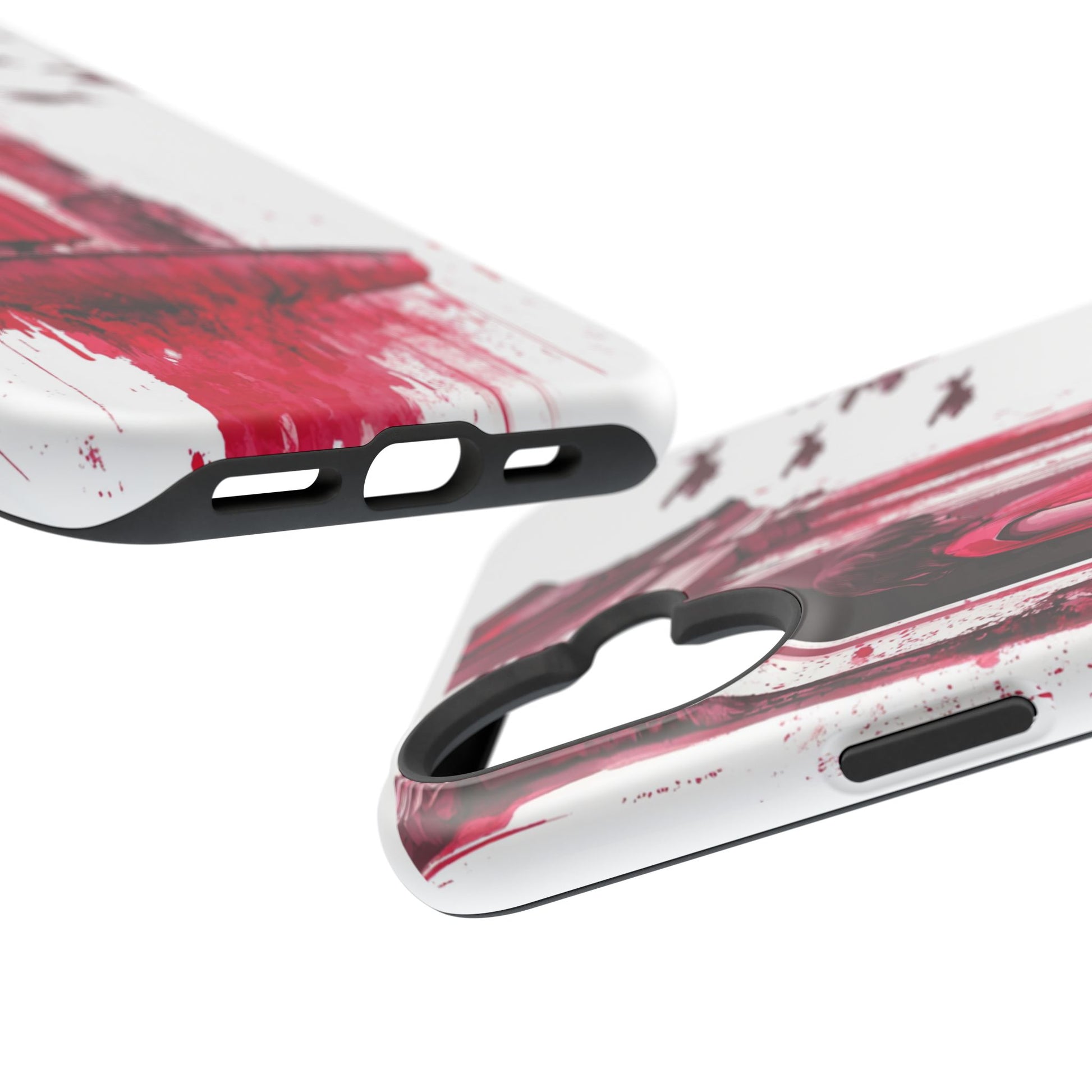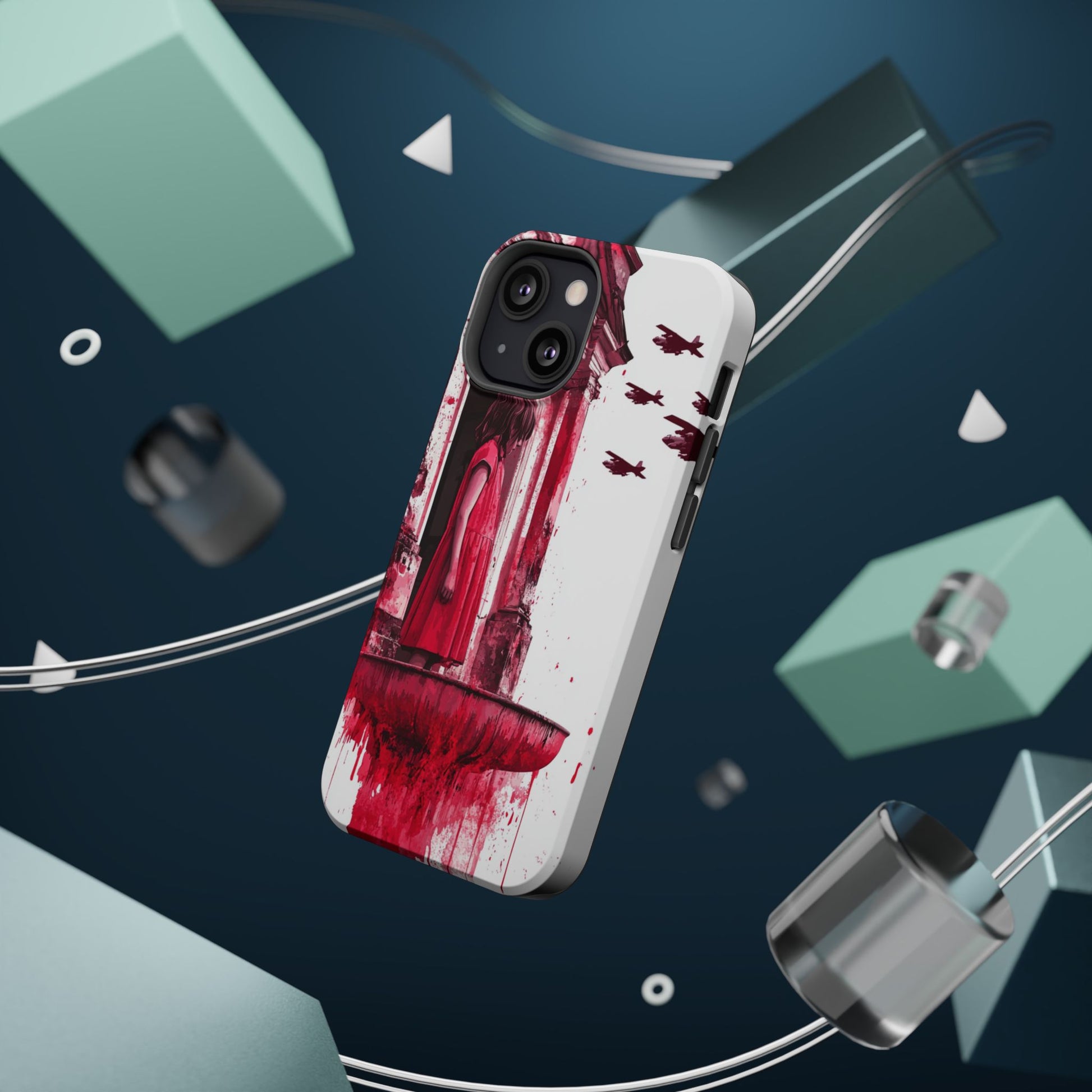 Protect your iPhone with this striking case featuring Moxie-Jay's powerful artwork "Resilience in Ruins." This luxurious case depicts a young girl standing on the ledge of a bombed-out building, her gaze fixed on bomber planes above. The durable polycarbonate construction shields your device from impacts and scratches, while built-in magnets ensure seamless MagSafe® compatibility for effortless wireless charging.Product features: