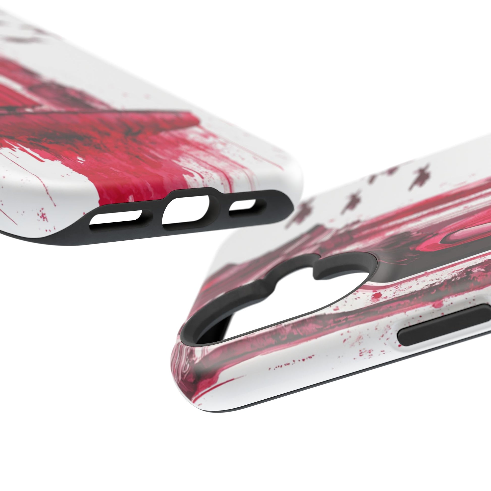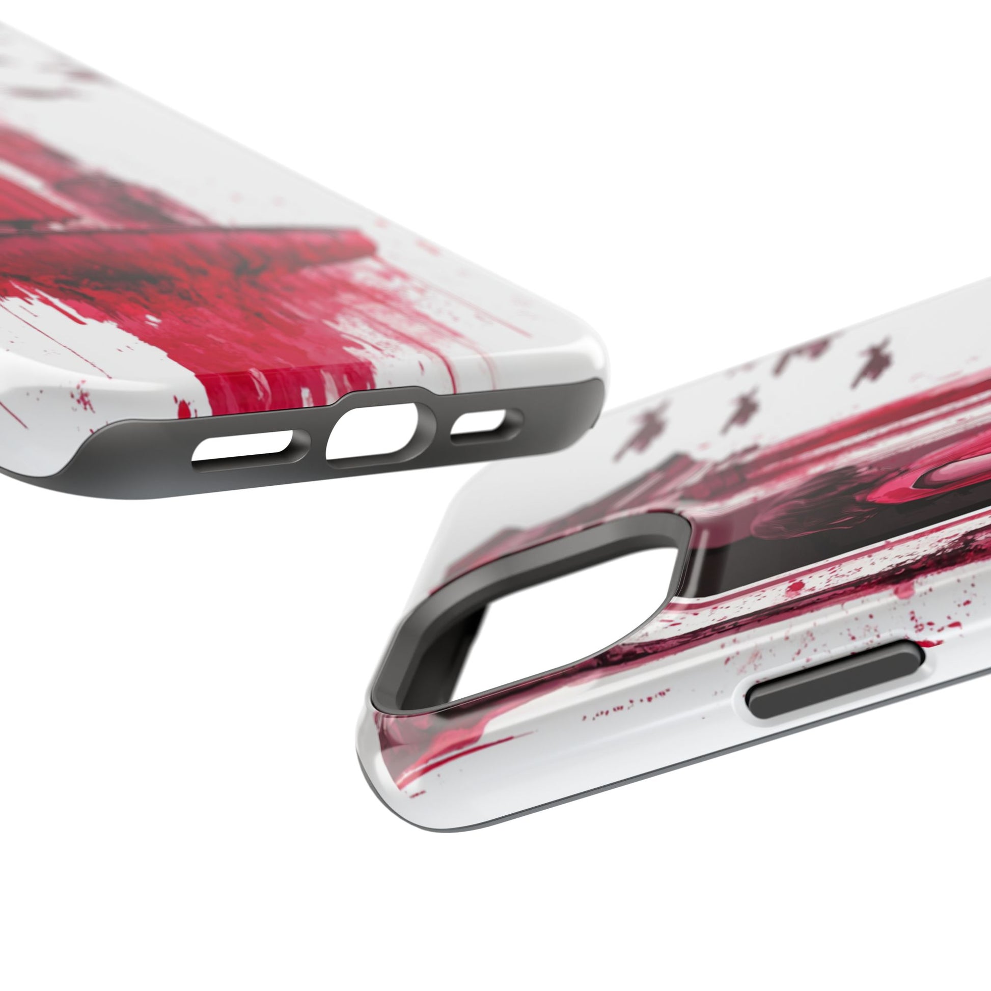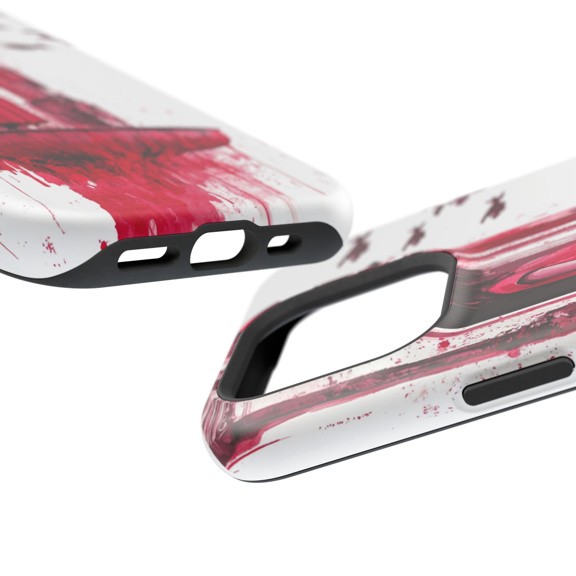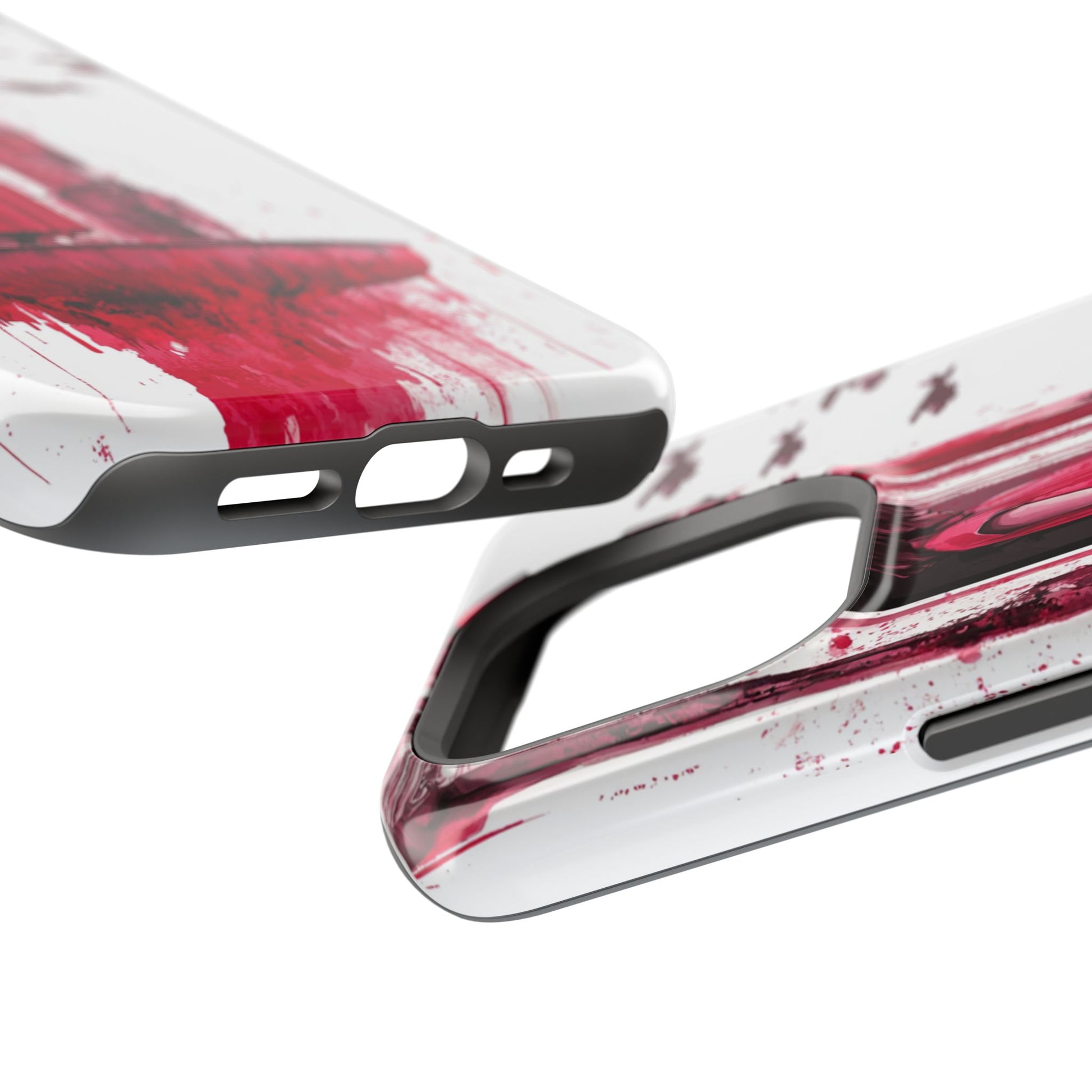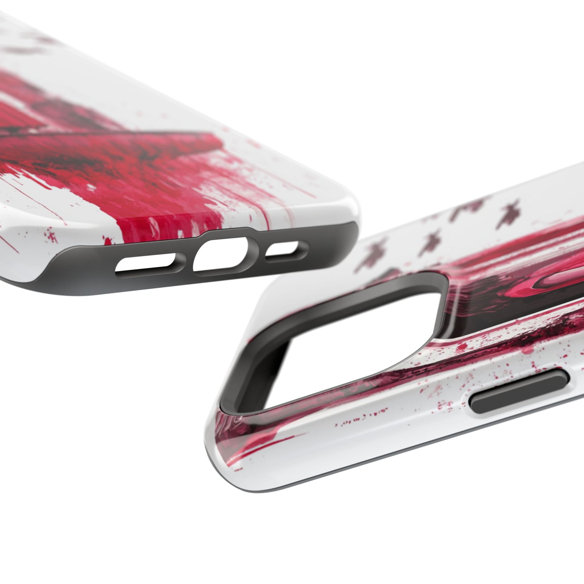Protect your iPhone with this striking case featuring Moxie-Jay's powerful artwork "Resilience in Ruins." This luxurious case depicts a young girl standing on the ledge of a bombed-out building, her gaze fixed on bomber planes above. The durable polycarbonate construction shields your device from impacts and scratches, while built-in magnets ensure seamless MagSafe® compatibility for effortless wireless charging.Product features: