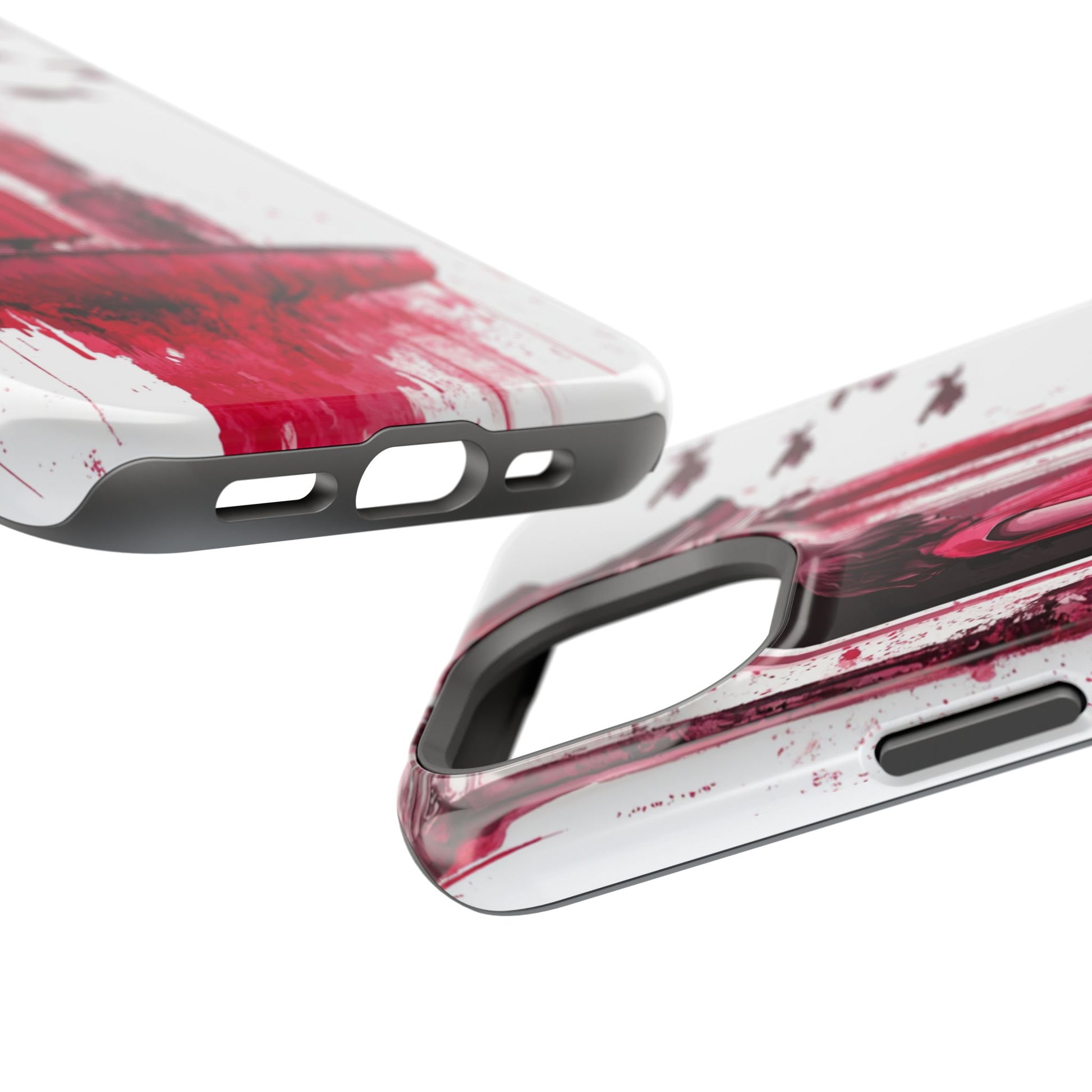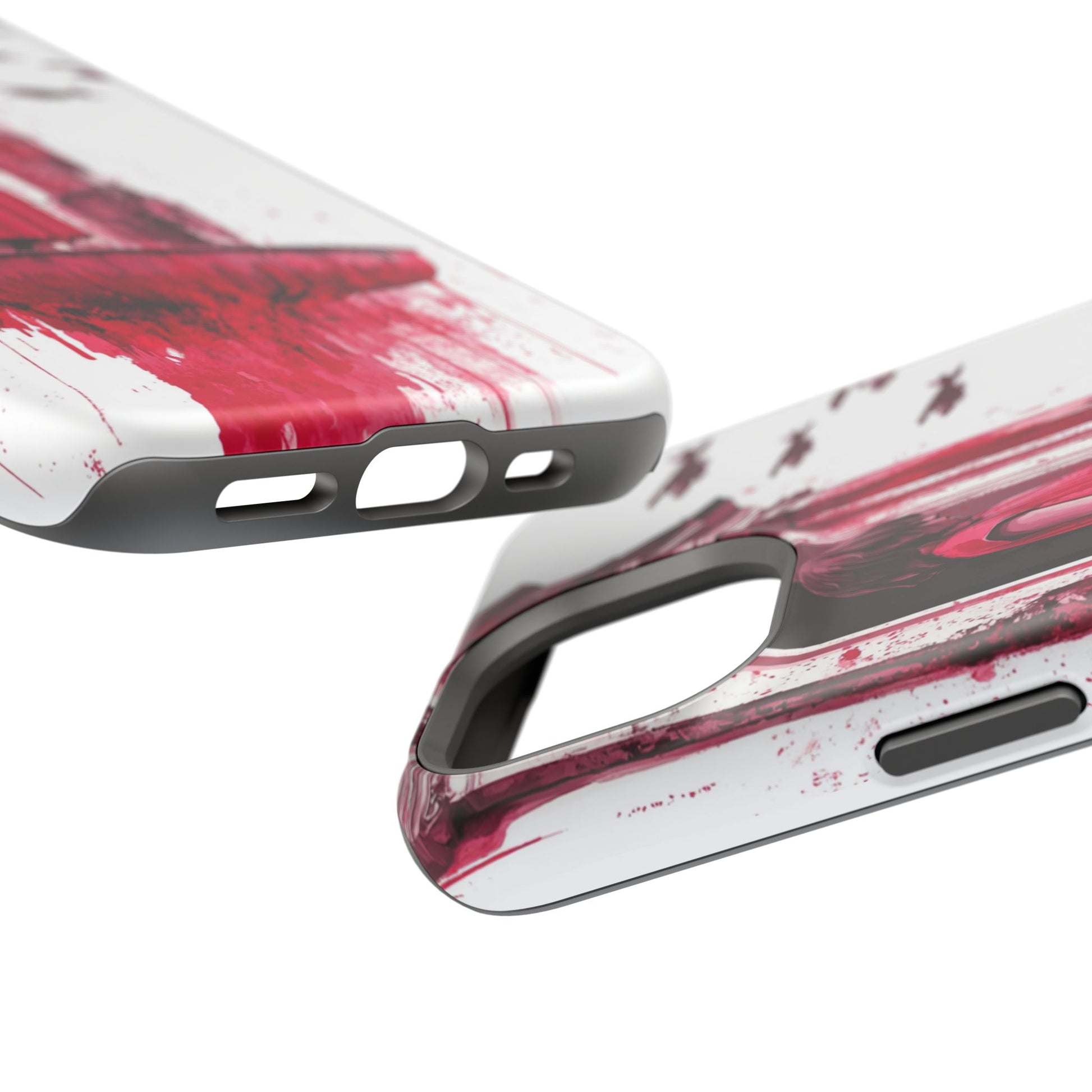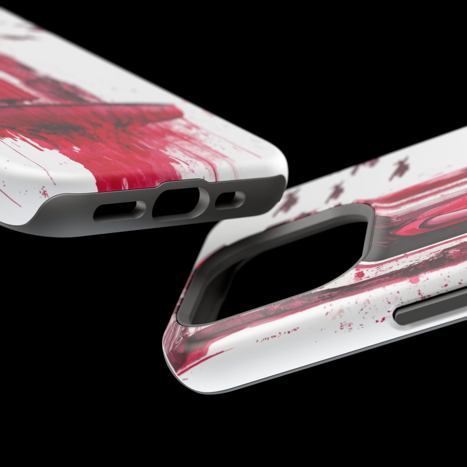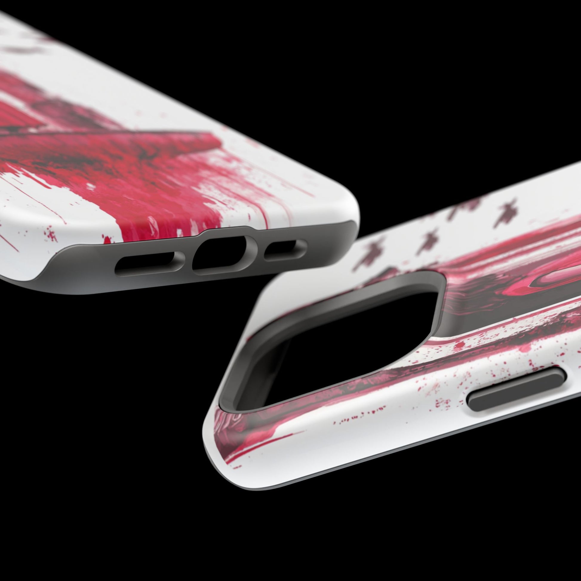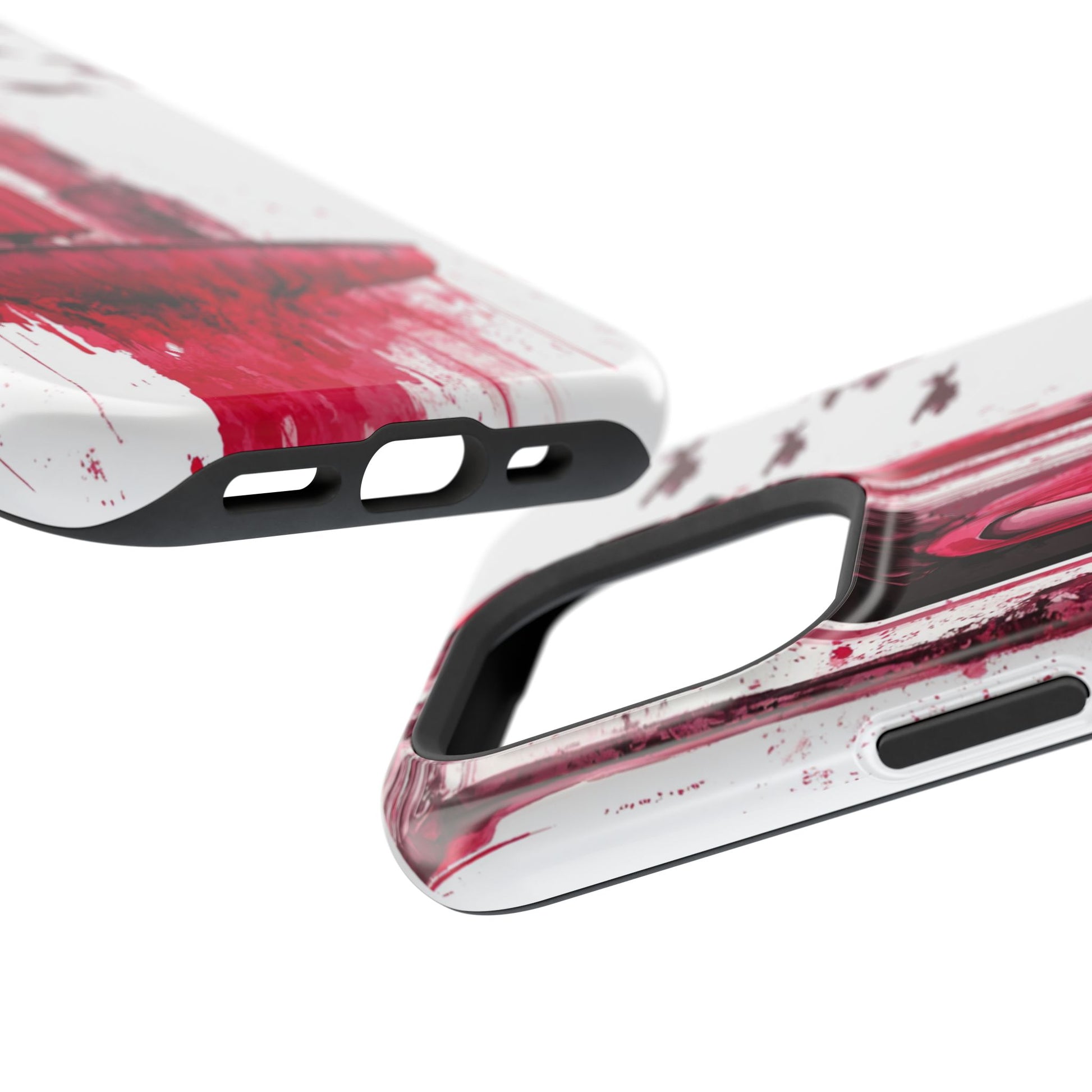 Protect your iPhone with this striking case featuring Moxie-Jay's powerful artwork "Resilience in Ruins." This luxurious case depicts a young girl standing on the ledge of a bombed-out building, her gaze fixed on bomber planes above. The durable polycarbonate construction shields your device from impacts and scratches, while built-in magnets ensure seamless MagSafe® compatibility for effortless wireless charging.Product features: