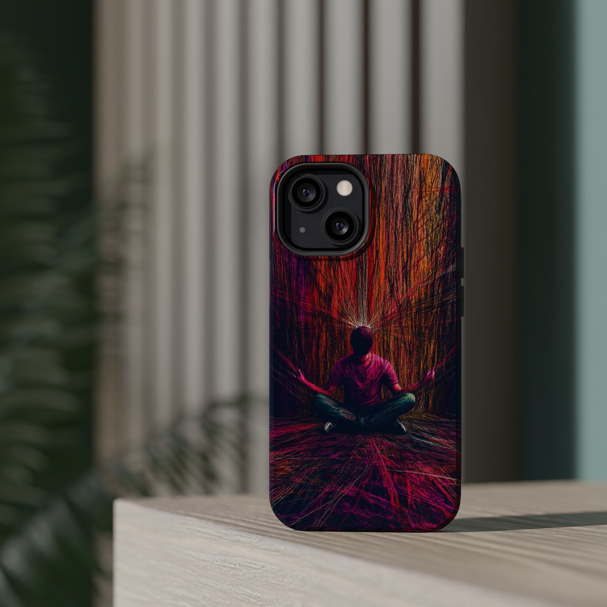 This stunning iPhone case combines luxury, functionality, and powerful artistry. Featuring Moxie-Jay's evocative piece "Transcendence," depicting a man at his lowest point transforming his despair into strength, this case offers both style and protection. The durable polycarbonate construction provides excellent defense against scratches and minor impacts, while the built-in magnets ensure MagSafe® compatibility for effortless wireless charging. Choose between a sleek glossy or sophisticated matte finish to complement your personal style.Product features: