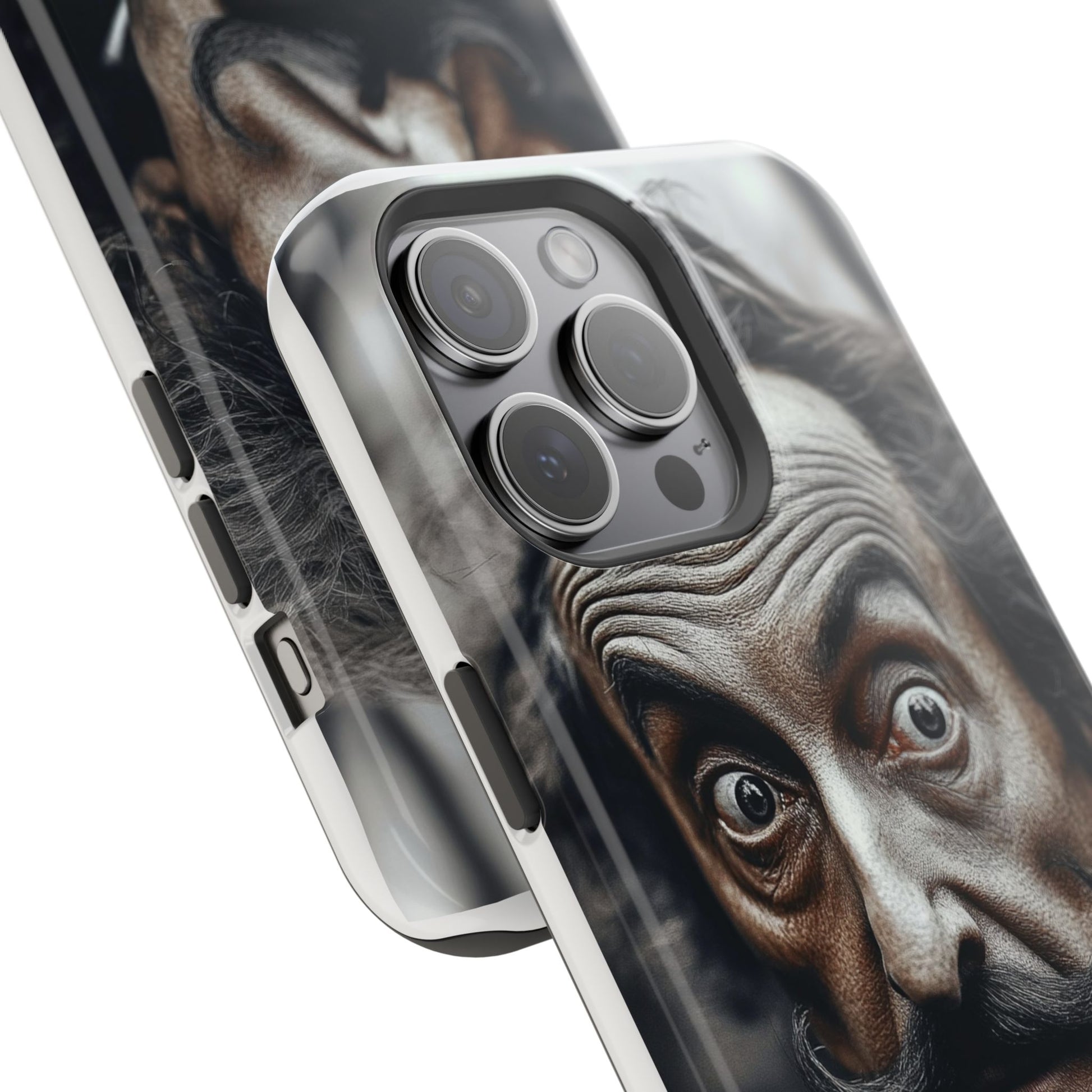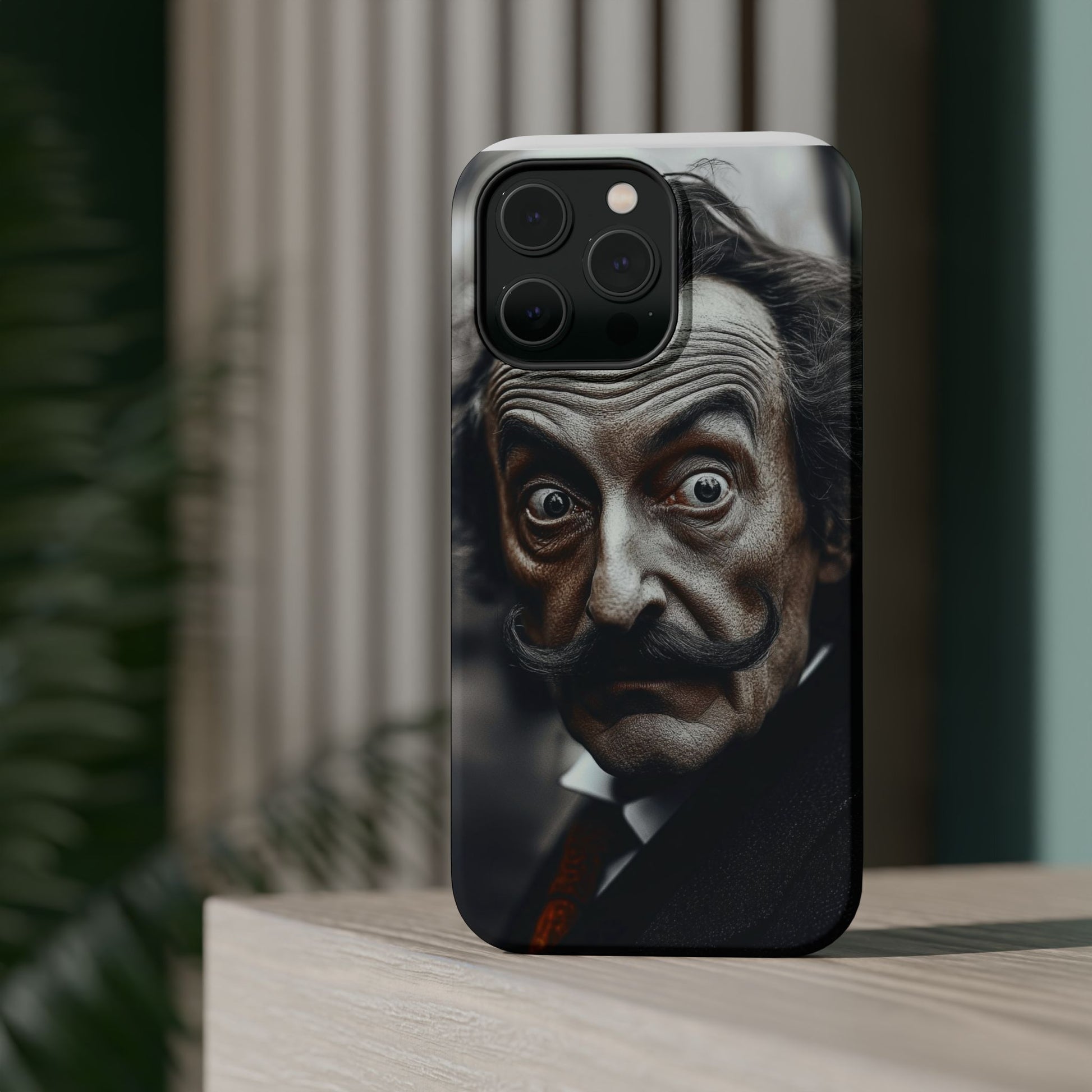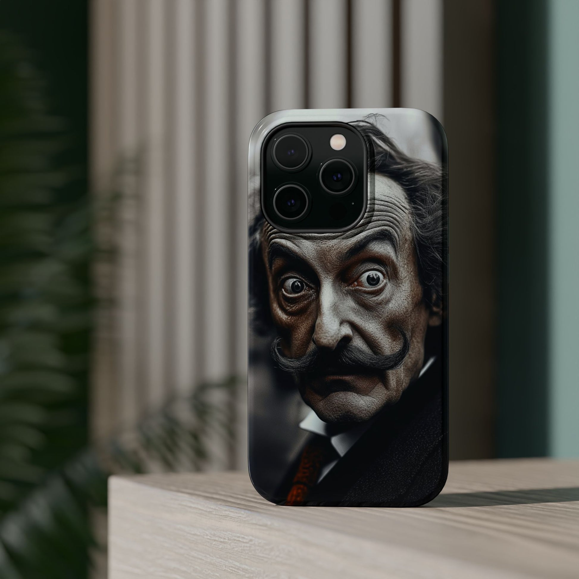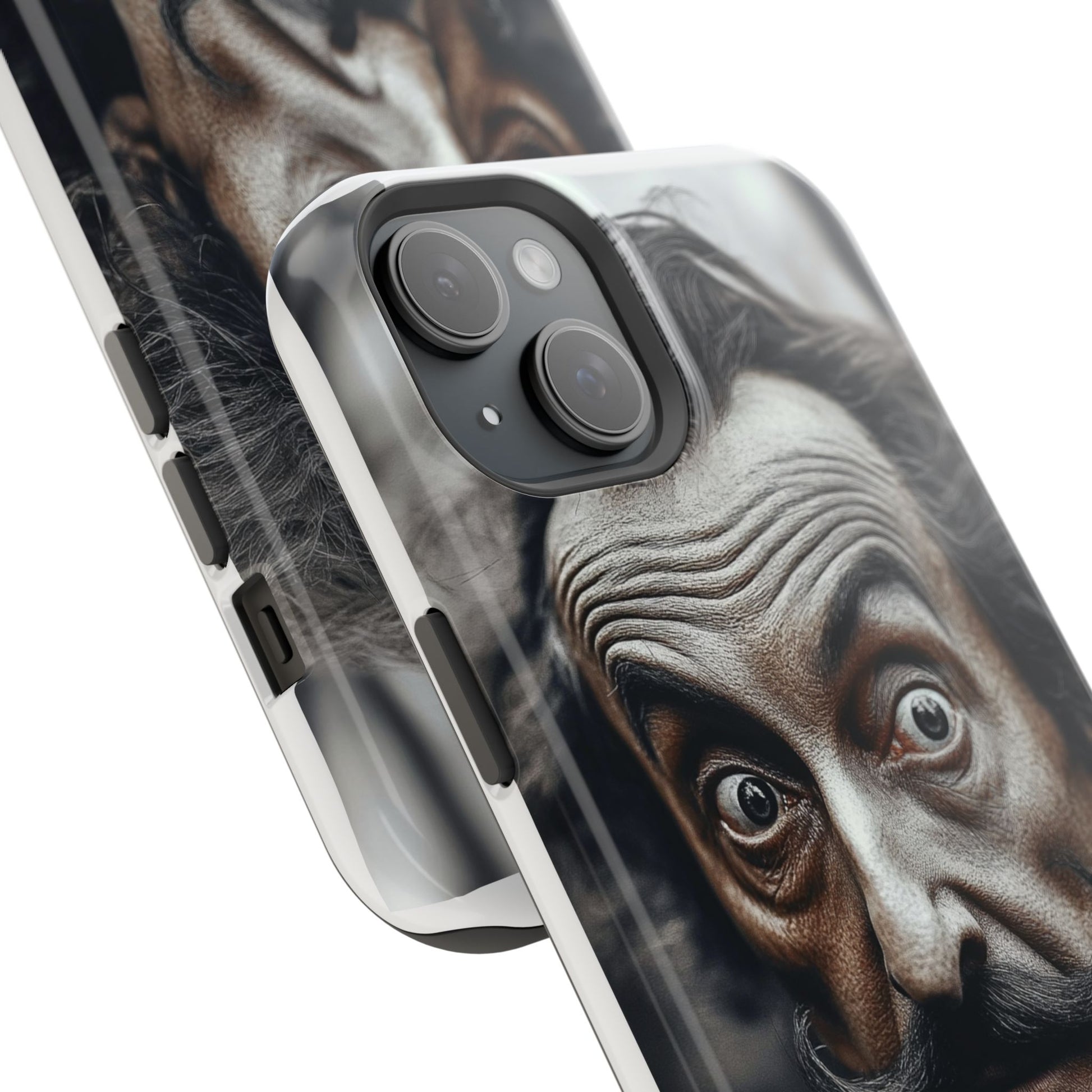 Luxurious Salvador Dali Magnetic Wireless Charging iPhone Case by Moxie-JayThis luxurious Magnetic wireless charging Tough iPhone Case features a captivating art piece by moxie-jay, showcasing a close-up of Salvador Dali in his years of wisdom and ultra amusement. The durable polycarbonate case offers superior protection against scratches and minor bumps, with vibrant colors and your choice of glossy or matte surface. Interior magnets ensure MagSafe® compatibility for effortless charging with MagSafe® accessories2.A luxurious Magnetic wireless charging Tough iPhone Case featuring a art piece by moxie-jay of a hand scratching a bright red record. This durable polycarbonate case offers extra protection against scratches and minor bumps, with vibrant colors and glossy or matte surface options. The interior magnets make it MagSafe® Compatible for easy charging with MagSafe® accessories.Product features: