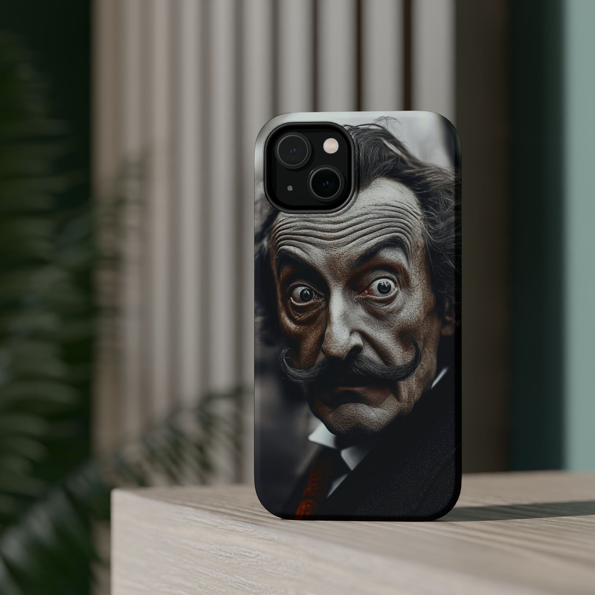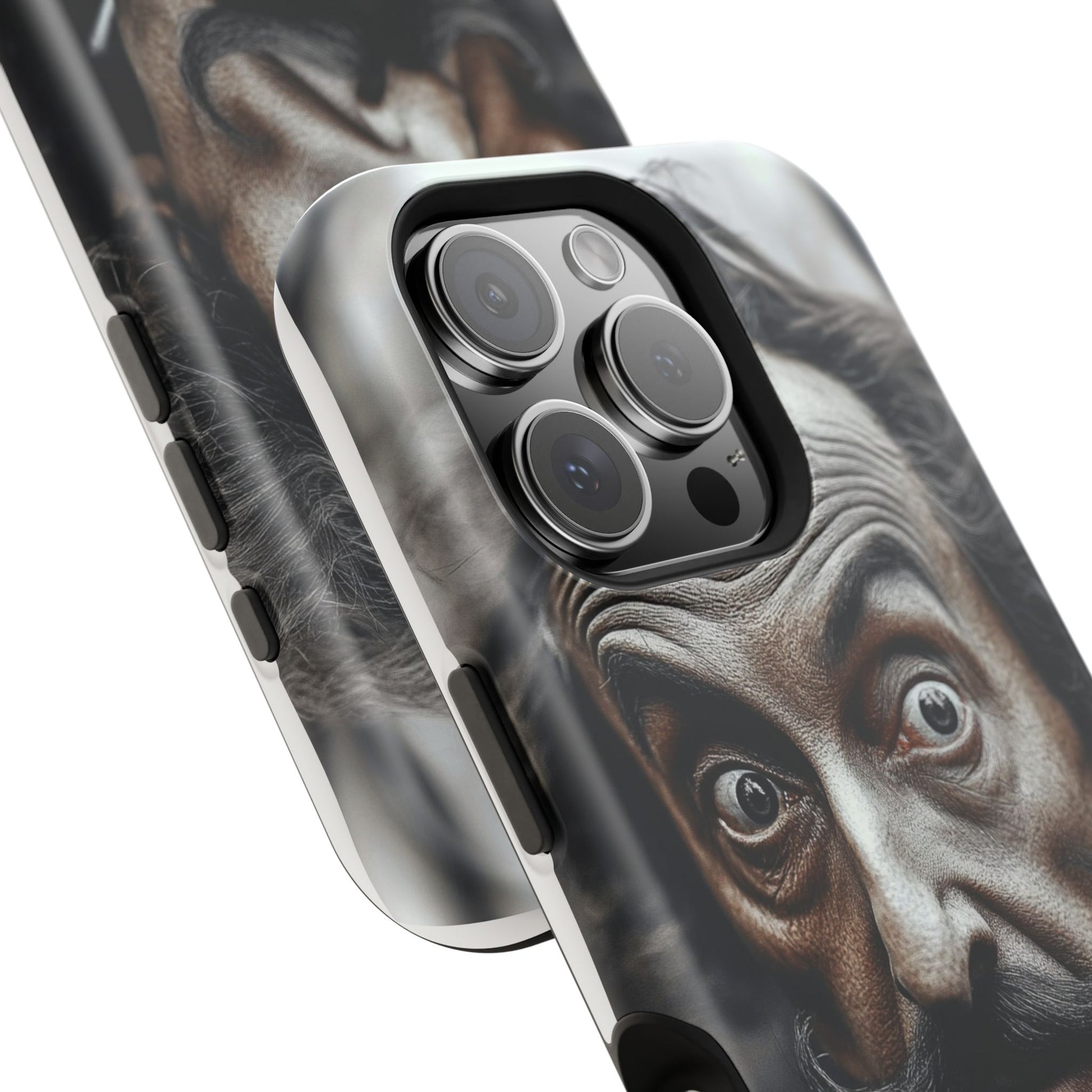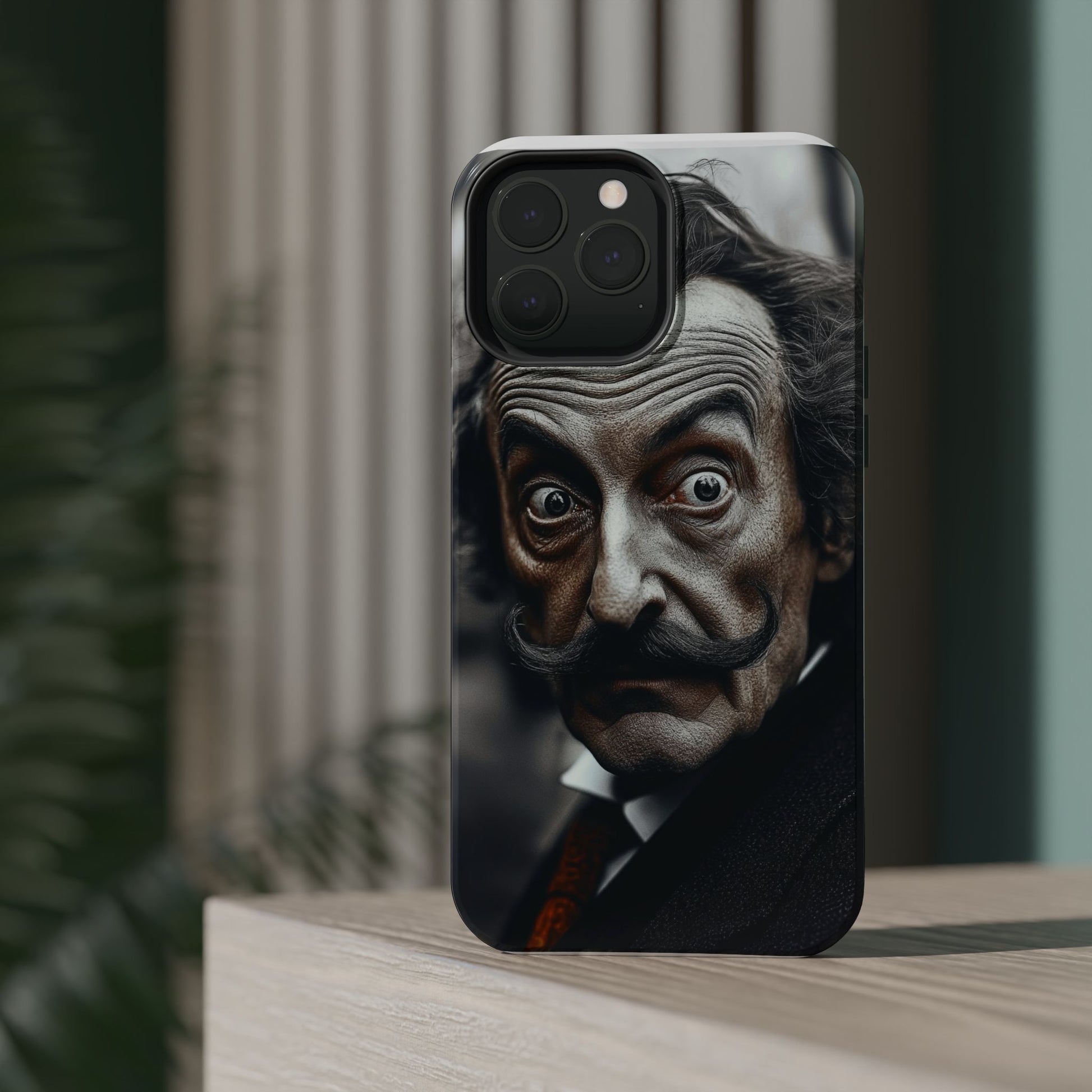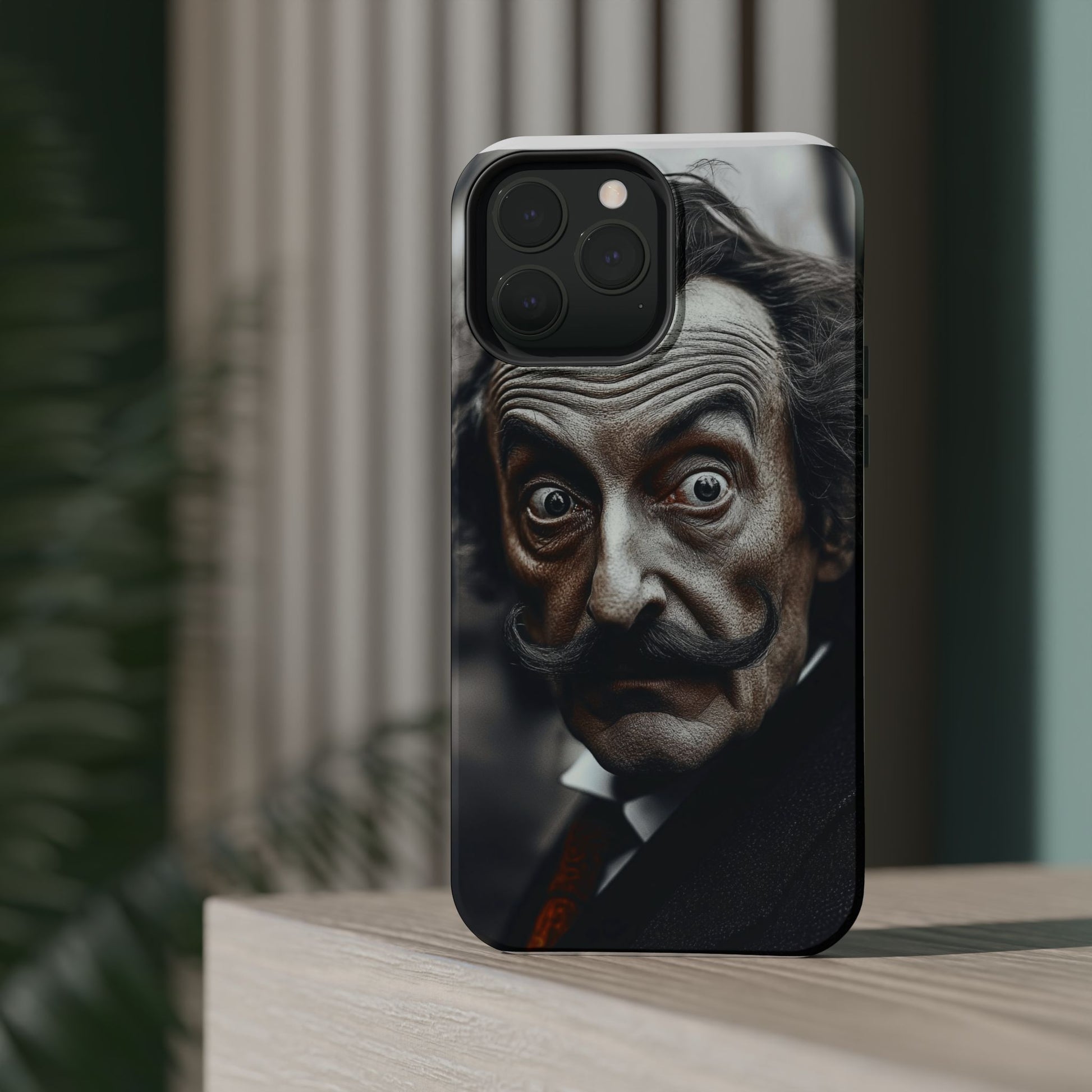 Luxurious Salvador Dali Magnetic Wireless Charging iPhone Case by Moxie-JayThis luxurious Magnetic wireless charging Tough iPhone Case features a captivating art piece by moxie-jay, showcasing a close-up of Salvador Dali in his years of wisdom and ultra amusement. The durable polycarbonate case offers superior protection against scratches and minor bumps, with vibrant colors and your choice of glossy or matte surface. Interior magnets ensure MagSafe® compatibility for effortless charging with MagSafe® accessories2.A luxurious Magnetic wireless charging Tough iPhone Case featuring a art piece by moxie-jay of a hand scratching a bright red record. This durable polycarbonate case offers extra protection against scratches and minor bumps, with vibrant colors and glossy or matte surface options. The interior magnets make it MagSafe® Compatible for easy charging with MagSafe® accessories.Product features: