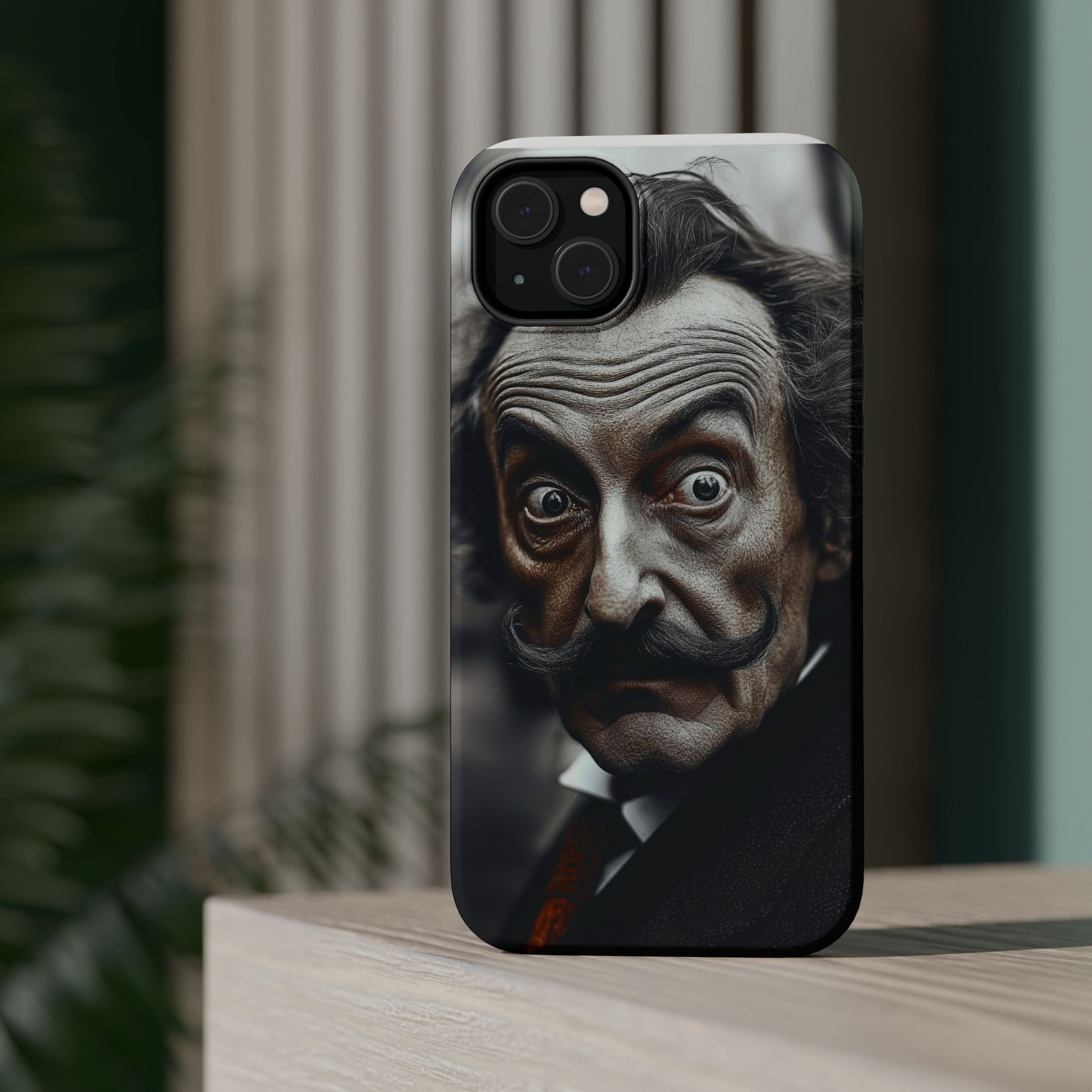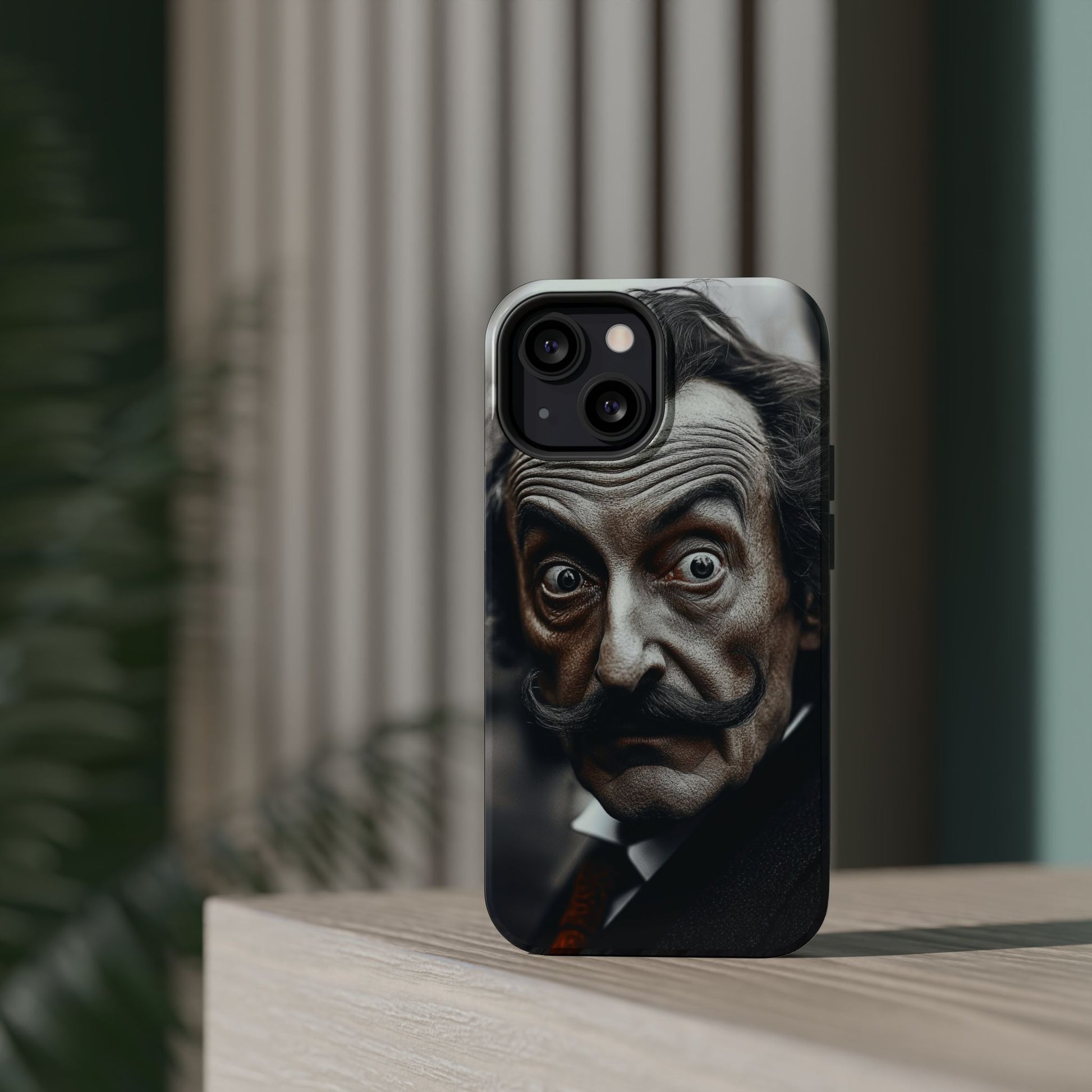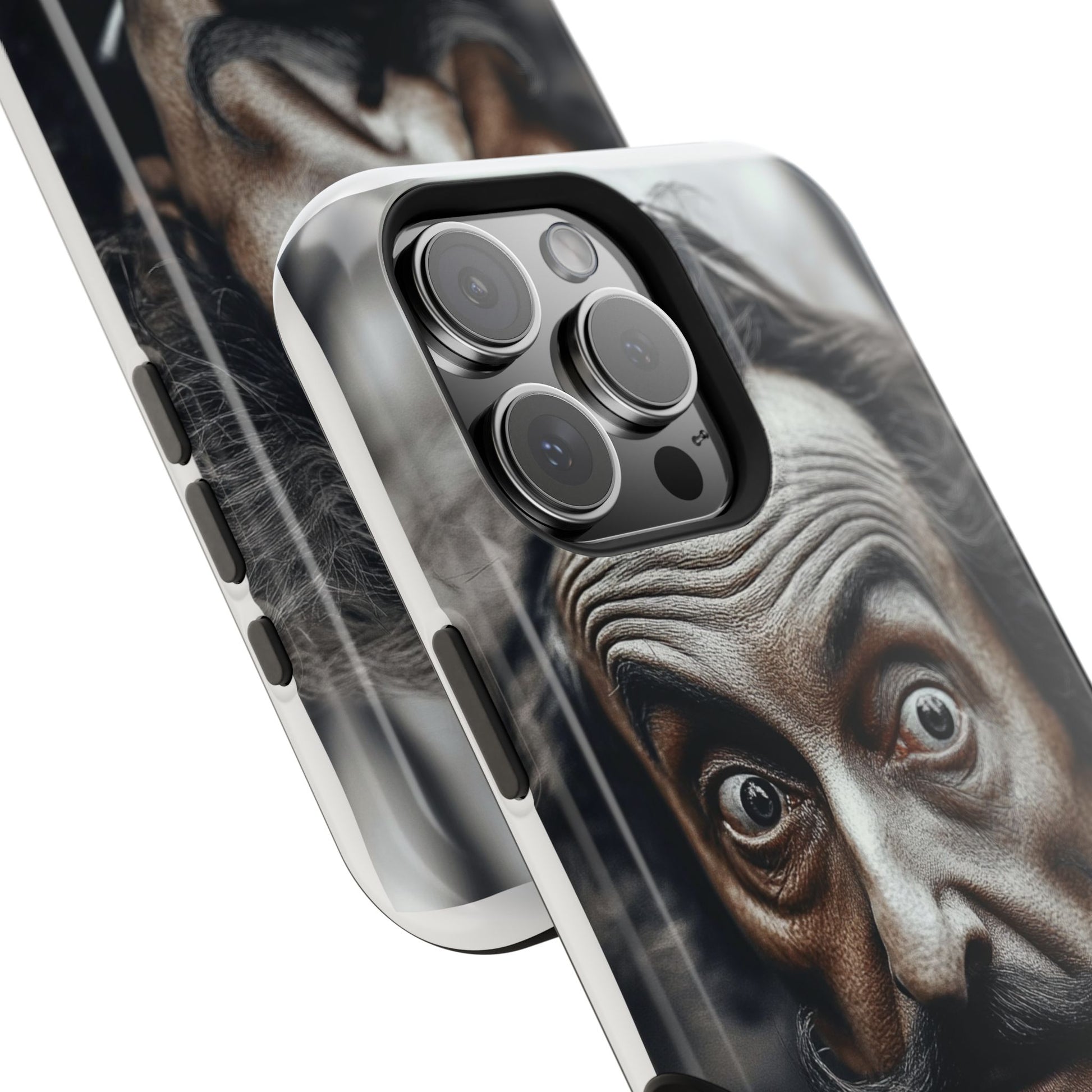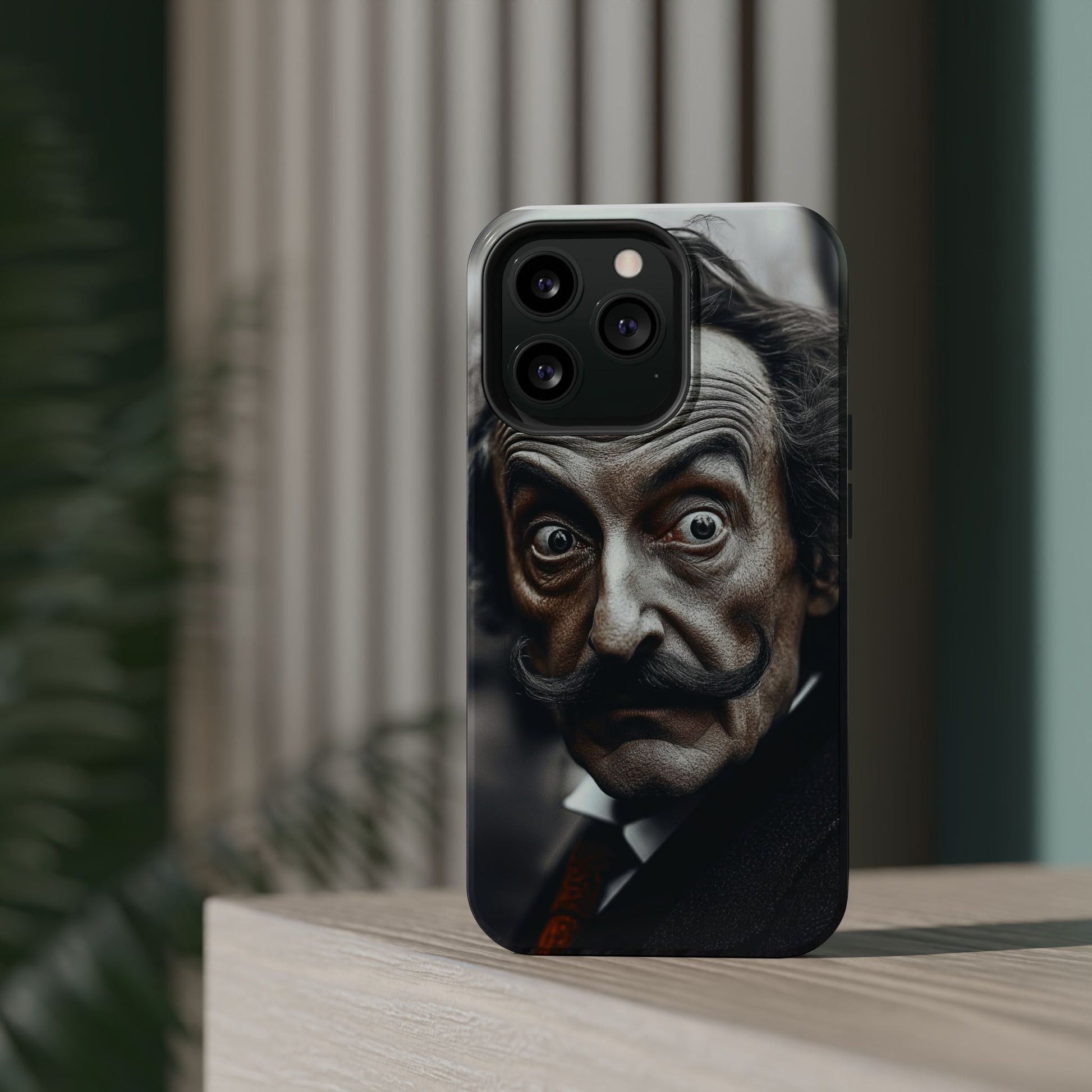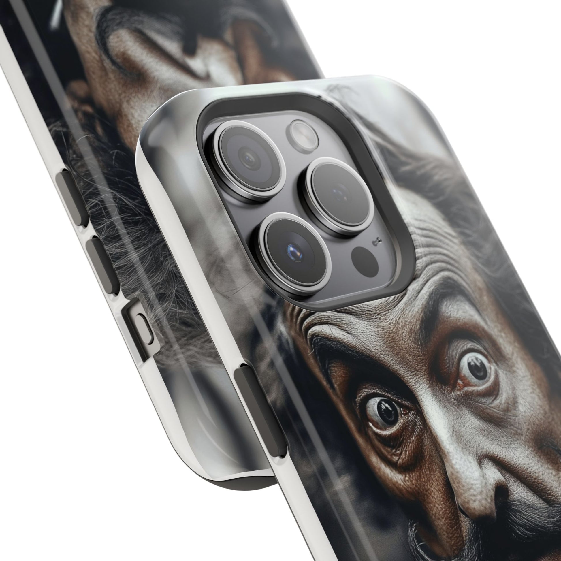 Luxurious Salvador Dali Magnetic Wireless Charging iPhone Case by Moxie-JayThis luxurious Magnetic wireless charging Tough iPhone Case features a captivating art piece by moxie-jay, showcasing a close-up of Salvador Dali in his years of wisdom and ultra amusement. The durable polycarbonate case offers superior protection against scratches and minor bumps, with vibrant colors and your choice of glossy or matte surface. Interior magnets ensure MagSafe® compatibility for effortless charging with MagSafe® accessories2.A luxurious Magnetic wireless charging Tough iPhone Case featuring a art piece by moxie-jay of a hand scratching a bright red record. This durable polycarbonate case offers extra protection against scratches and minor bumps, with vibrant colors and glossy or matte surface options. The interior magnets make it MagSafe® Compatible for easy charging with MagSafe® accessories.Product features: