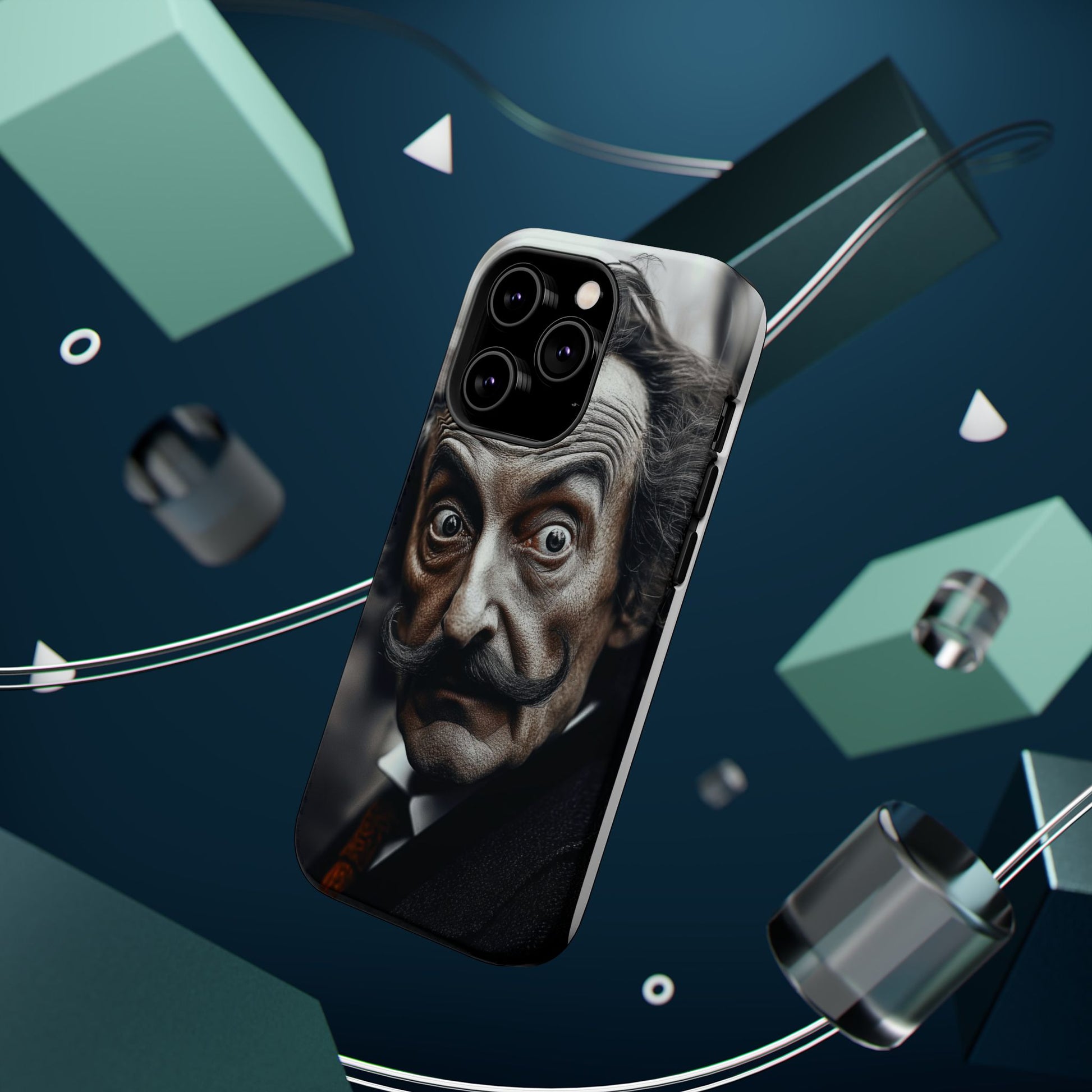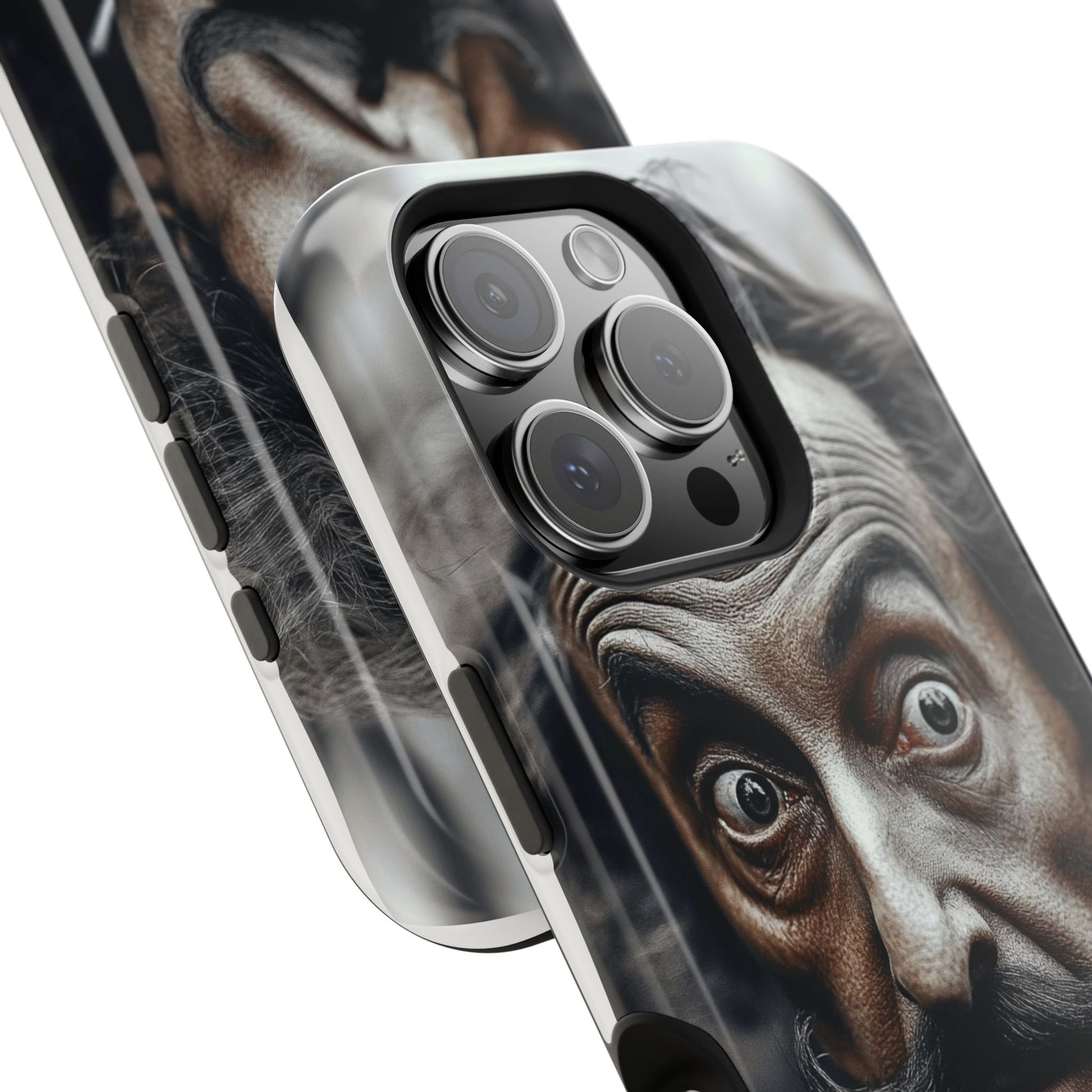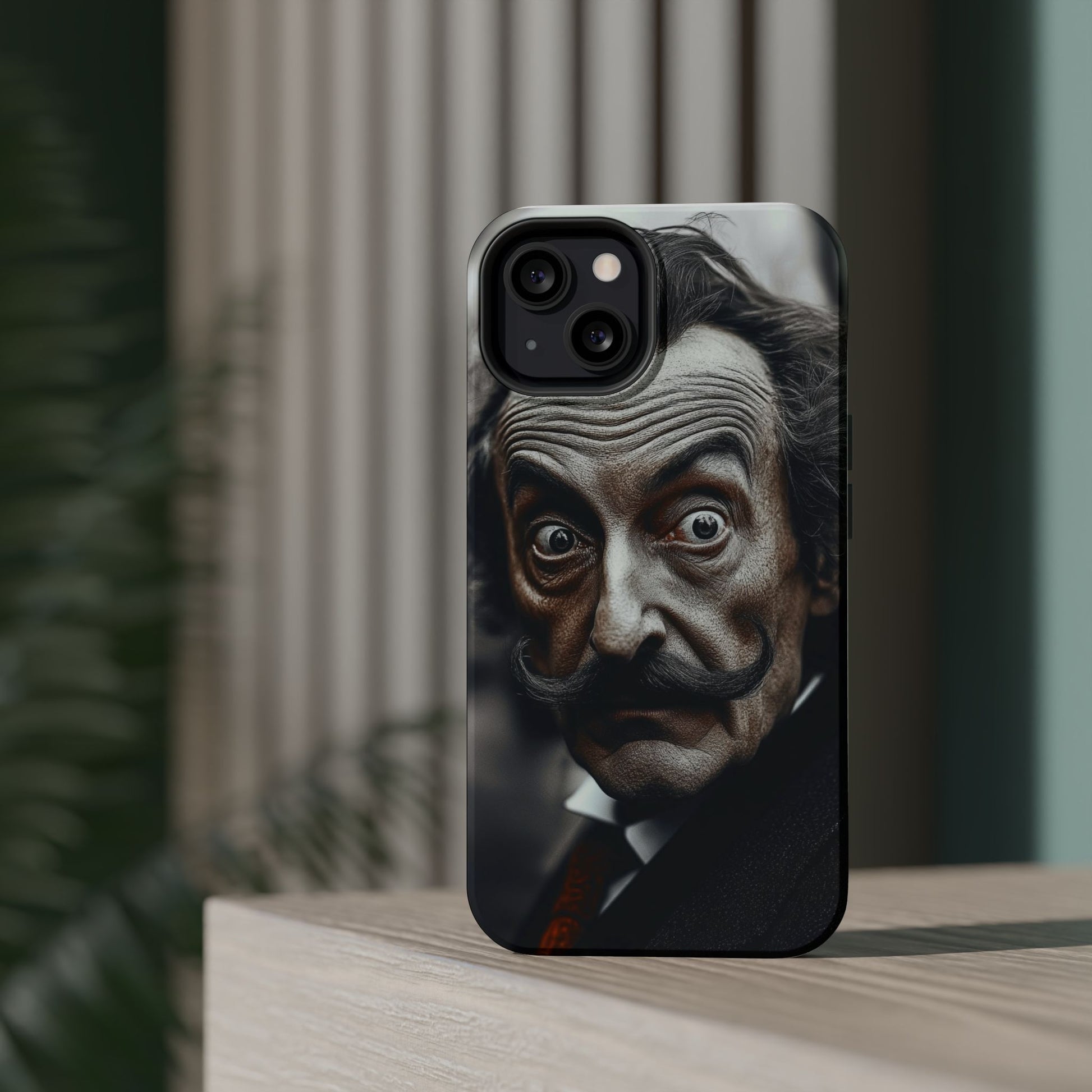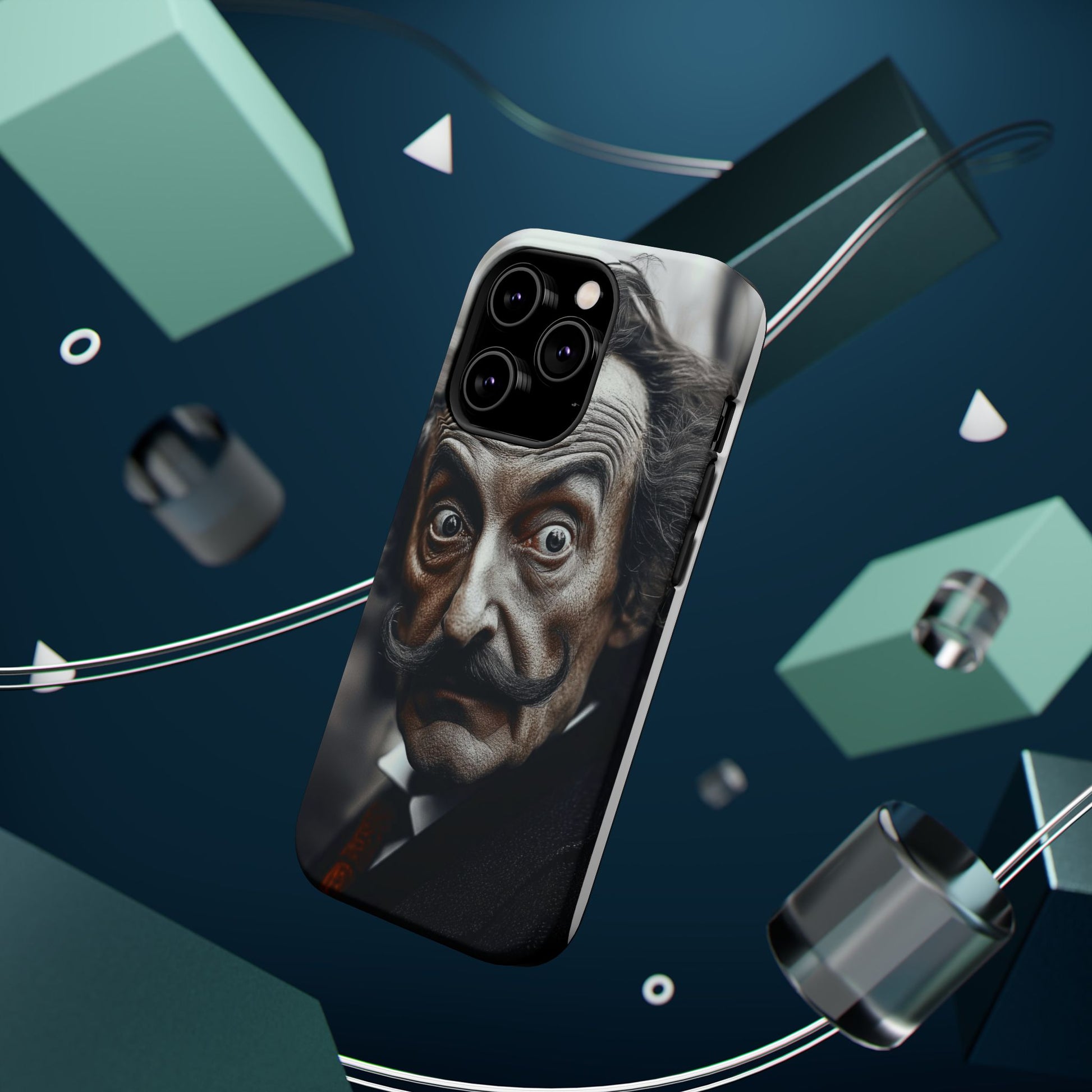 Luxurious Salvador Dali Magnetic Wireless Charging iPhone Case by Moxie-JayThis luxurious Magnetic wireless charging Tough iPhone Case features a captivating art piece by moxie-jay, showcasing a close-up of Salvador Dali in his years of wisdom and ultra amusement. The durable polycarbonate case offers superior protection against scratches and minor bumps, with vibrant colors and your choice of glossy or matte surface. Interior magnets ensure MagSafe® compatibility for effortless charging with MagSafe® accessories2.A luxurious Magnetic wireless charging Tough iPhone Case featuring a art piece by moxie-jay of a hand scratching a bright red record. This durable polycarbonate case offers extra protection against scratches and minor bumps, with vibrant colors and glossy or matte surface options. The interior magnets make it MagSafe® Compatible for easy charging with MagSafe® accessories.Product features: