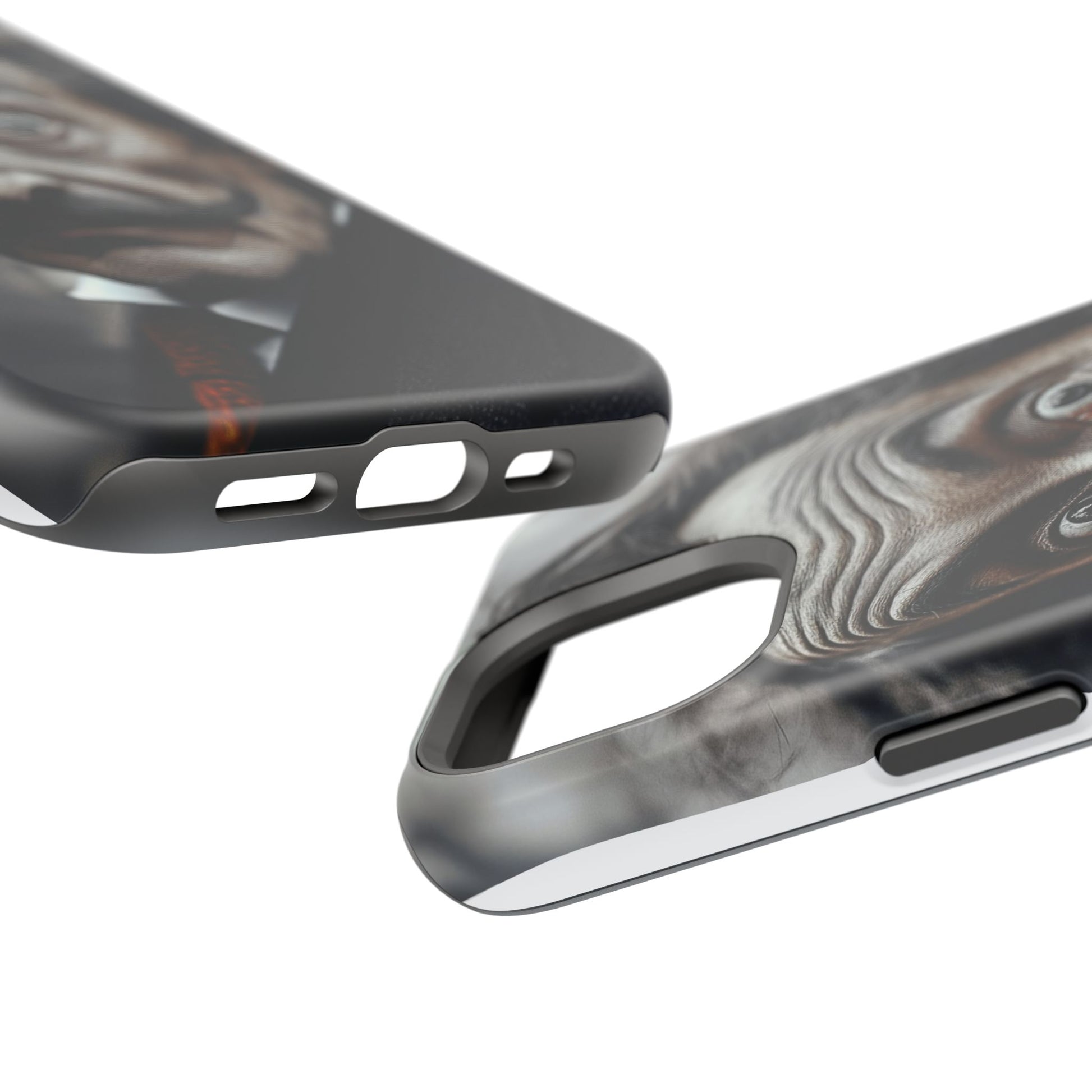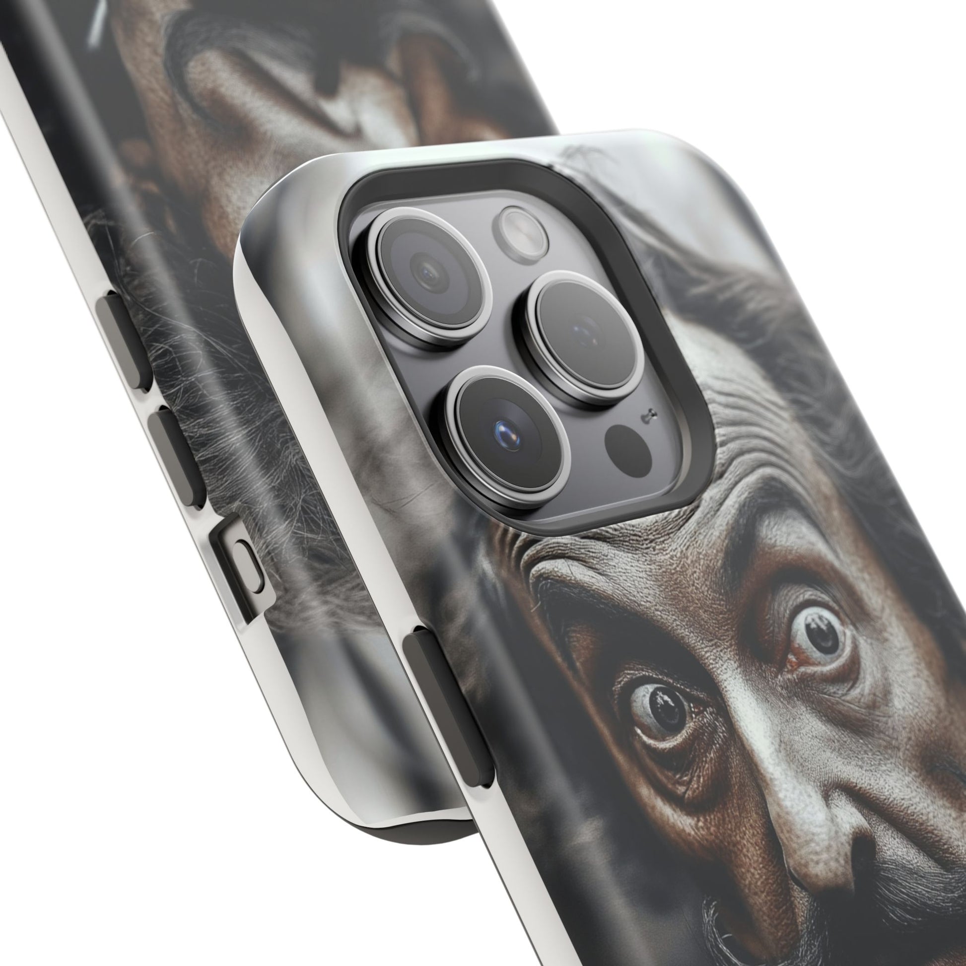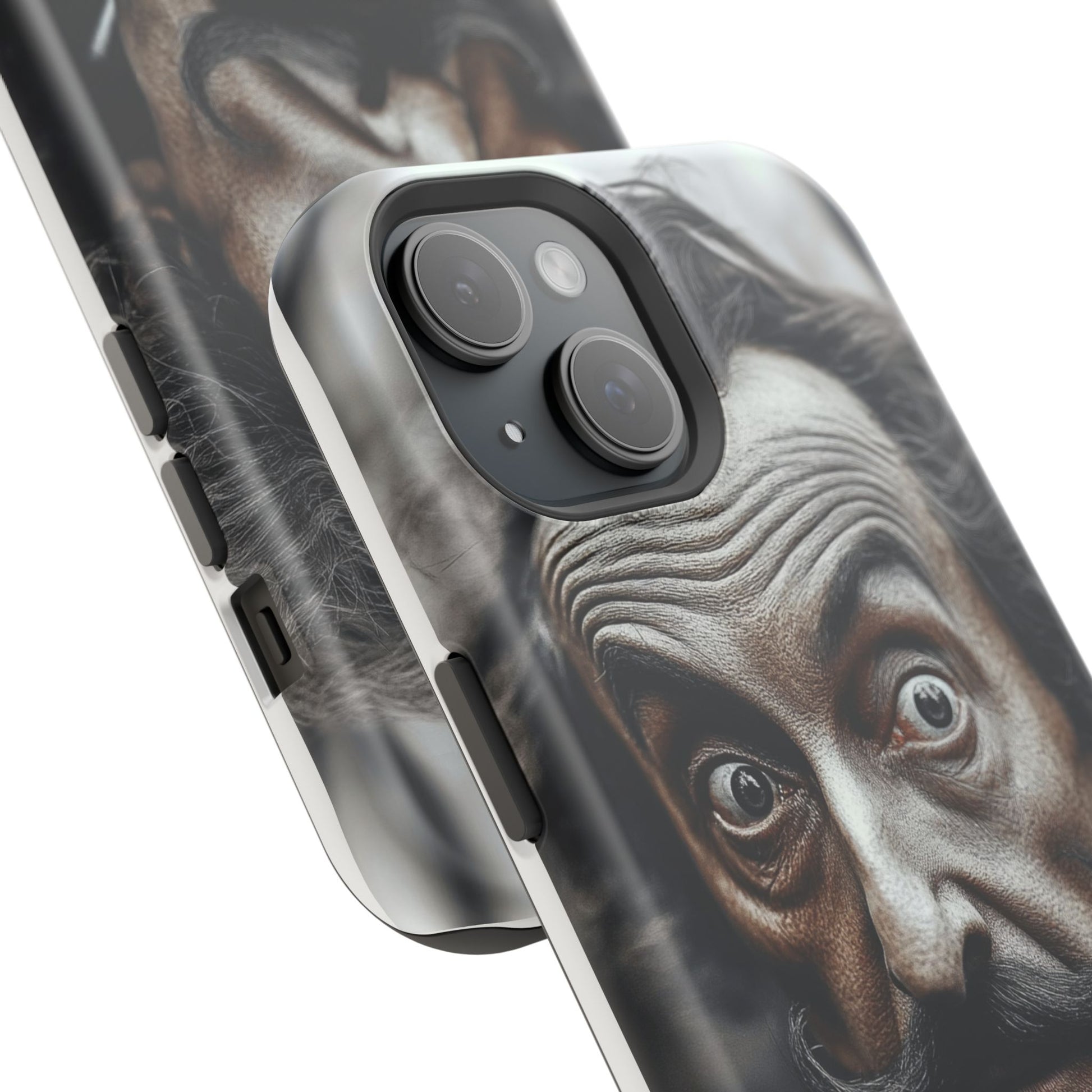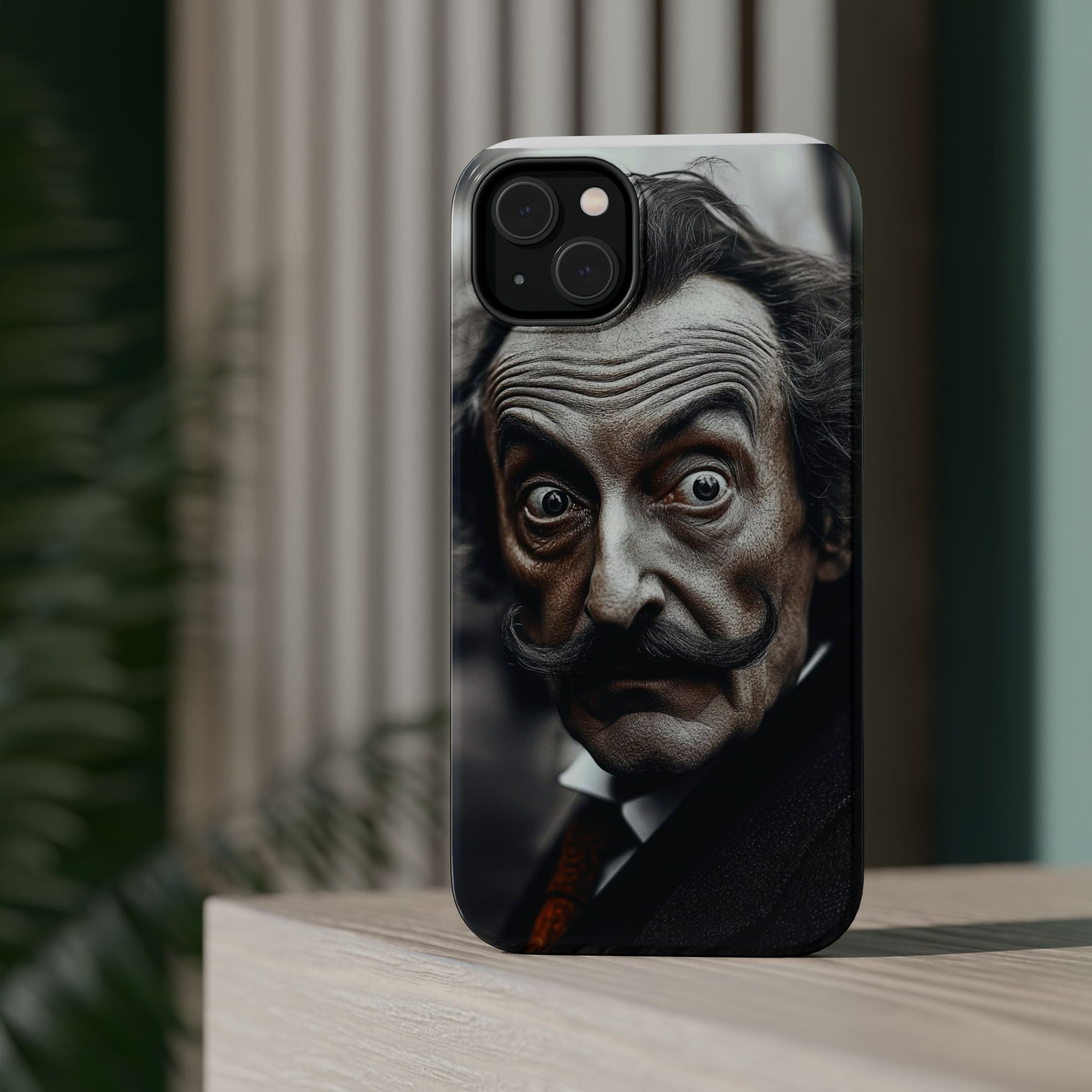 Luxurious Salvador Dali Magnetic Wireless Charging iPhone Case by Moxie-JayThis luxurious Magnetic wireless charging Tough iPhone Case features a captivating art piece by moxie-jay, showcasing a close-up of Salvador Dali in his years of wisdom and ultra amusement. The durable polycarbonate case offers superior protection against scratches and minor bumps, with vibrant colors and your choice of glossy or matte surface. Interior magnets ensure MagSafe® compatibility for effortless charging with MagSafe® accessories2.A luxurious Magnetic wireless charging Tough iPhone Case featuring a art piece by moxie-jay of a hand scratching a bright red record. This durable polycarbonate case offers extra protection against scratches and minor bumps, with vibrant colors and glossy or matte surface options. The interior magnets make it MagSafe® Compatible for easy charging with MagSafe® accessories.Product features: