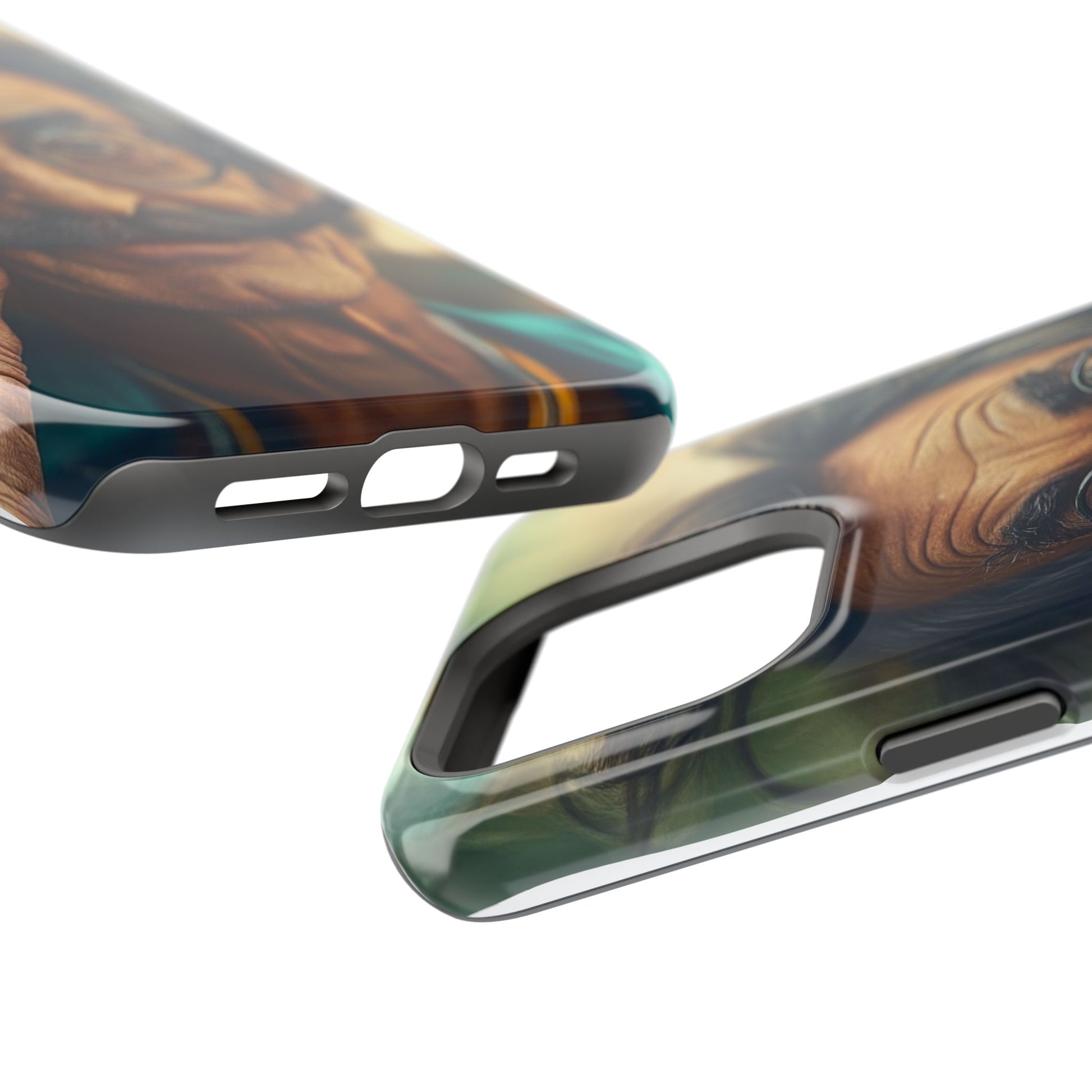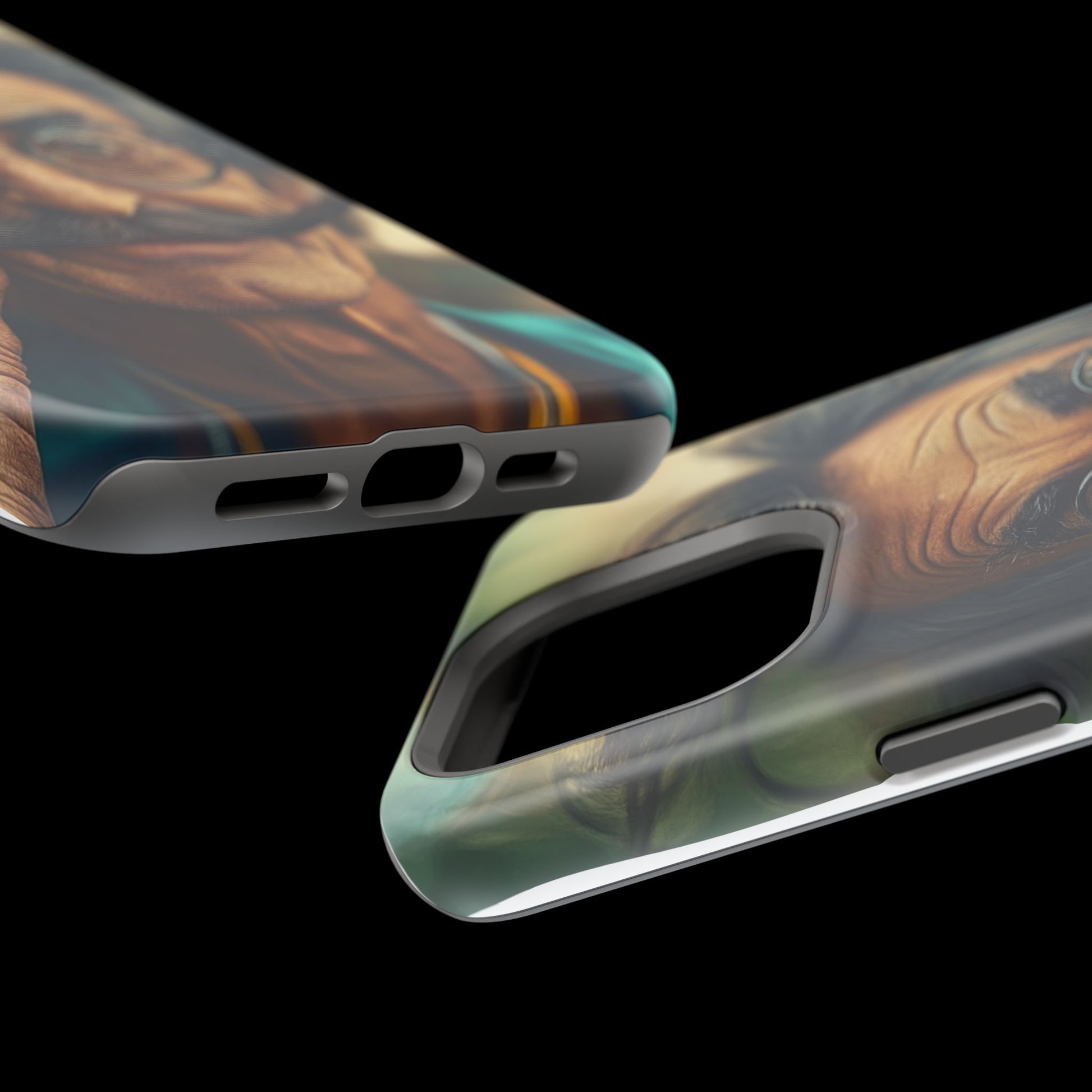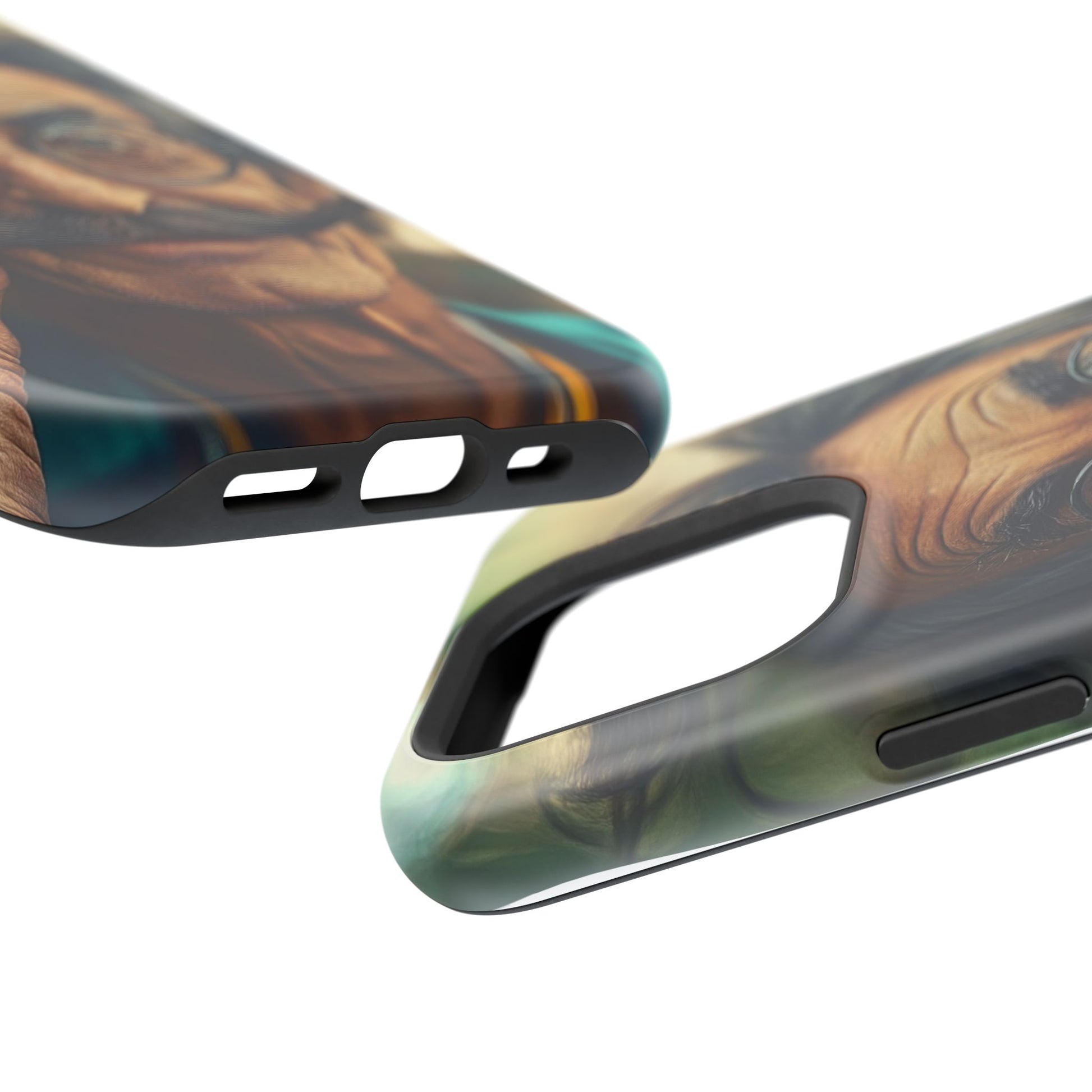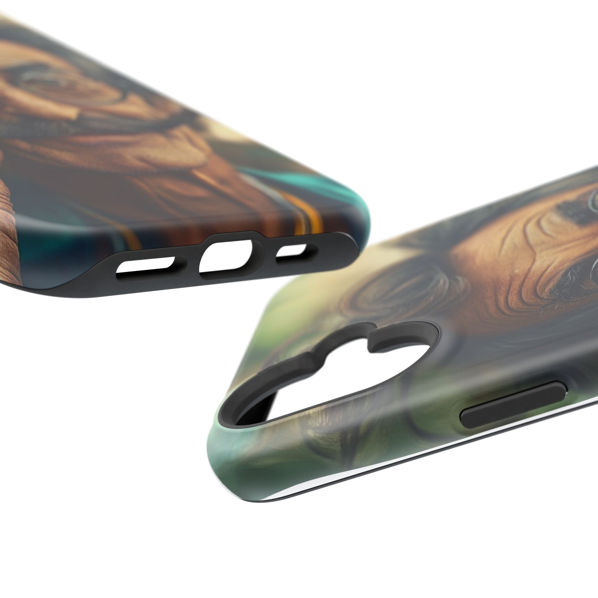 A magnetic tough phone case with original art design by nay moxie-jay. This dual-layer polycarbonate plastic case offers durable protection against scratches and bumps, while the vibrant colors with 300+ DPI print quality ensure your design stands out. Compatible with MagSafe® accessories for wireless charging, this case is perfect for tech-savvy individuals who want style and protection in one.
