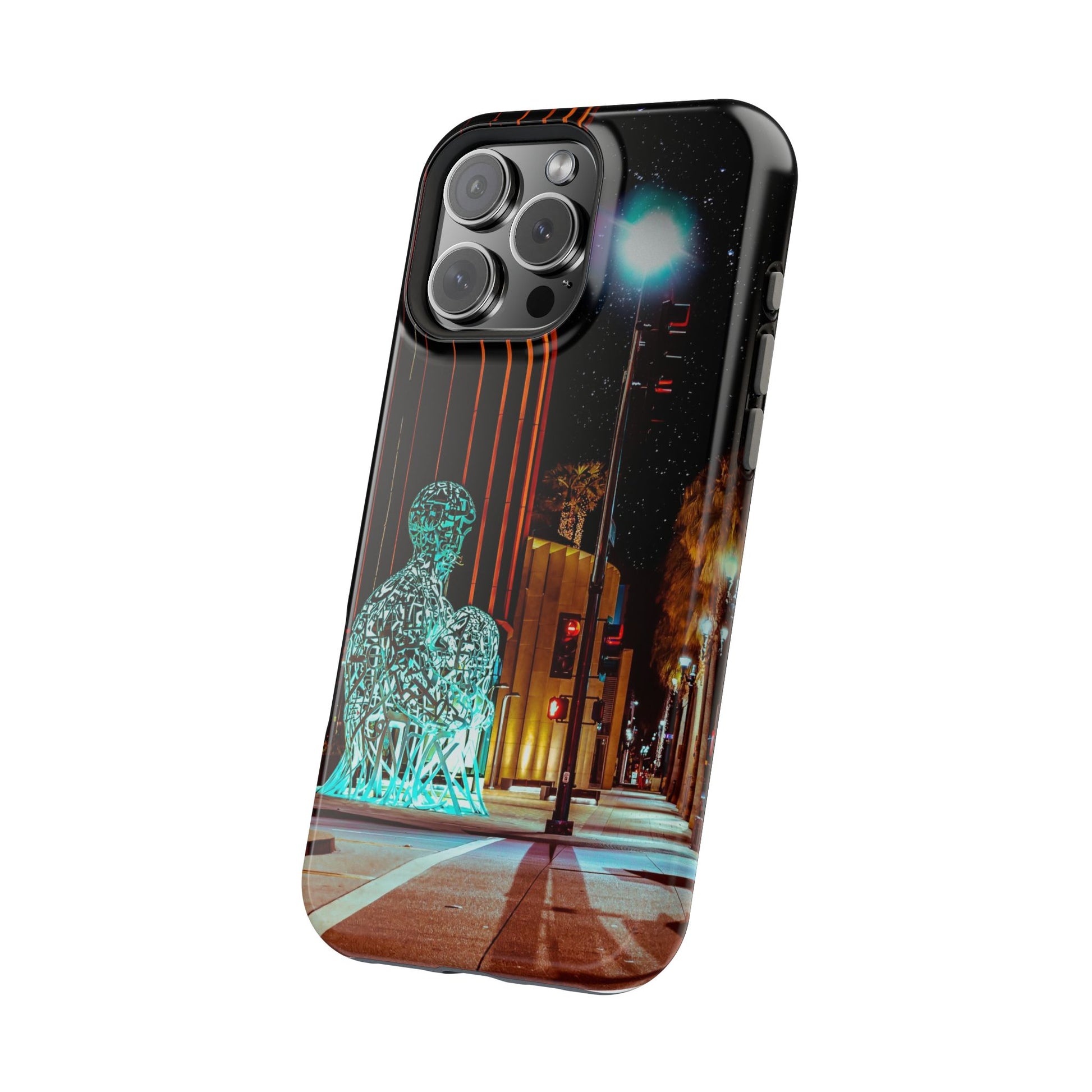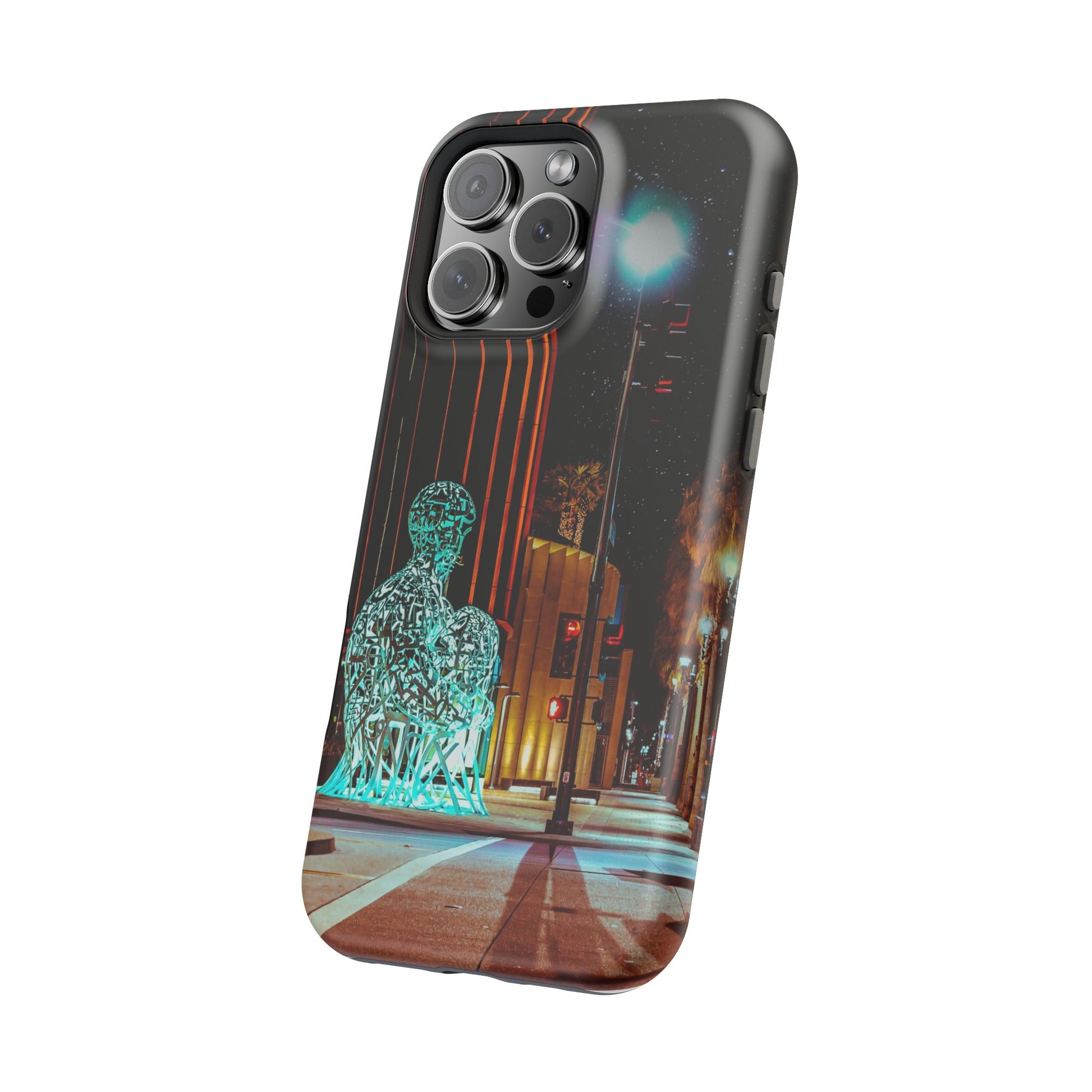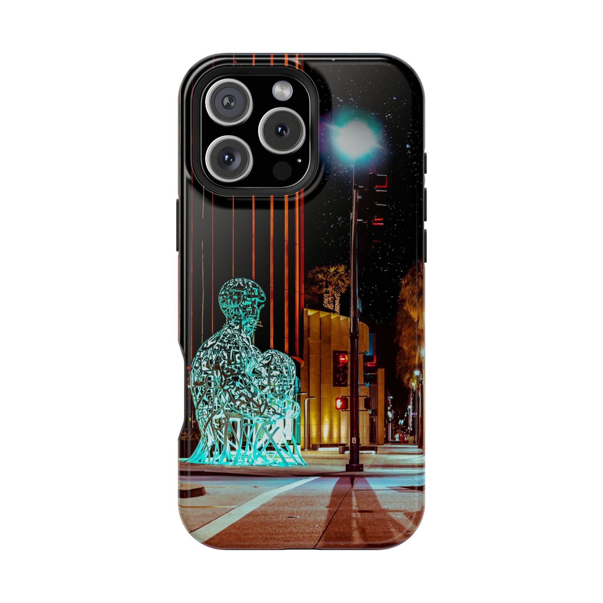 Artistic Phone Case with a unique street sculpture design, featuring an authentic photograph by Moxie-Jay taken in downtown San Diego. This durable and impact-resistant case offers full-wrap printing with vibrant colors, available in matte or glossy finishes. With interior magnets, it is MagSafe® compatible, making it ideal for those looking for a stylish and protective phone case.